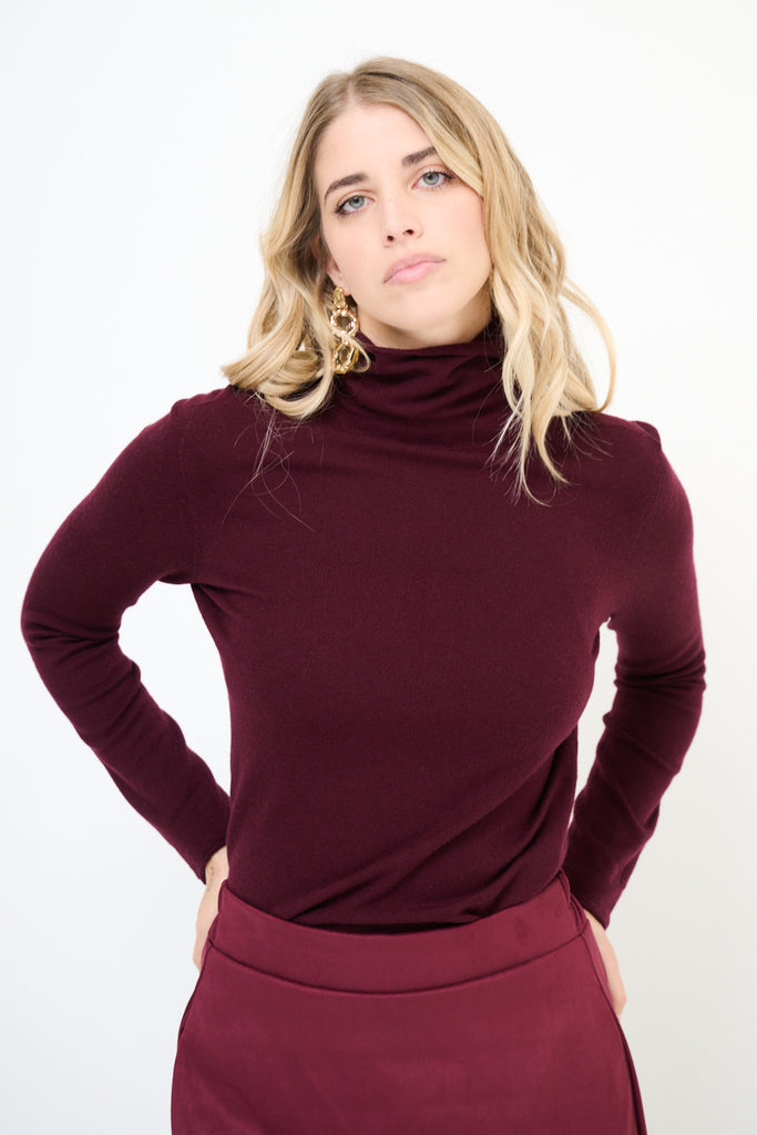- Jersey atemporal de cuello alto en punto liso y suave al tacto