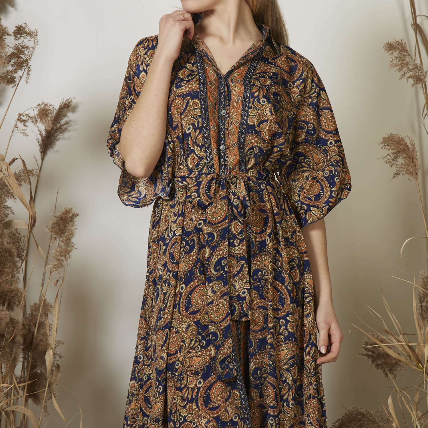 - Vestido midi con mangas anchas