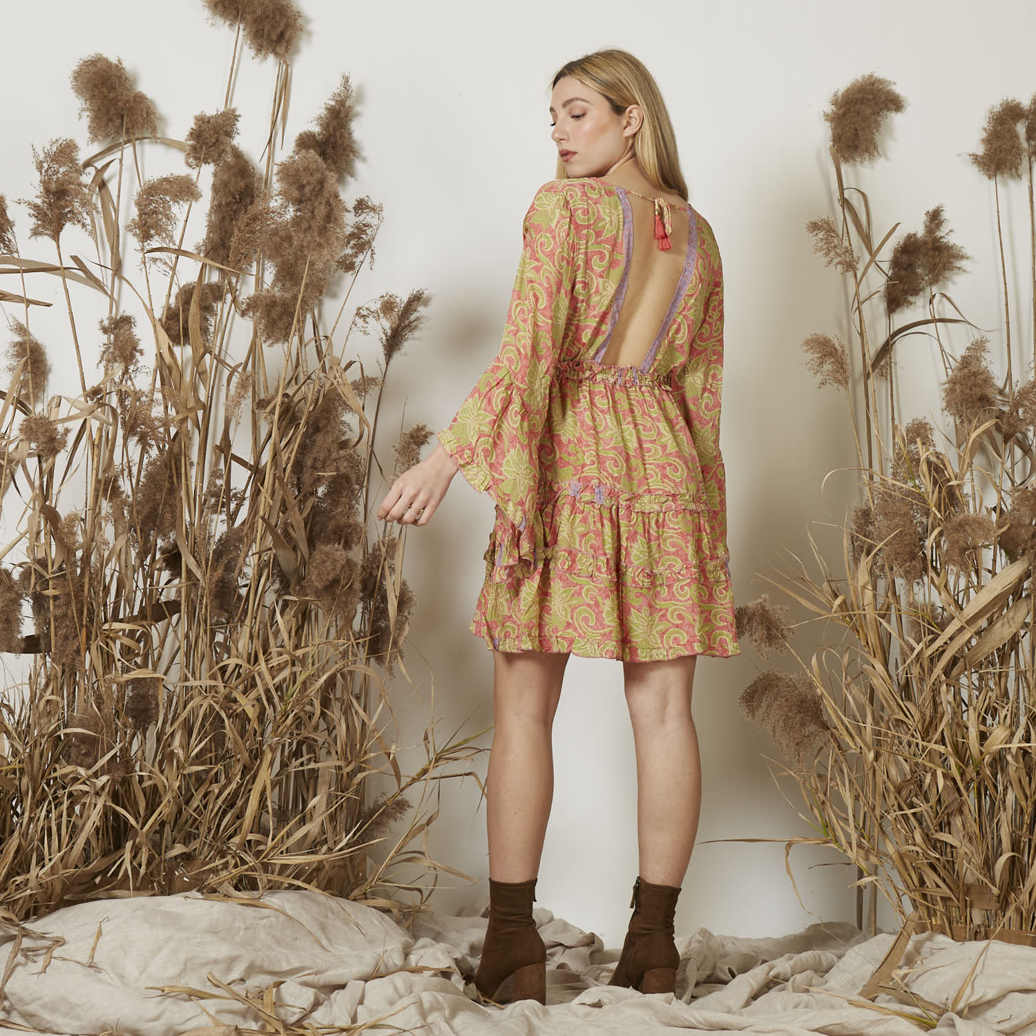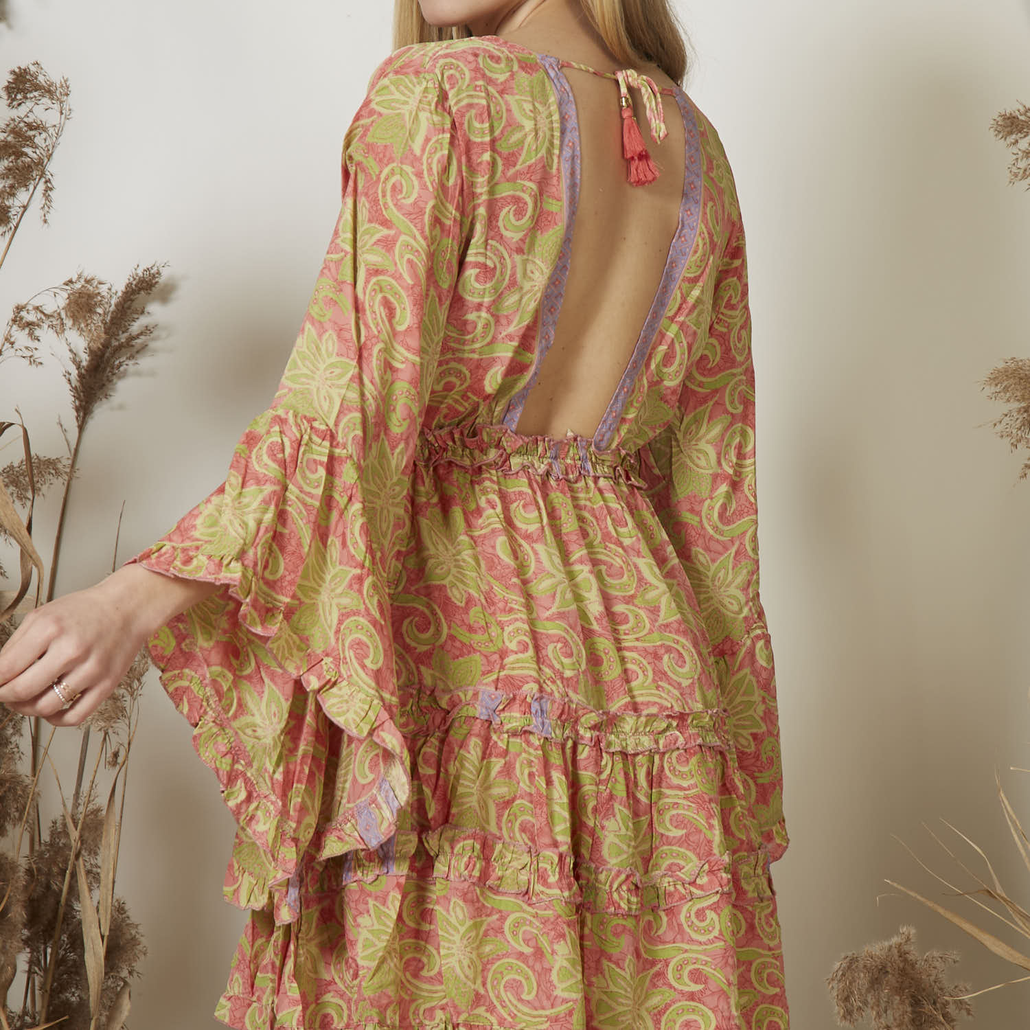 Vestidos de hoja de loto hueco de cuello en V al por mayor