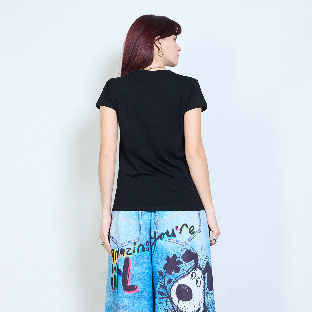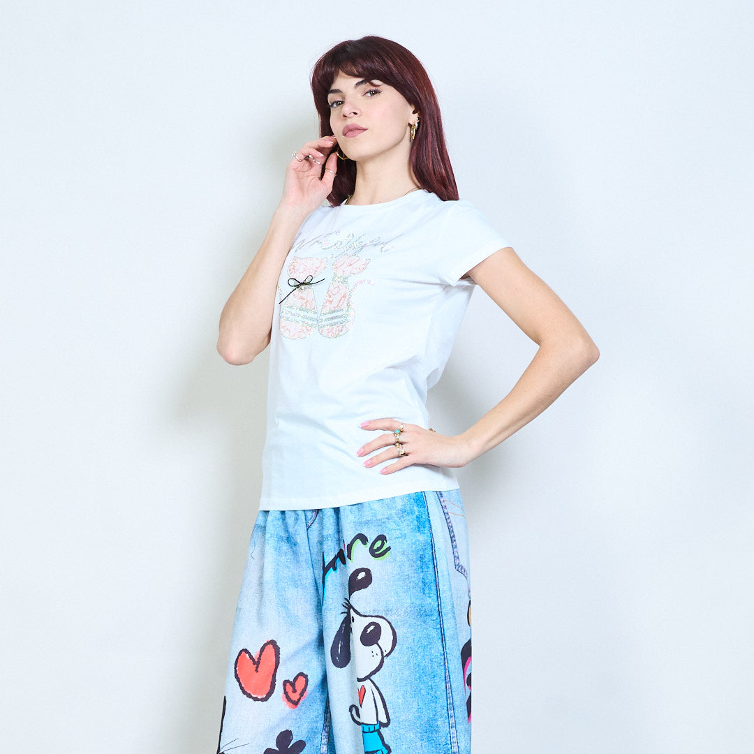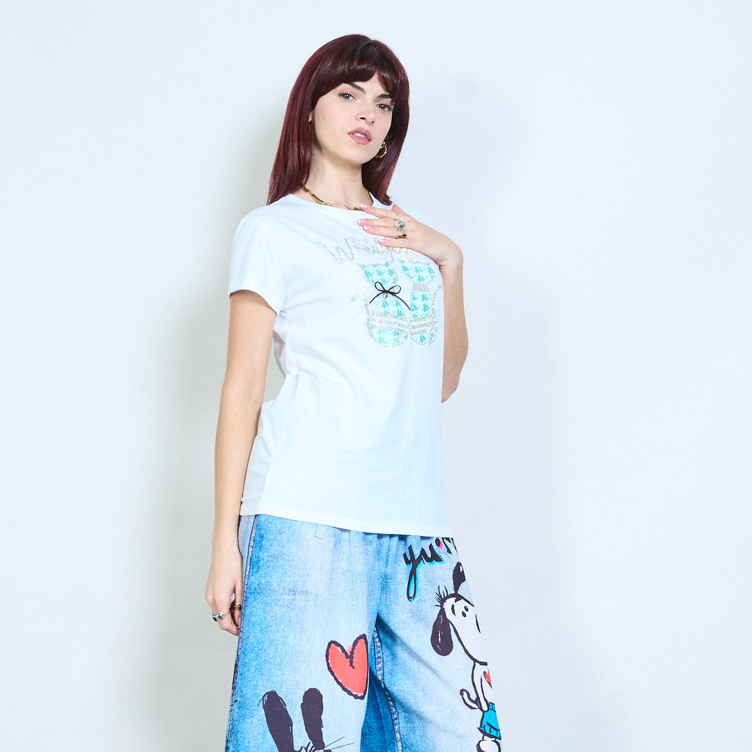 Animalia edit camiseta lentejuelas strass gráfico gato adornado al por mayor