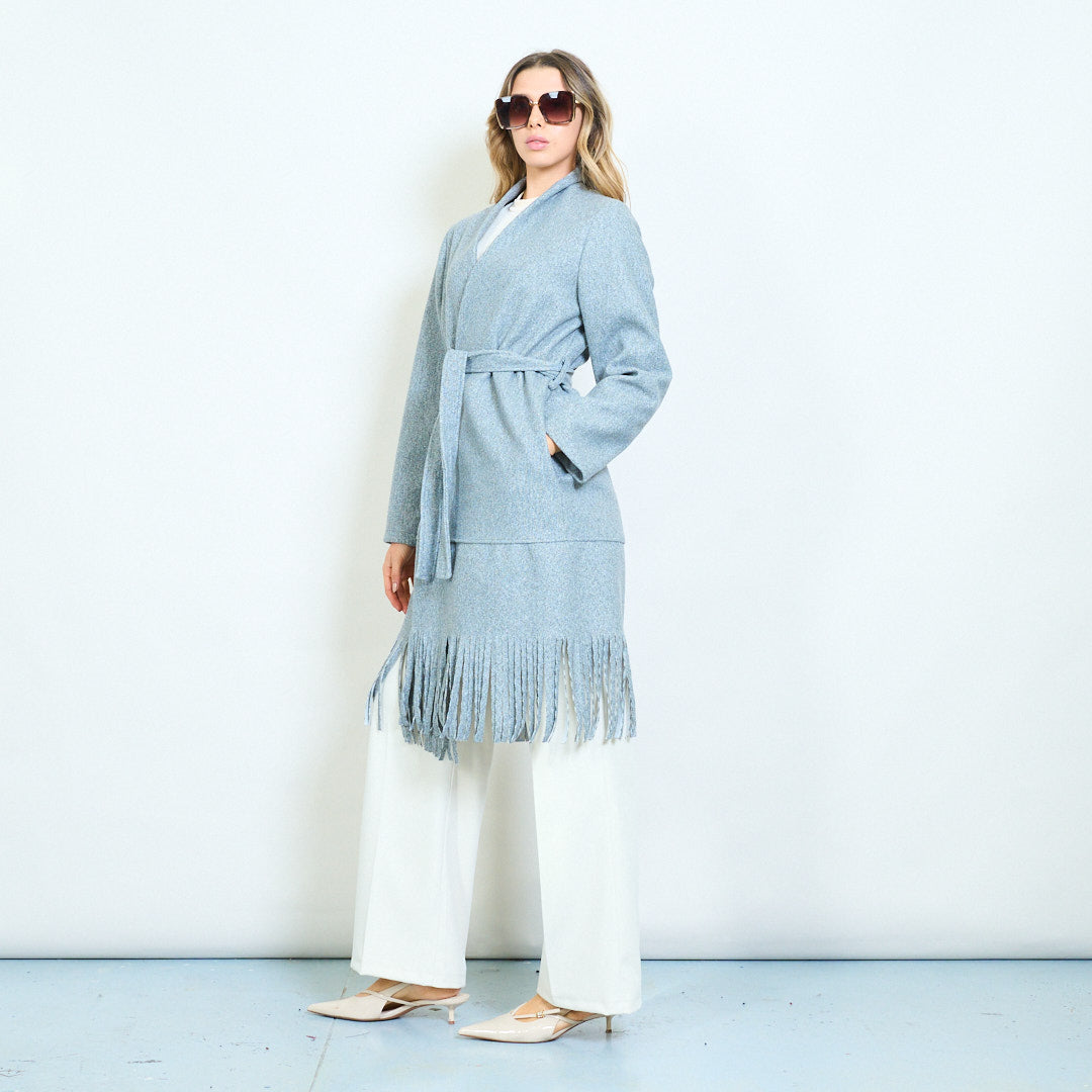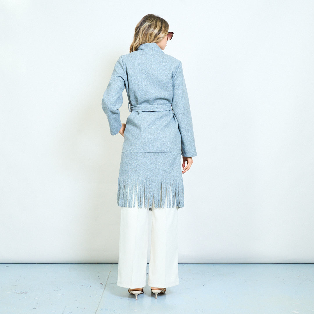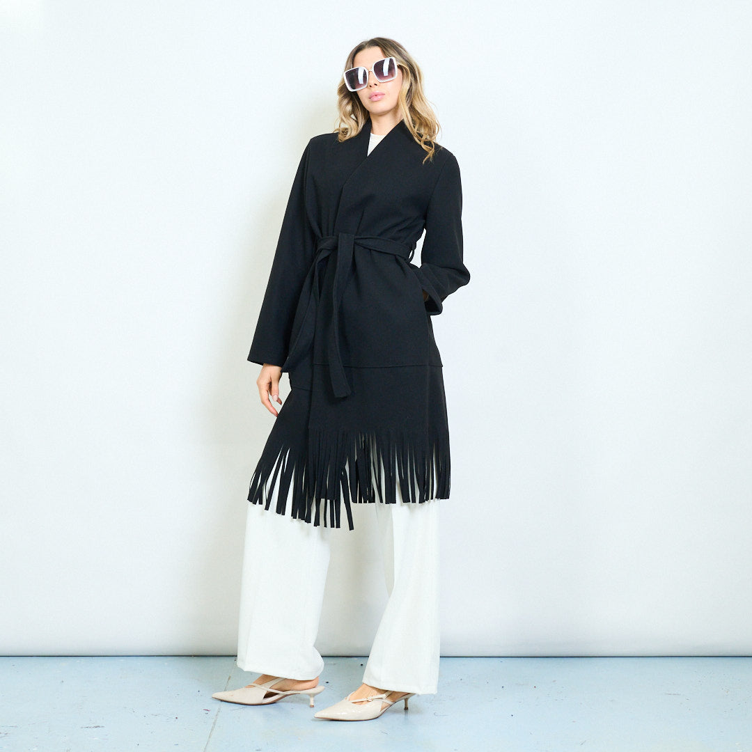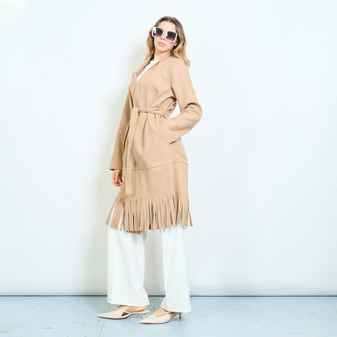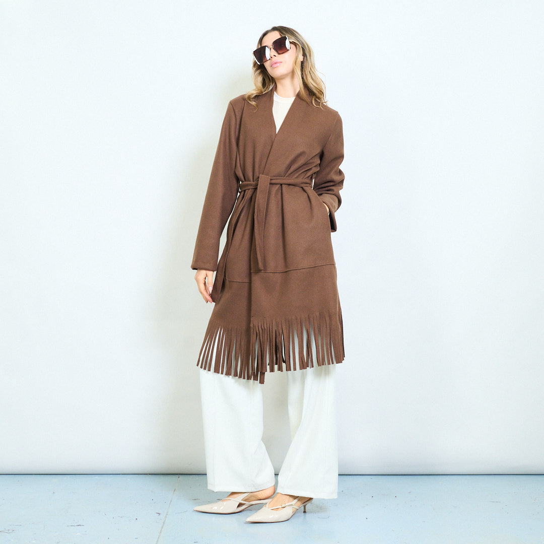 Abrigo frontal abierto con cinturón y dobladillo con flecos al por mayor