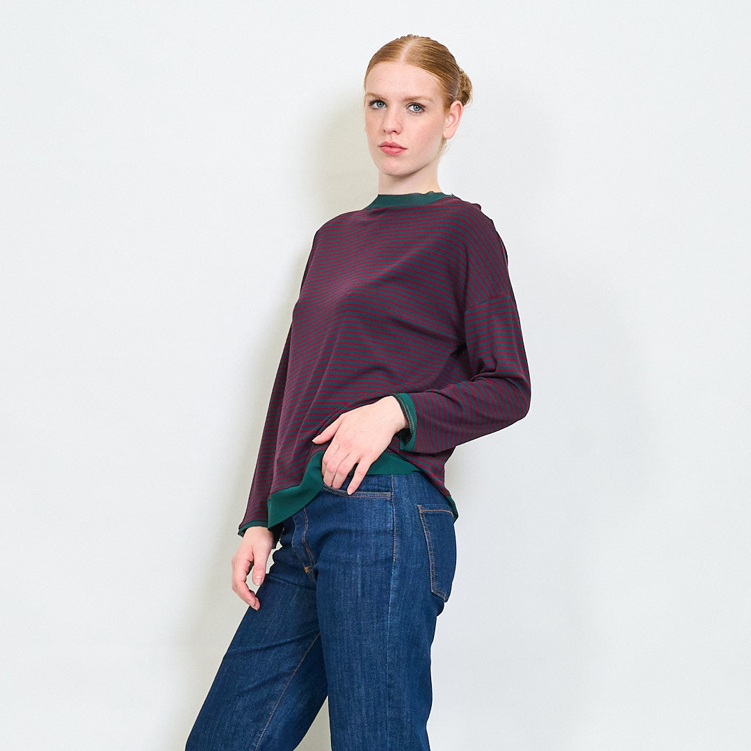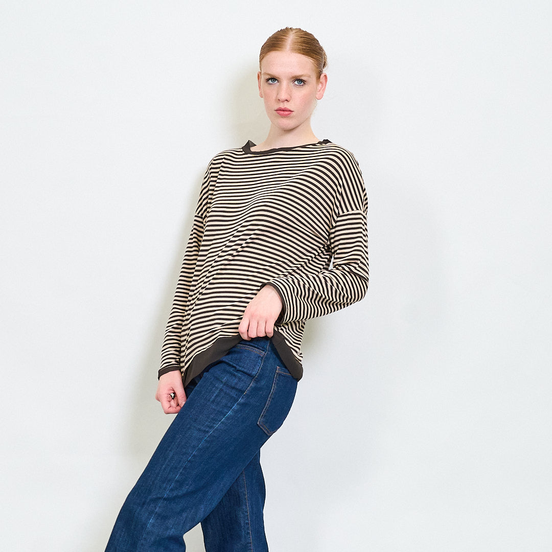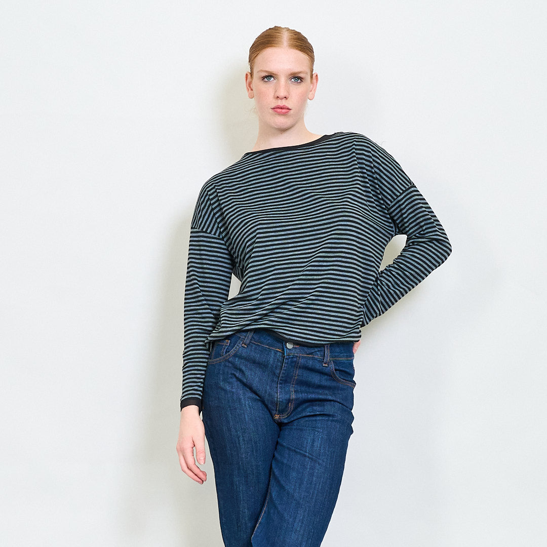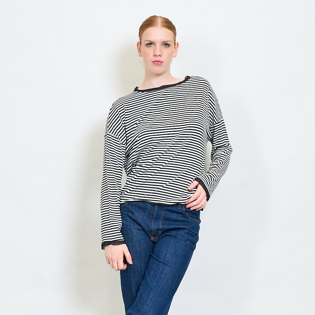 Top de manga larga con cuello de bote de acabado transparente a rayas al por mayor