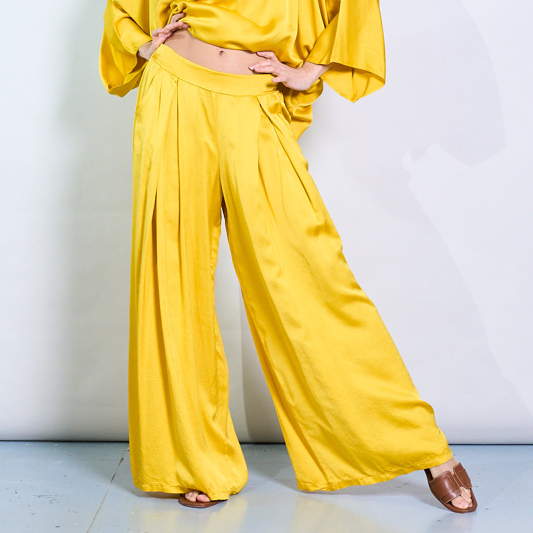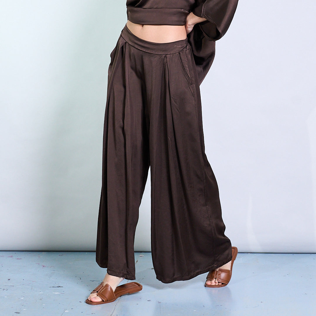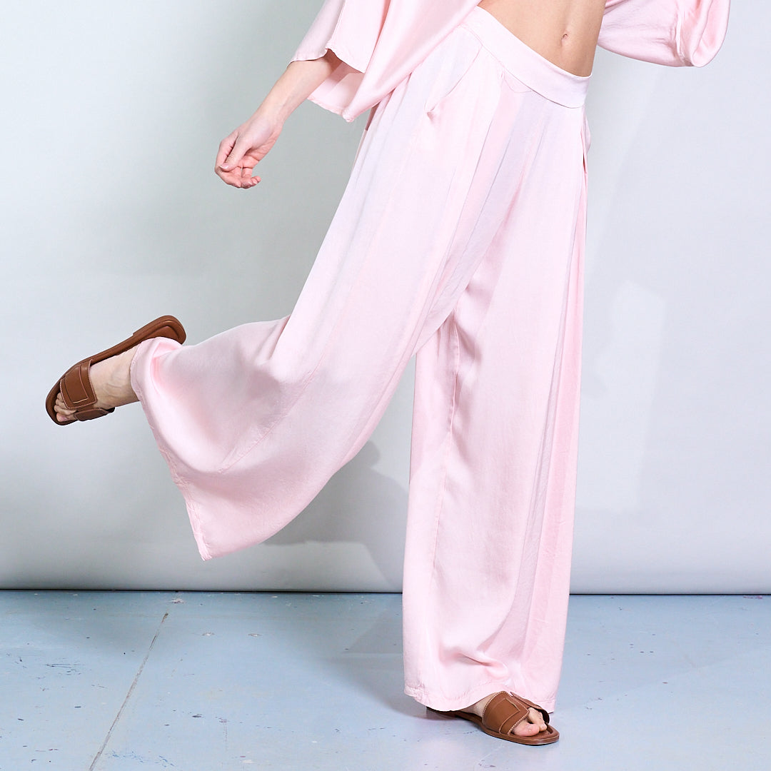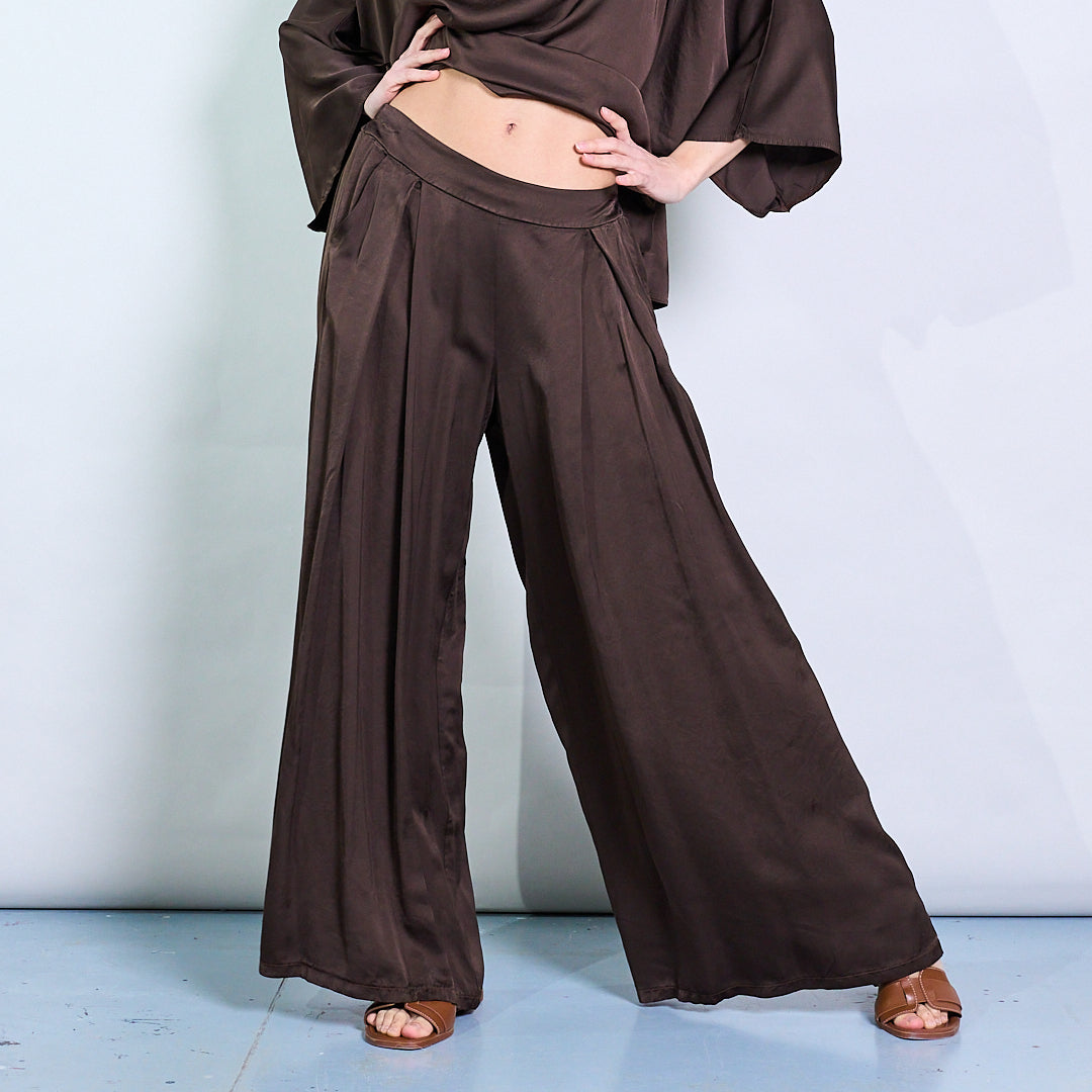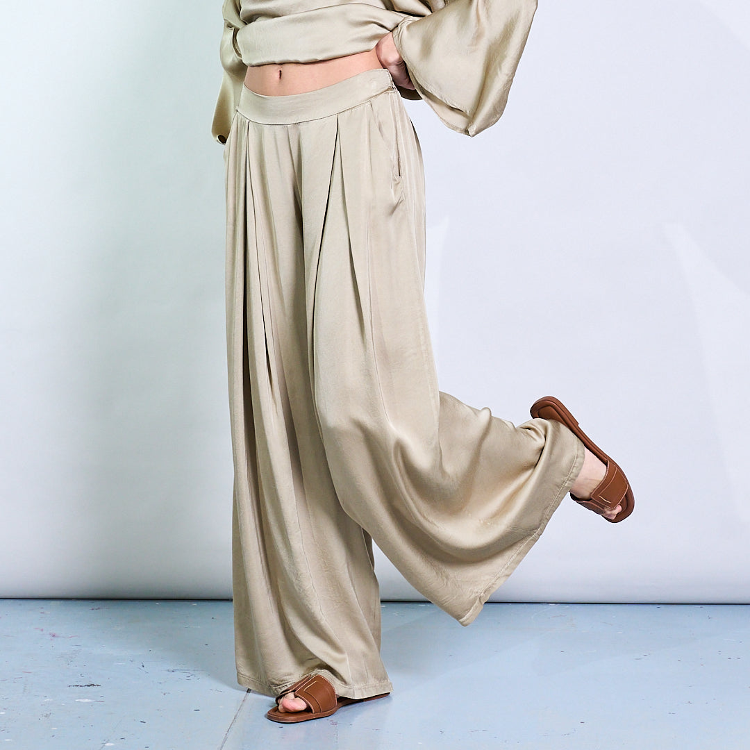 Pantalones de satén de piernas anchas con plisado delantero al por mayor