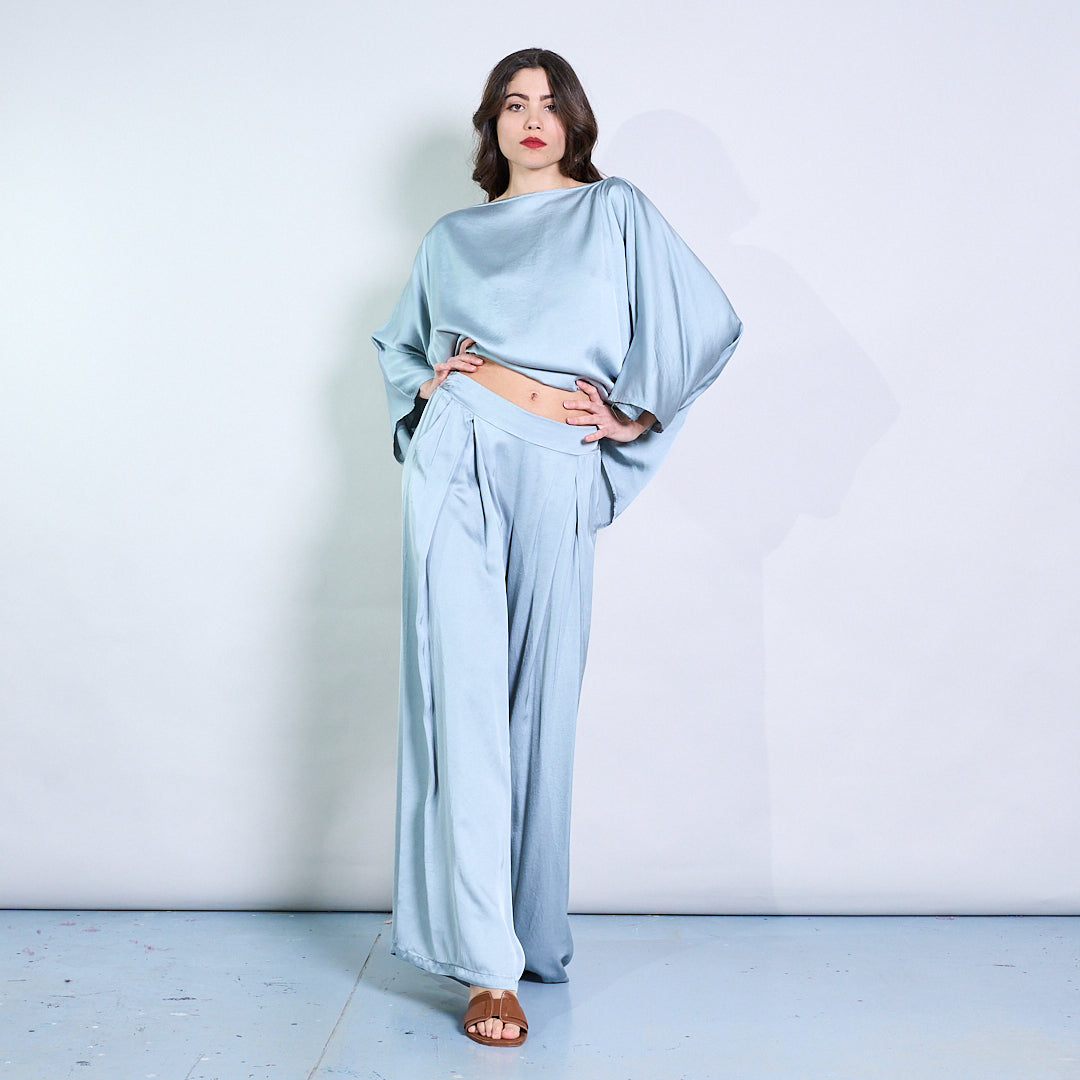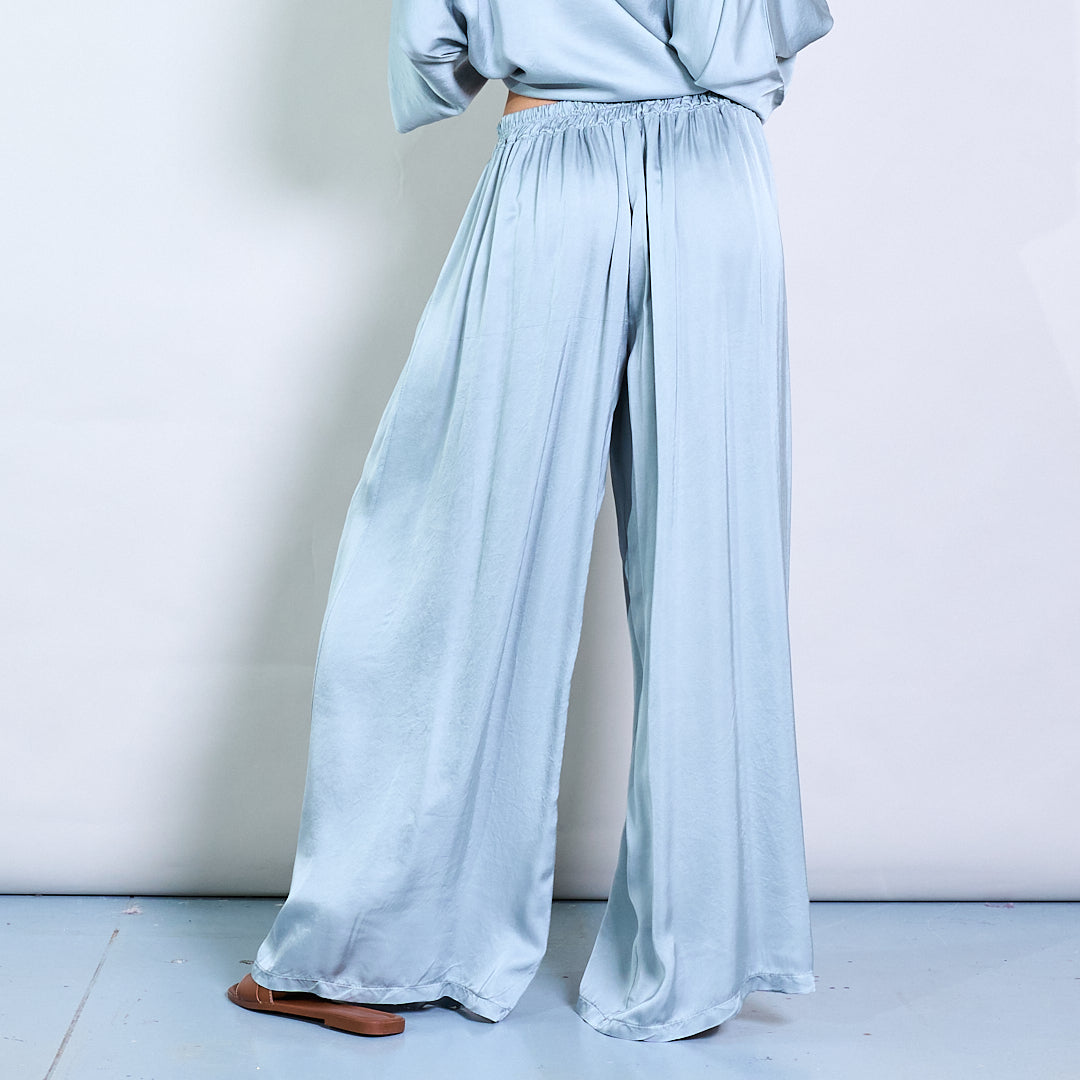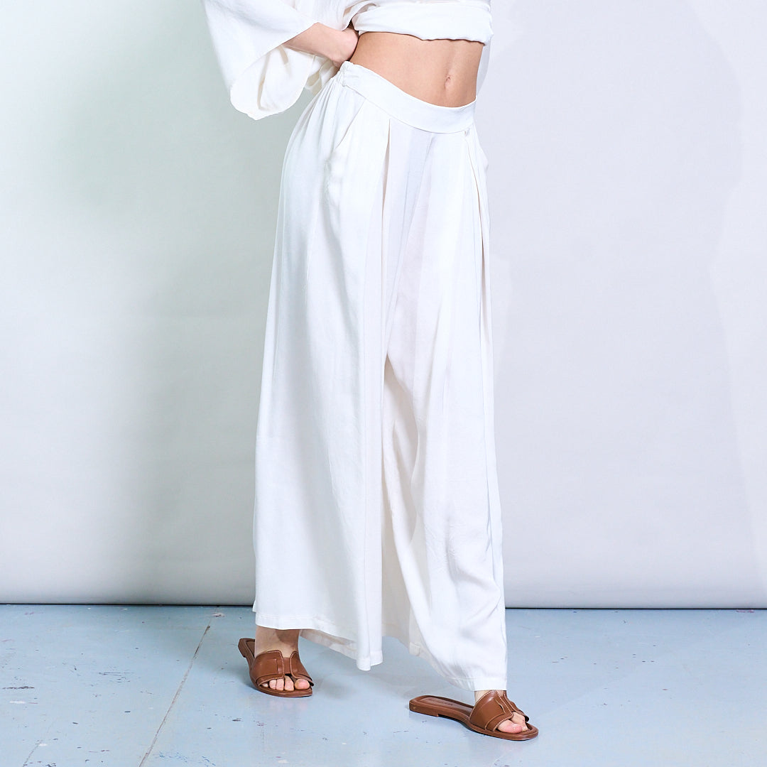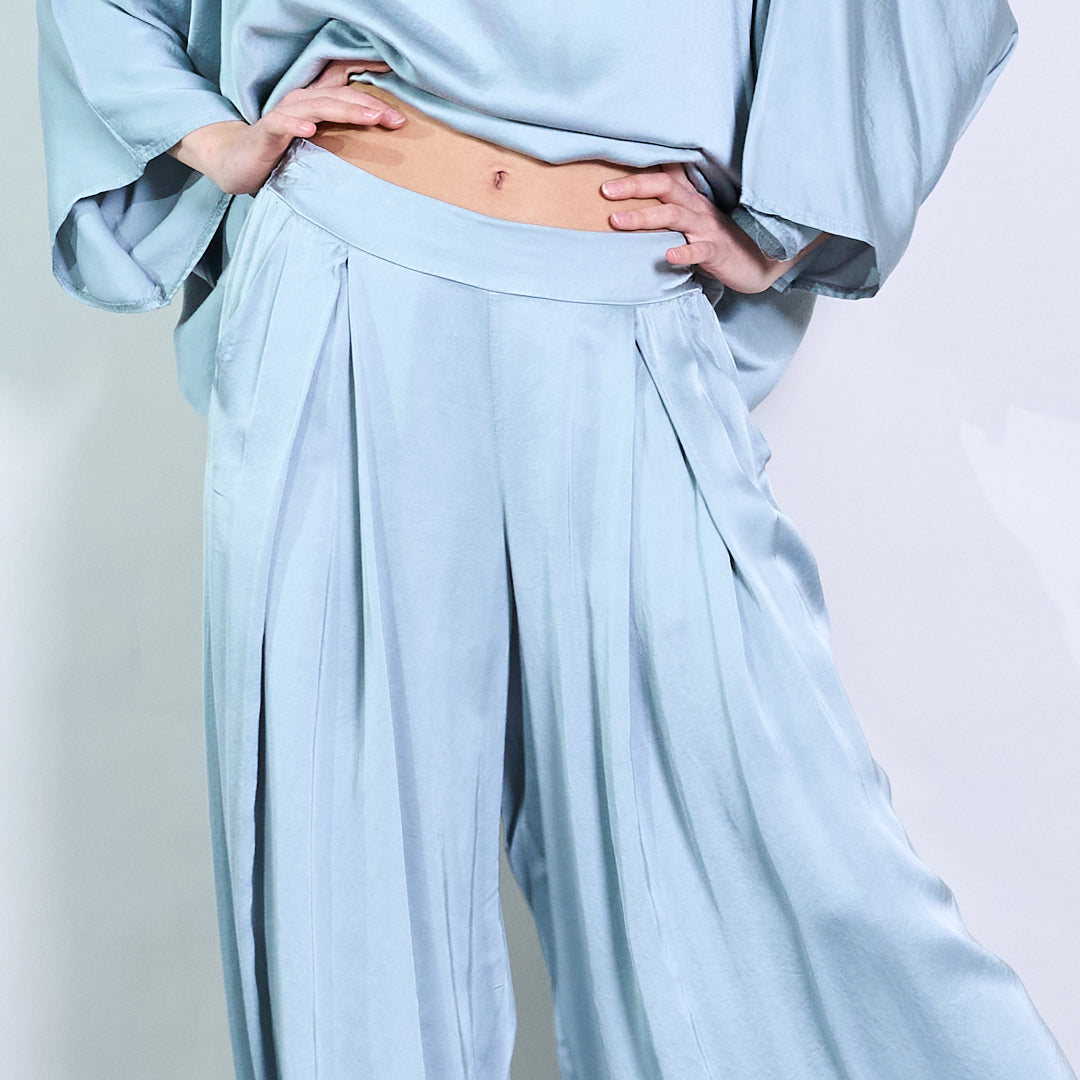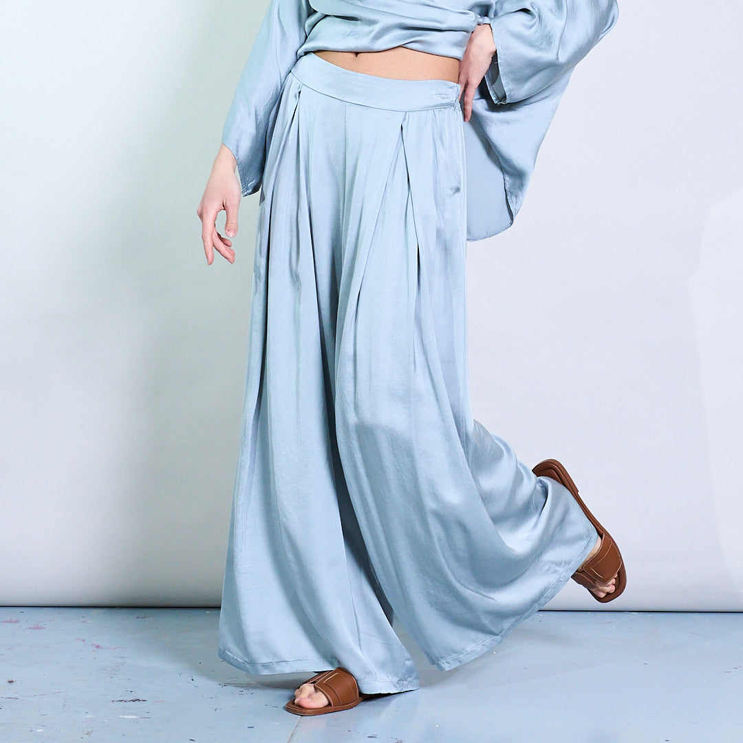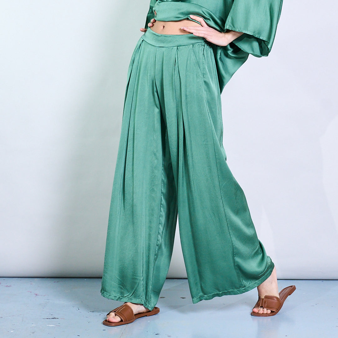 Pantalones de satén de piernas anchas con plisado delantero al por mayor