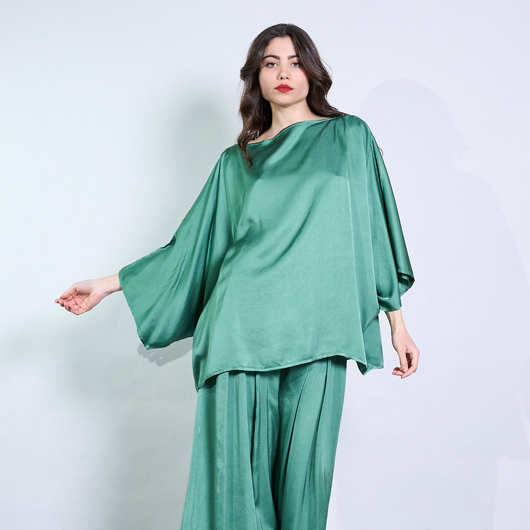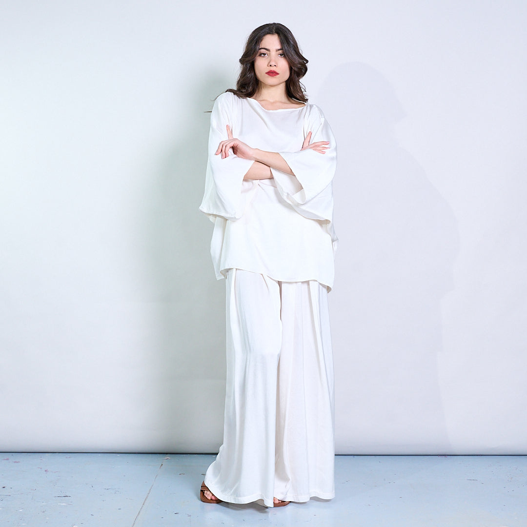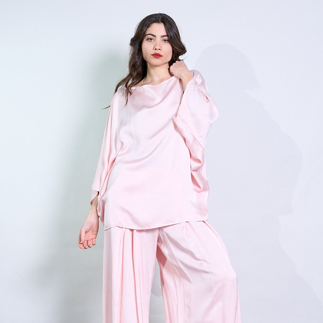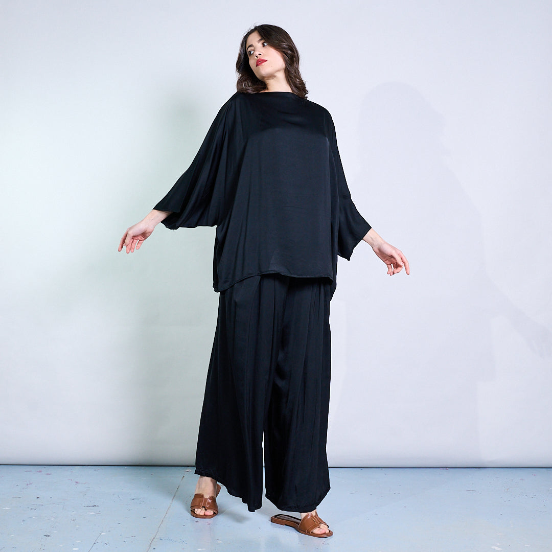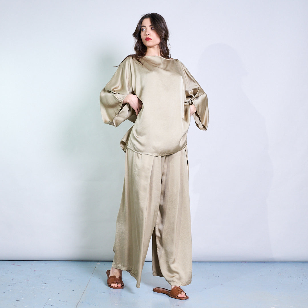 Pantalones de satén de piernas anchas con plisado delantero al por mayor