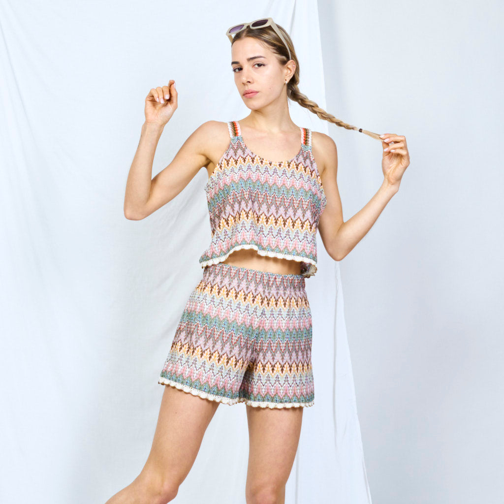 Conjunto de top y mini corto con patrón sólido al por mayor