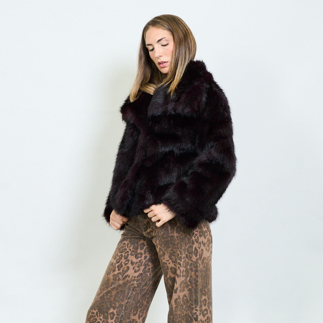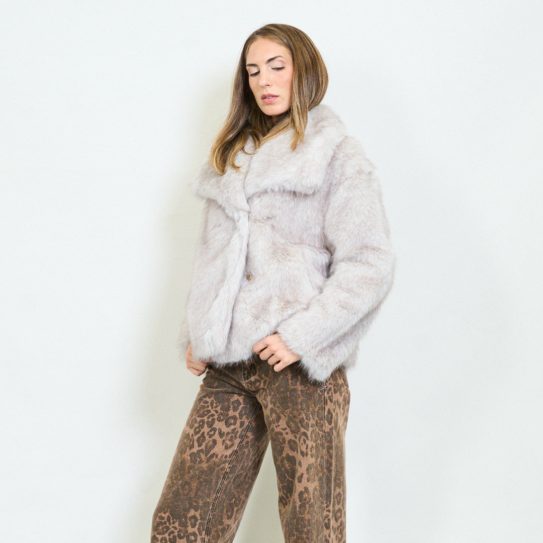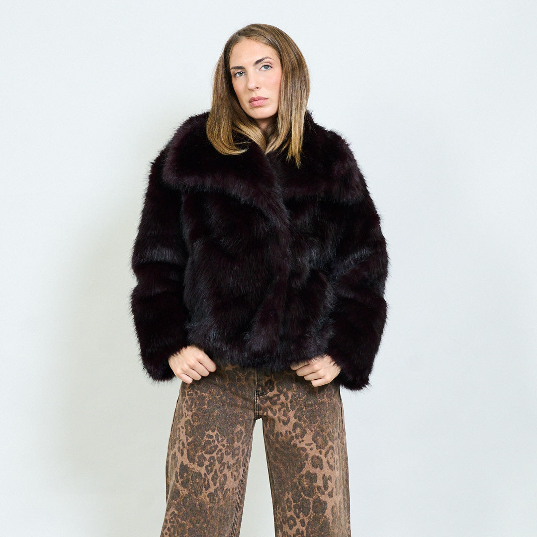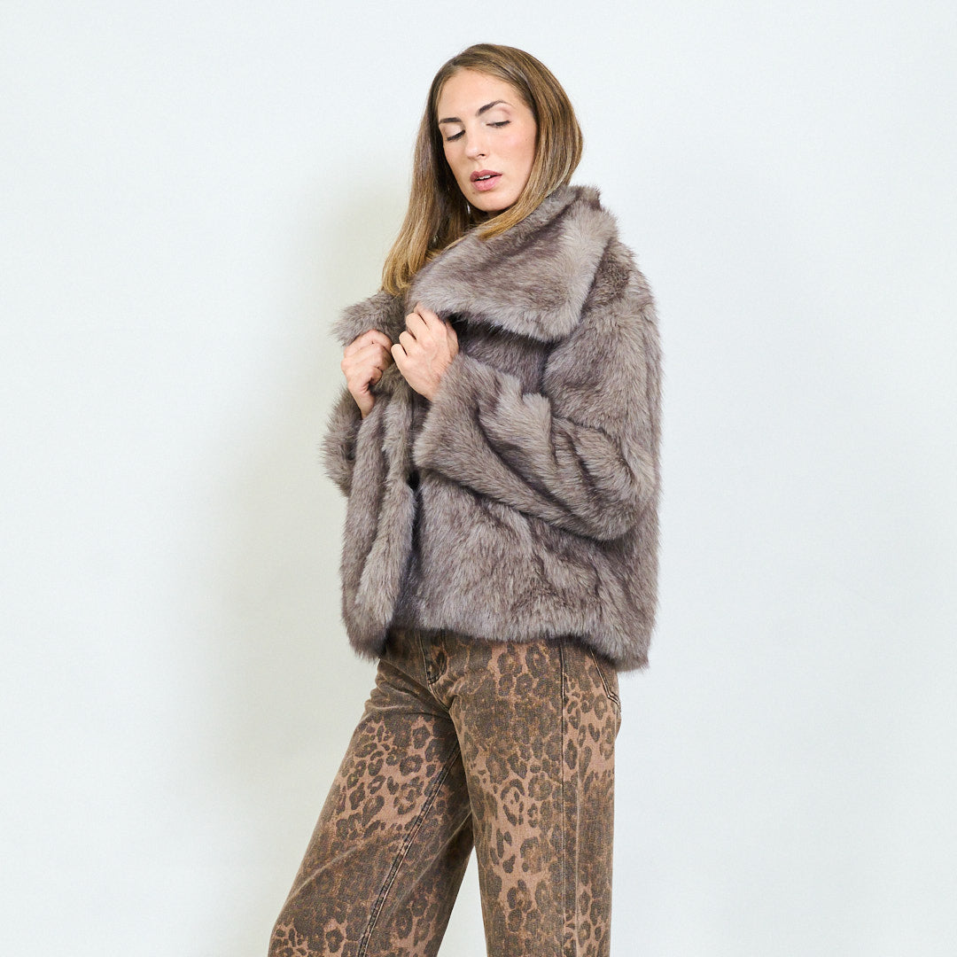 Abrigo de piel sintética corta con collar de solapa de gran tamaño al por mayor