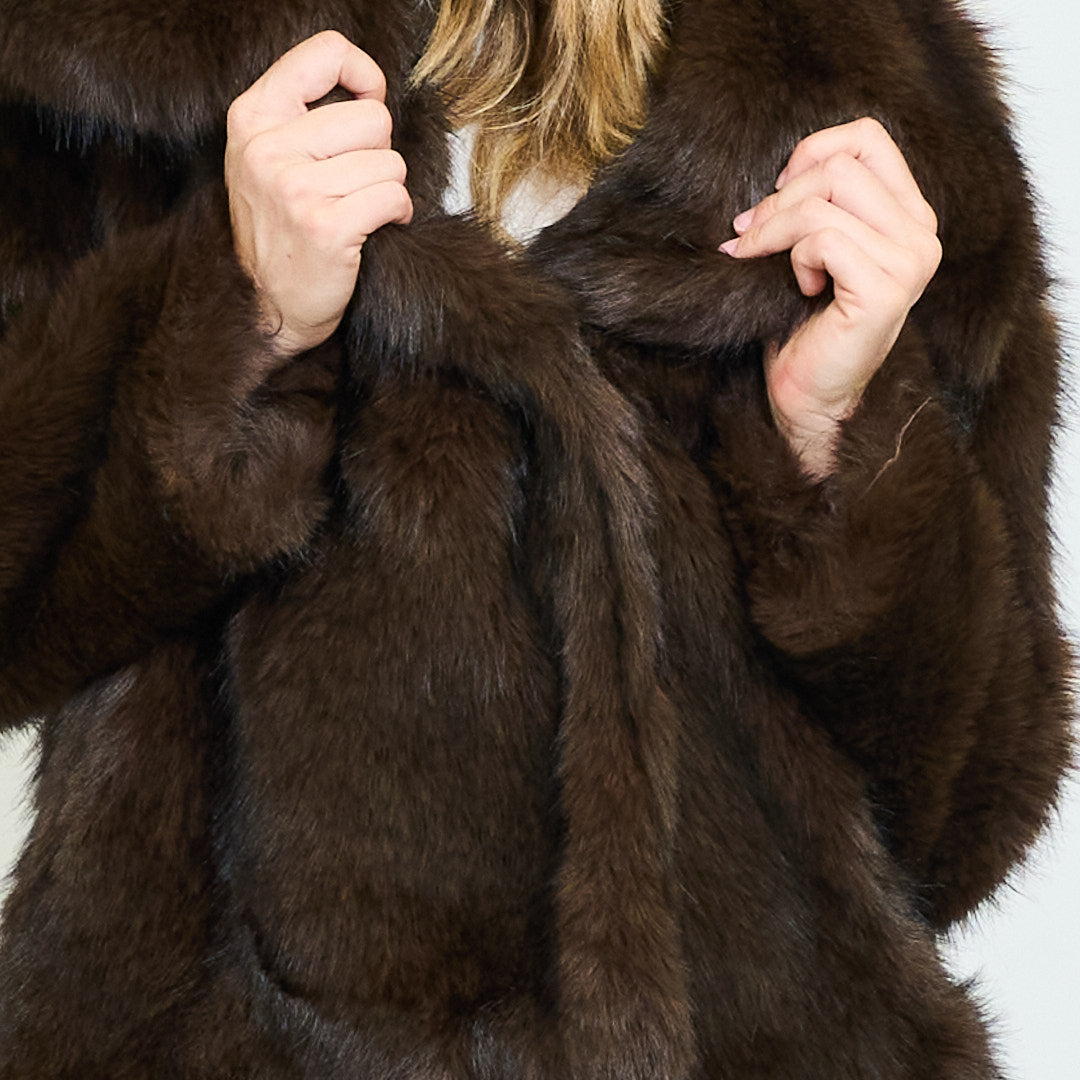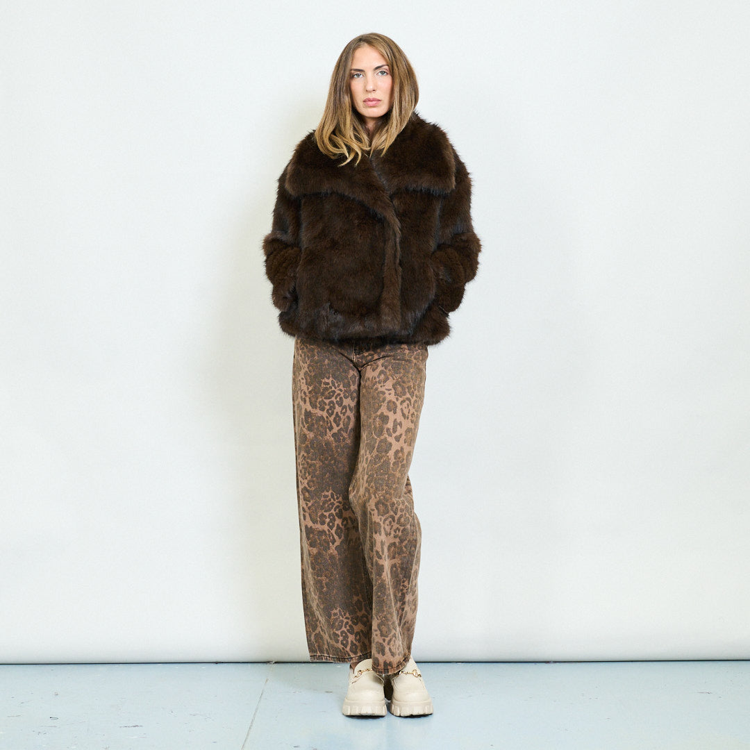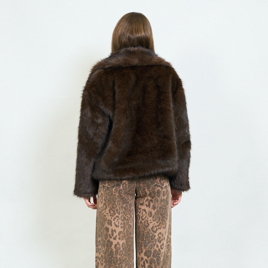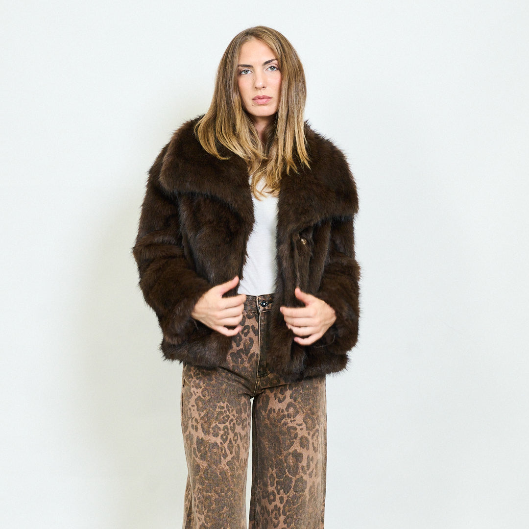 Abrigo de piel sintética corta con collar de solapa de gran tamaño al por mayor