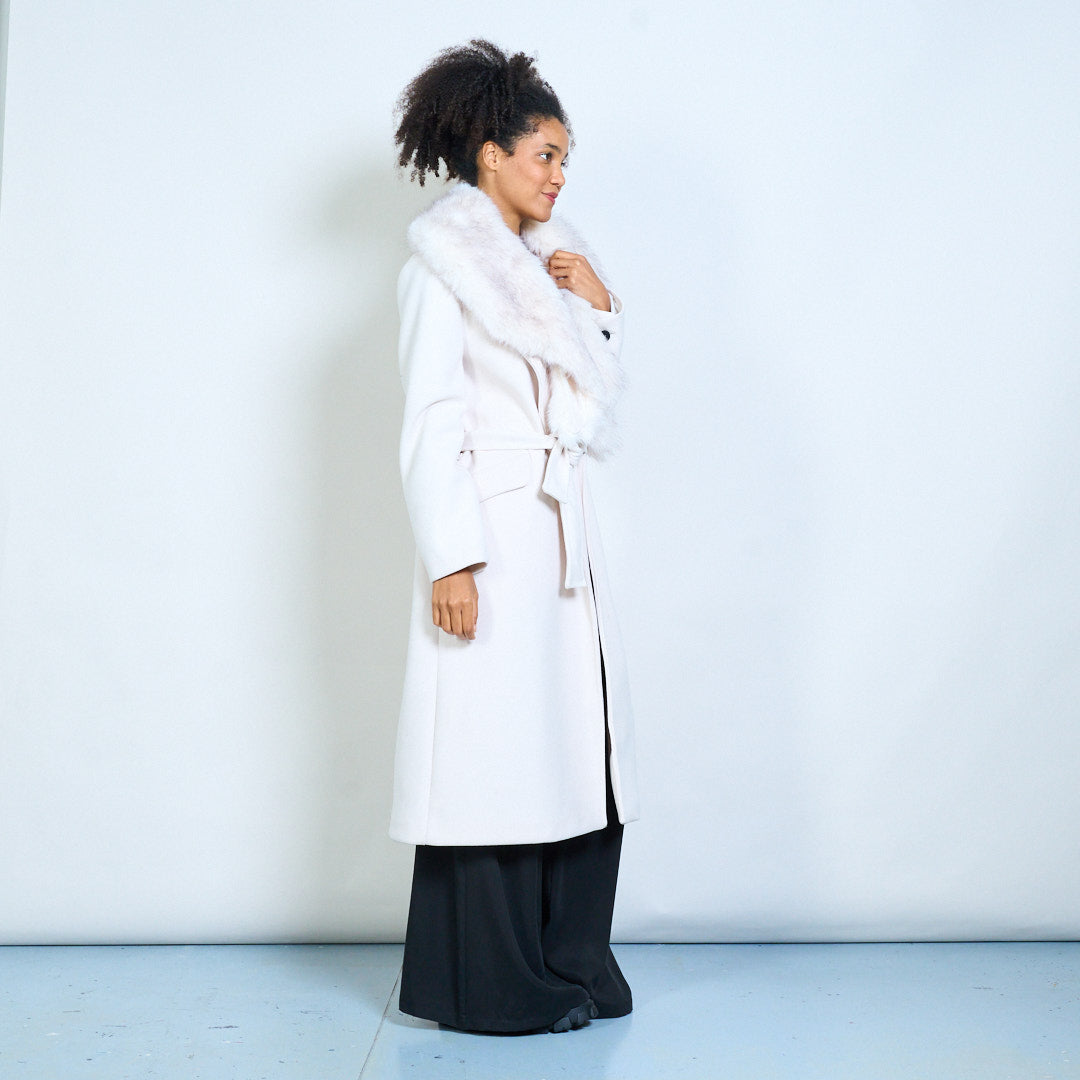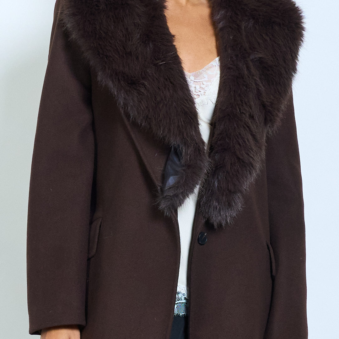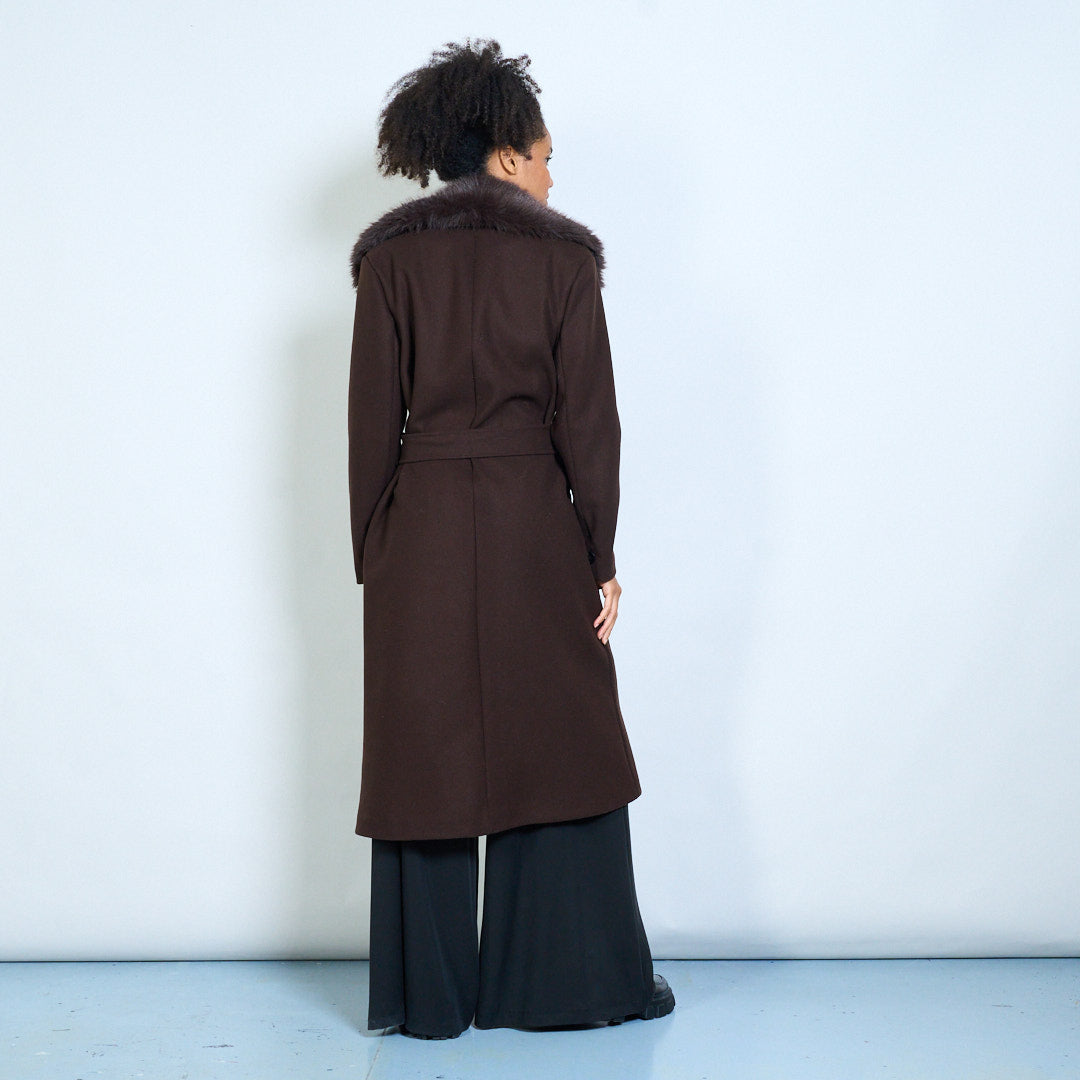 Abrigo largo cruzado con cuello de piel sintética al por mayor
