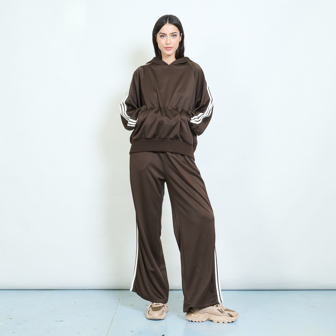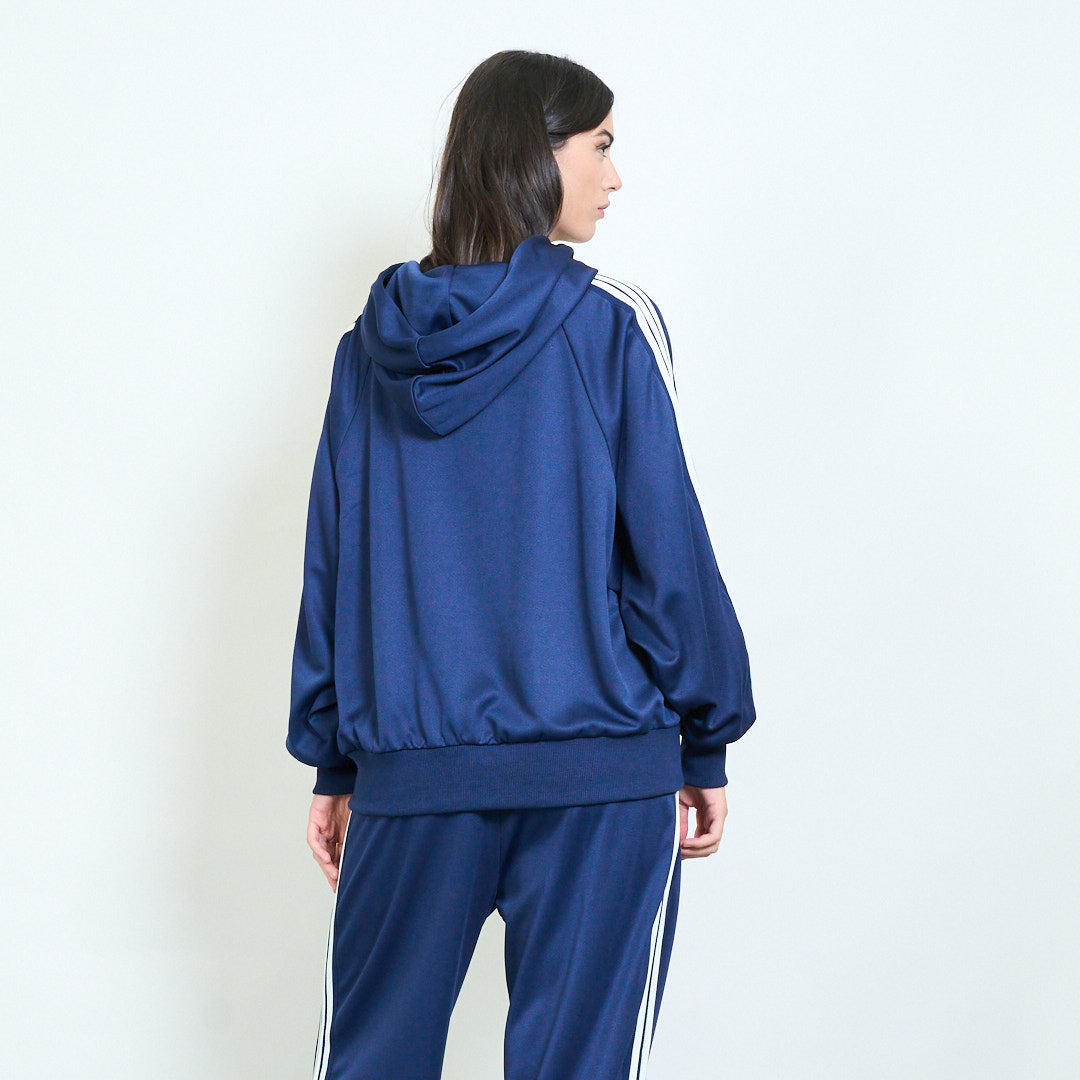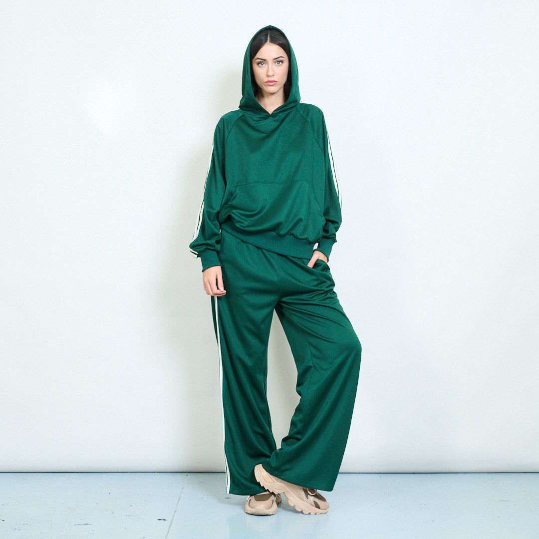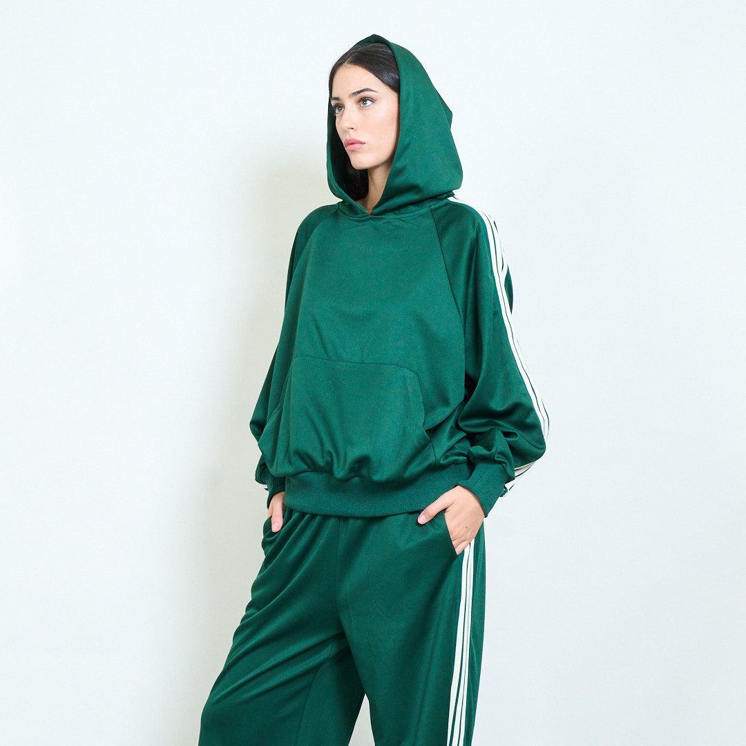 - Sudadera deportiva con capucha y detalles de rayas en contraste a lo largo de las mangas