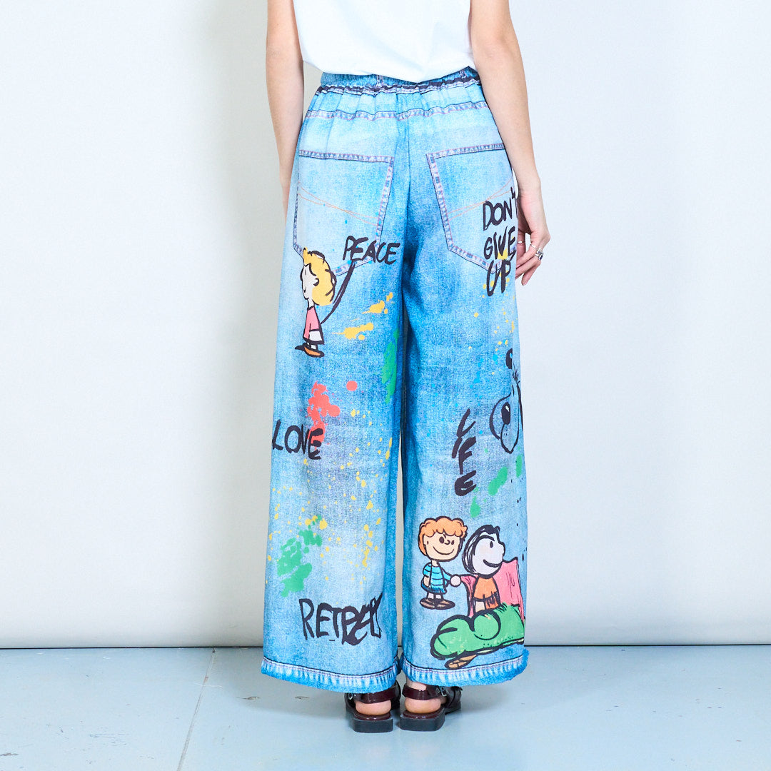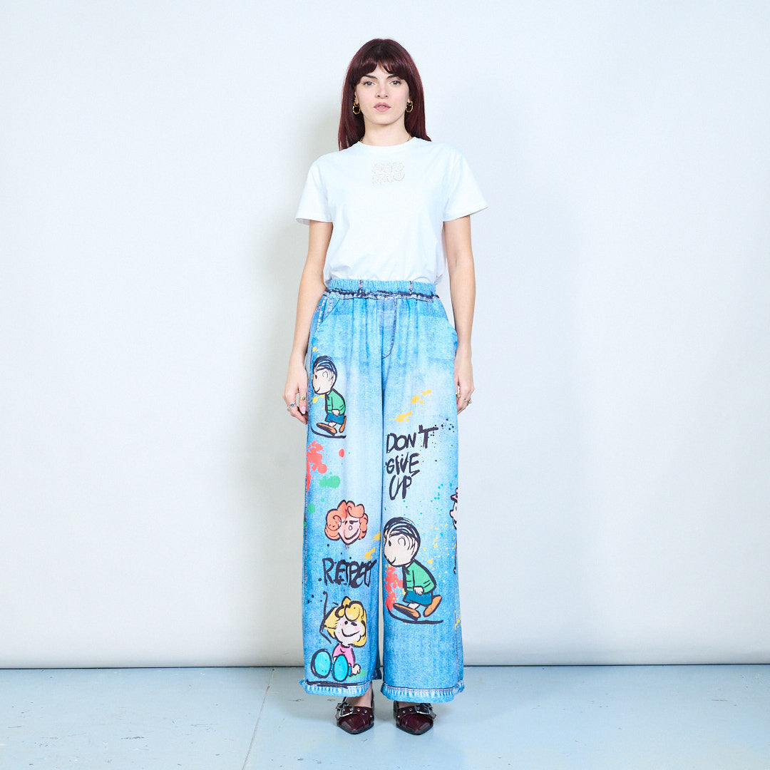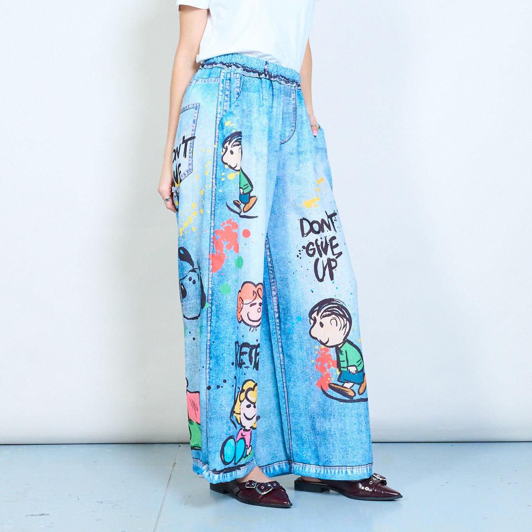 Animalia edit pantalones vaqueros anchos con cintura elástica y estampado gráfico de dibujos animados al por mayor