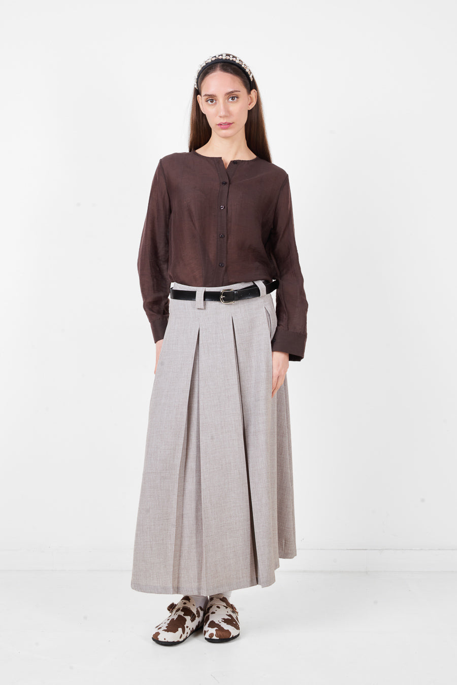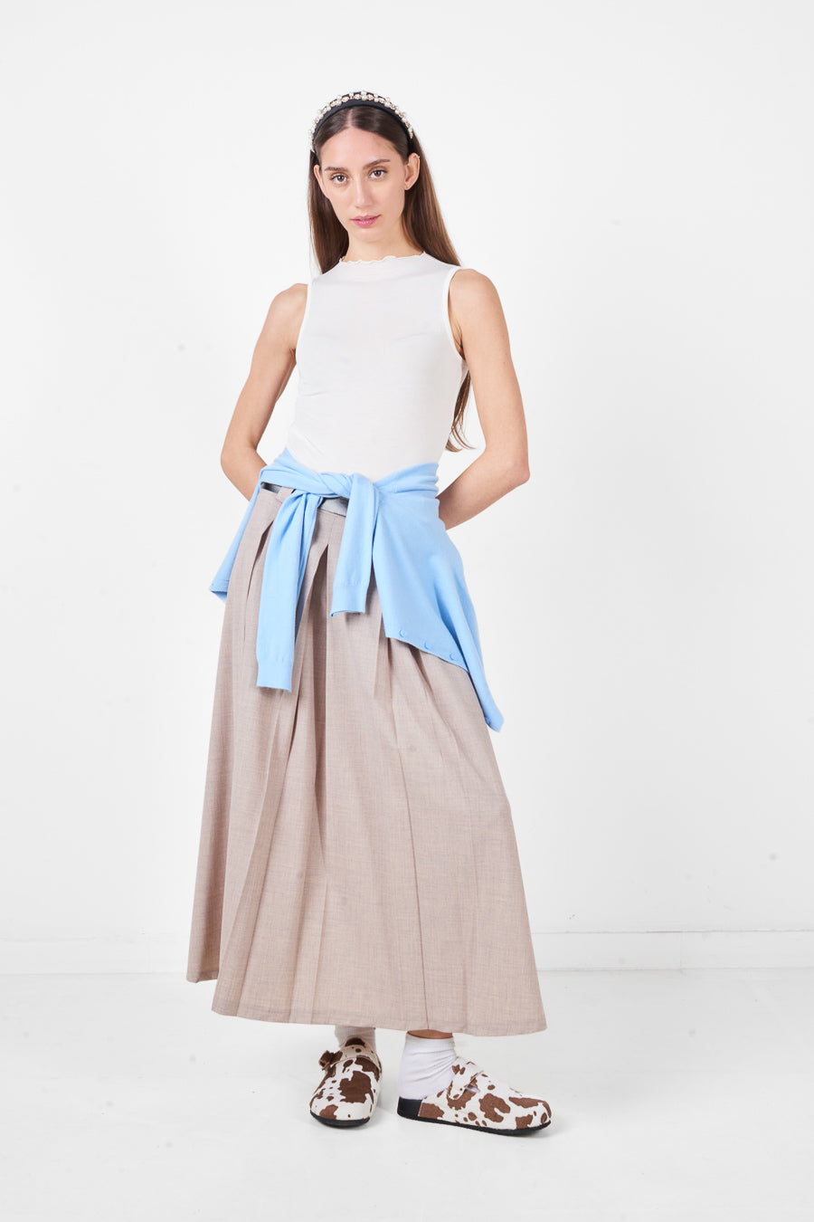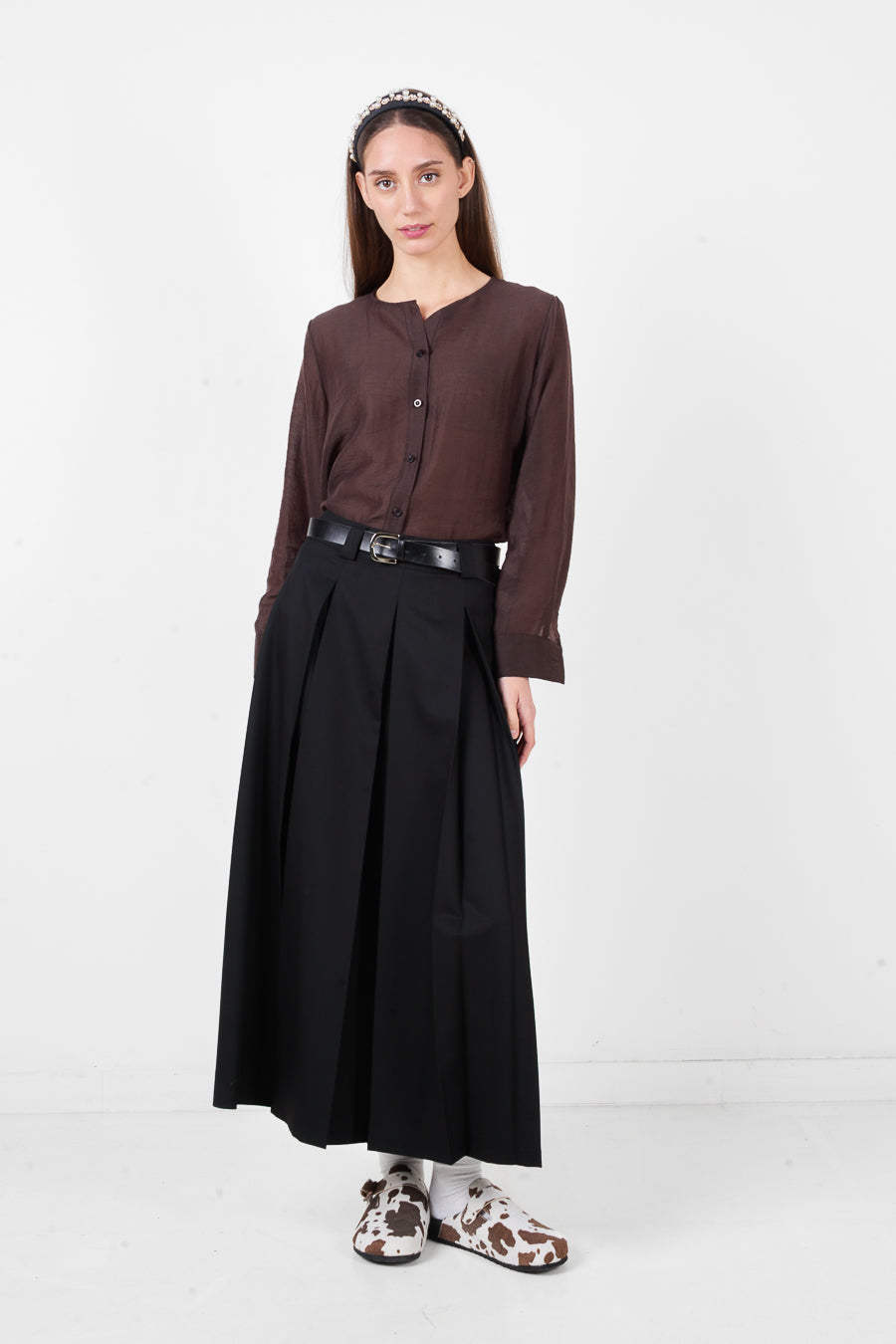 Falda larga plisada de cintura alta con silueta estructurada y caída fluida al por mayor