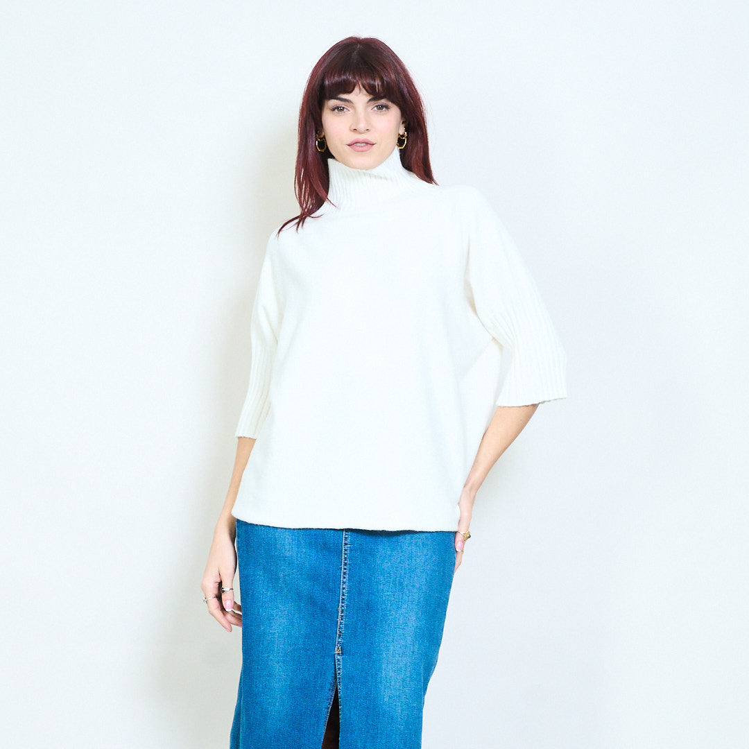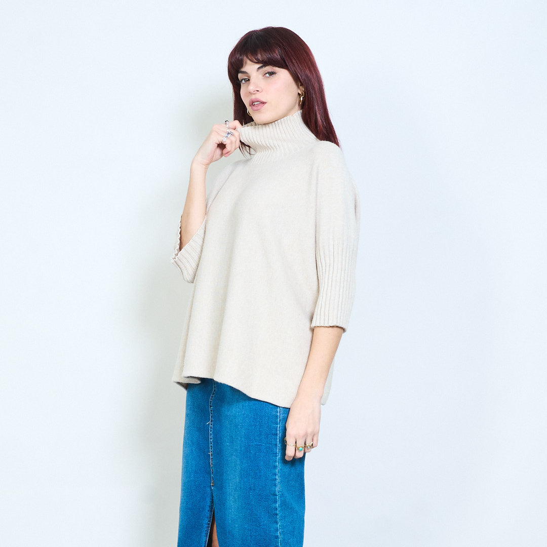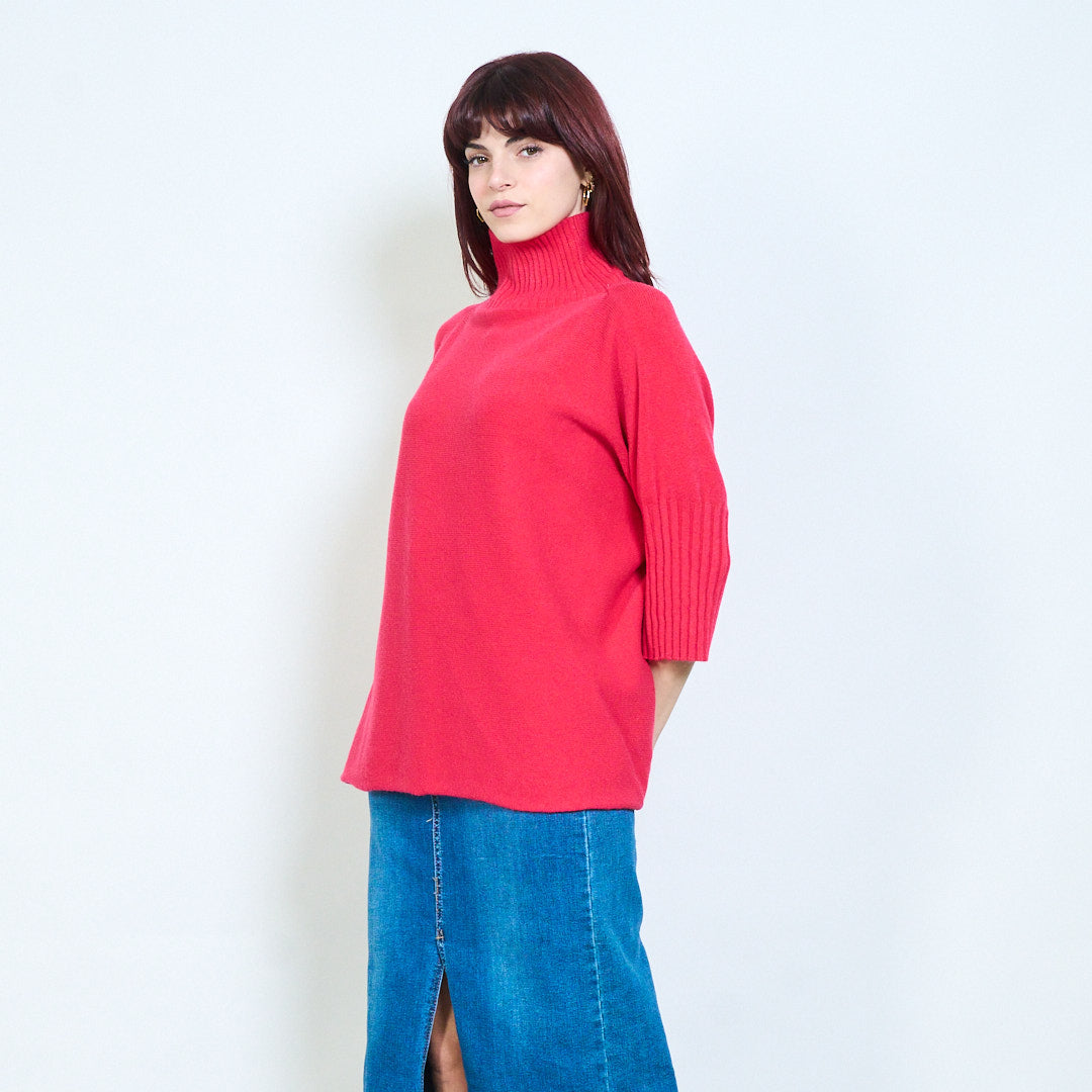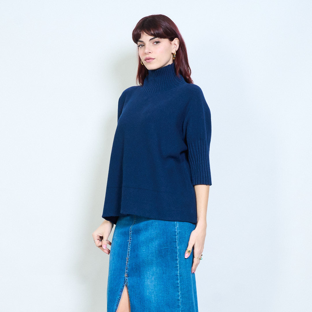 Top de punto con cuello alzado y manga plisada al por mayor