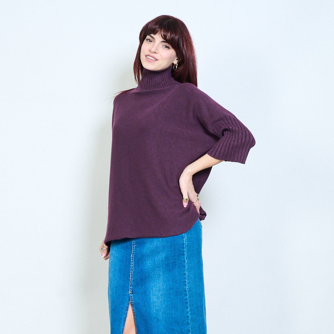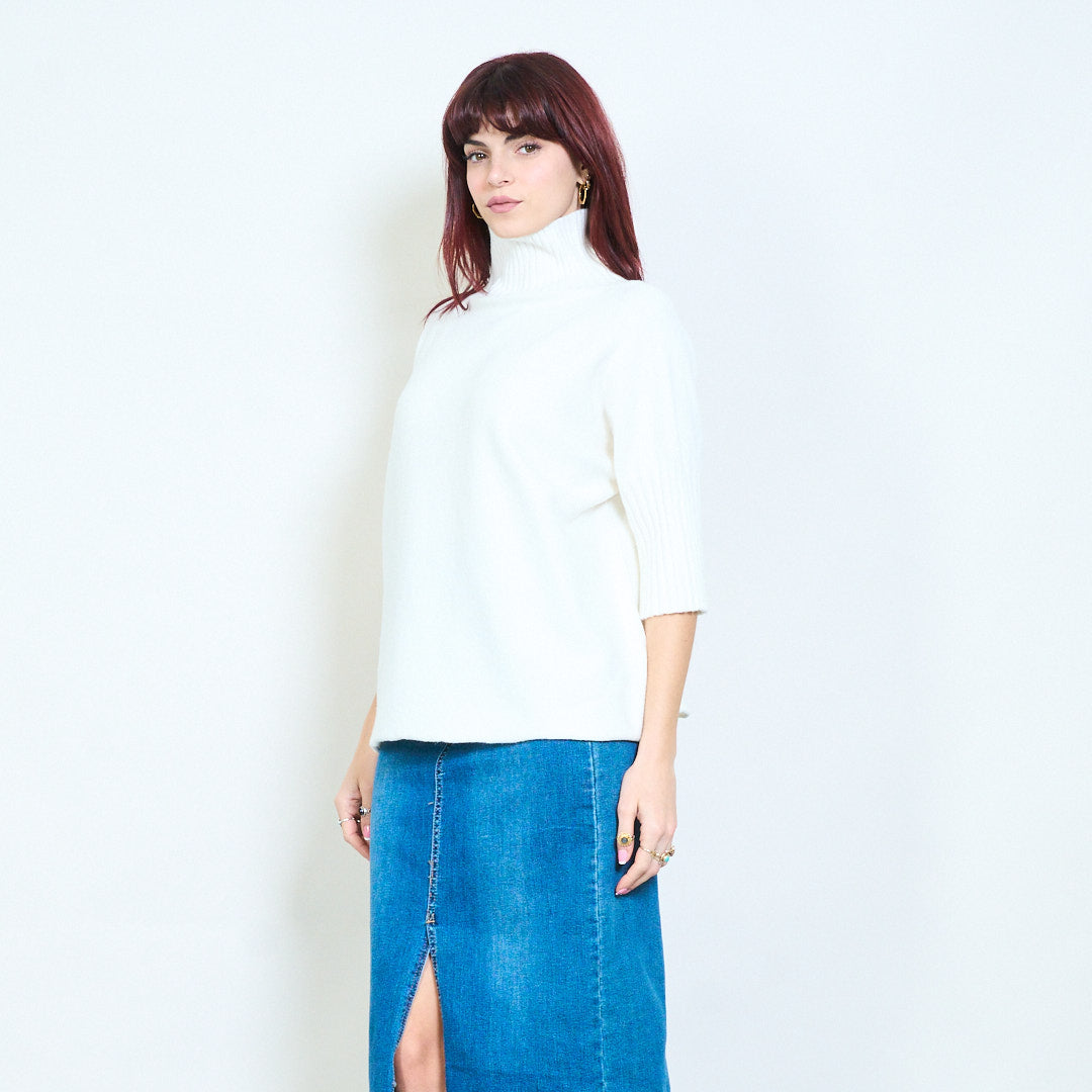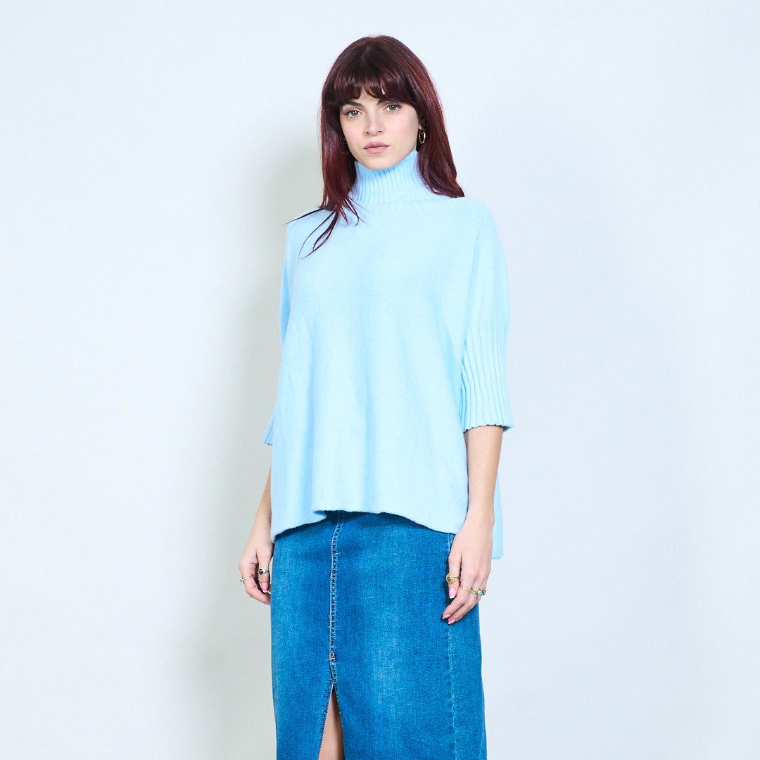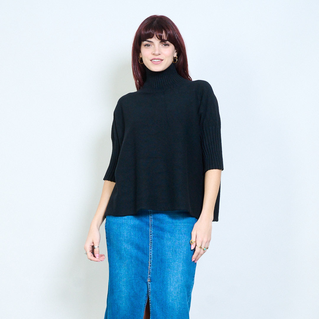 Top de punto con cuello alzado y manga plisada al por mayor