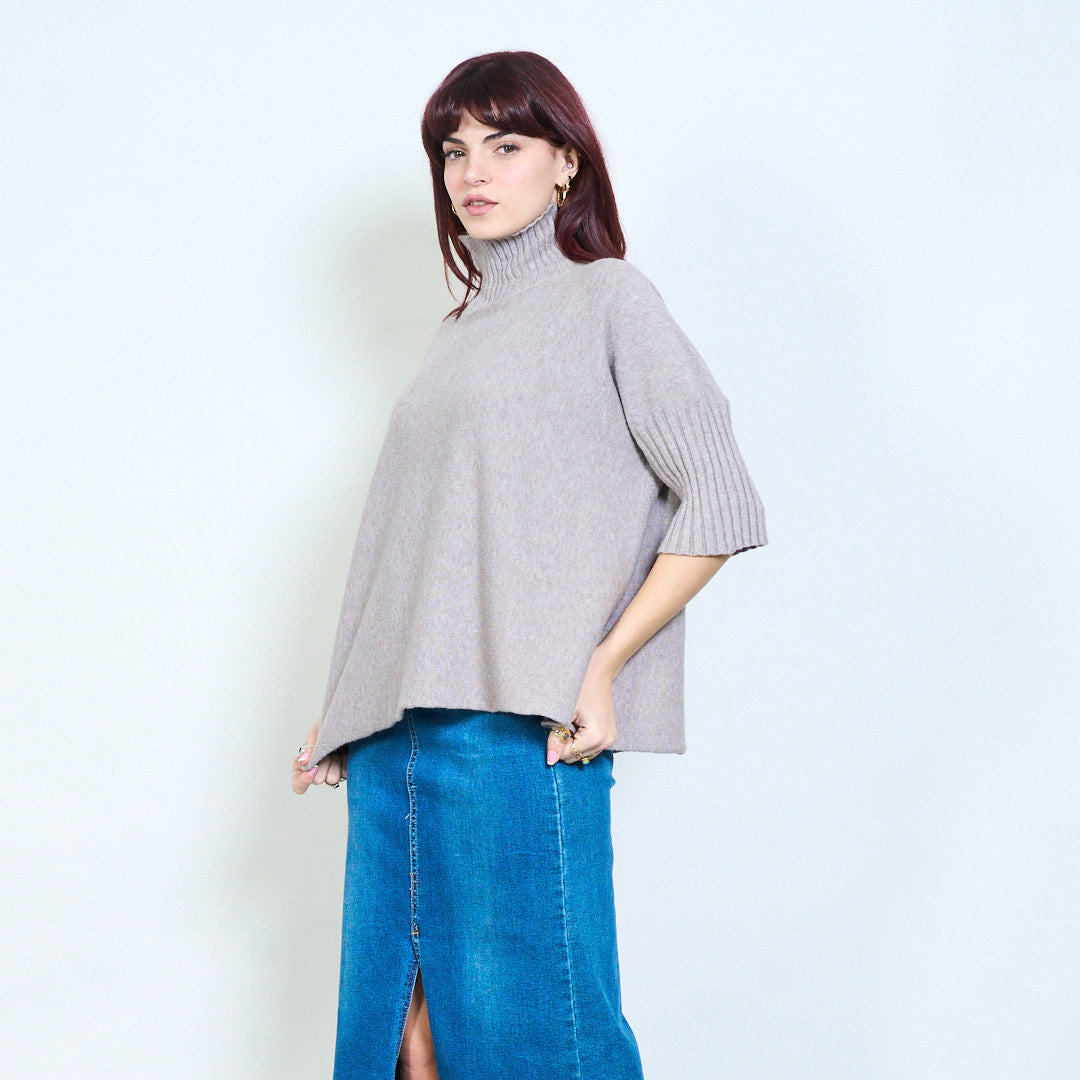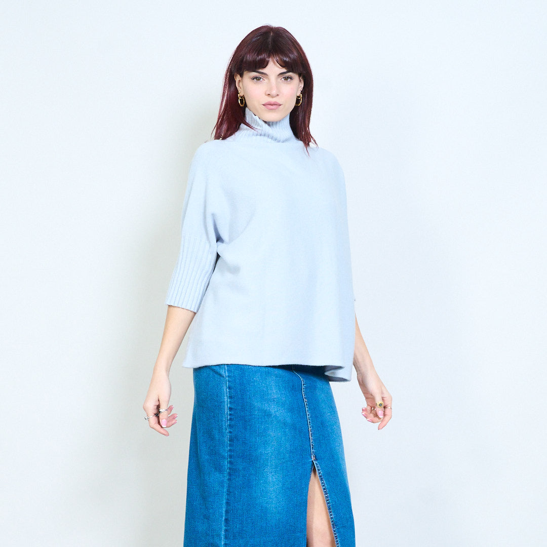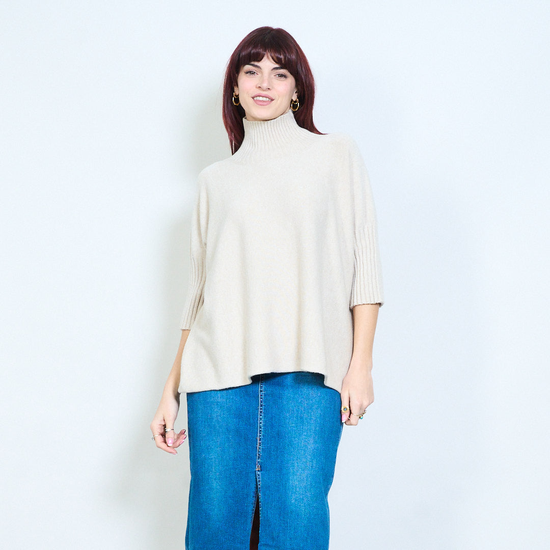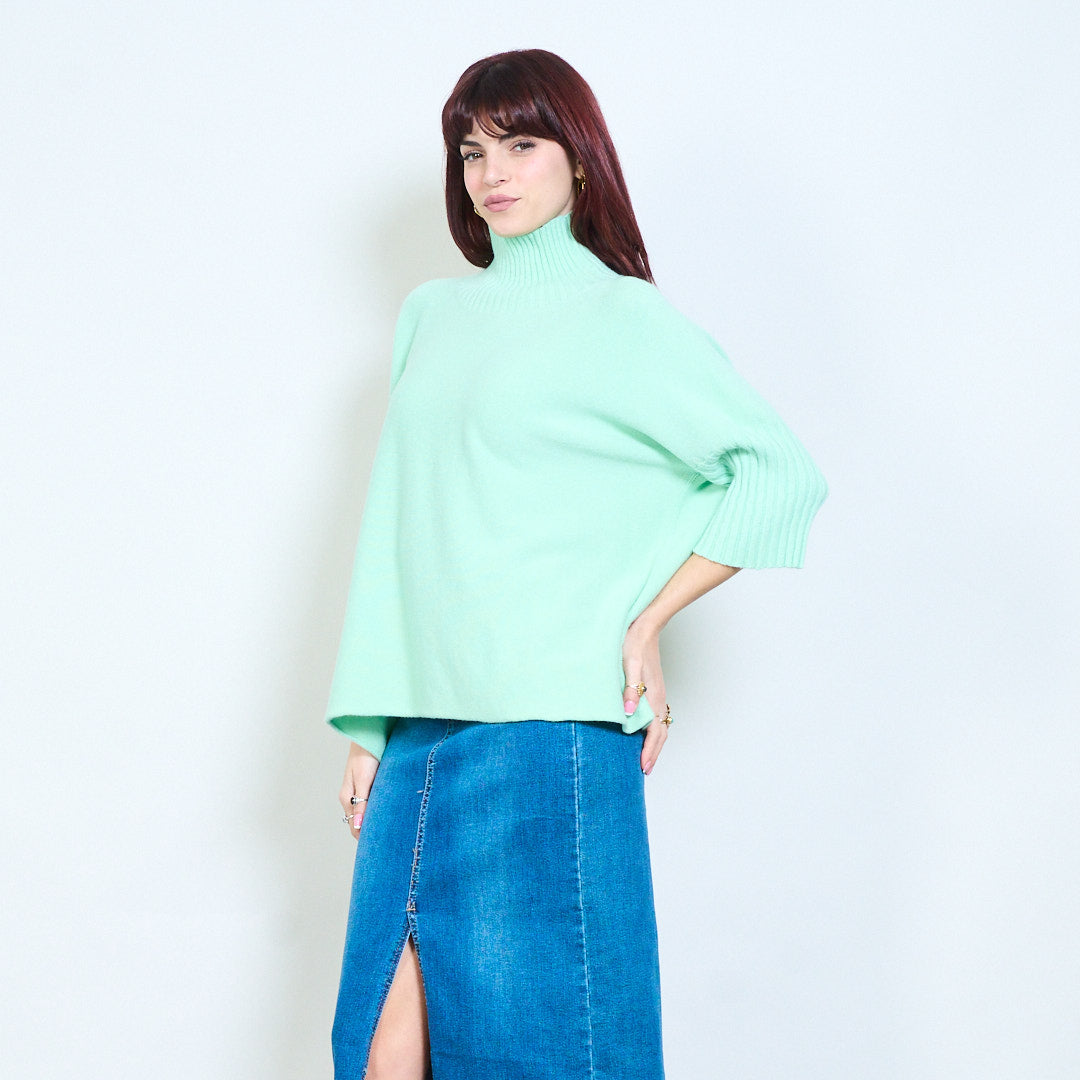 Top de punto con cuello alzado y manga plisada al por mayor