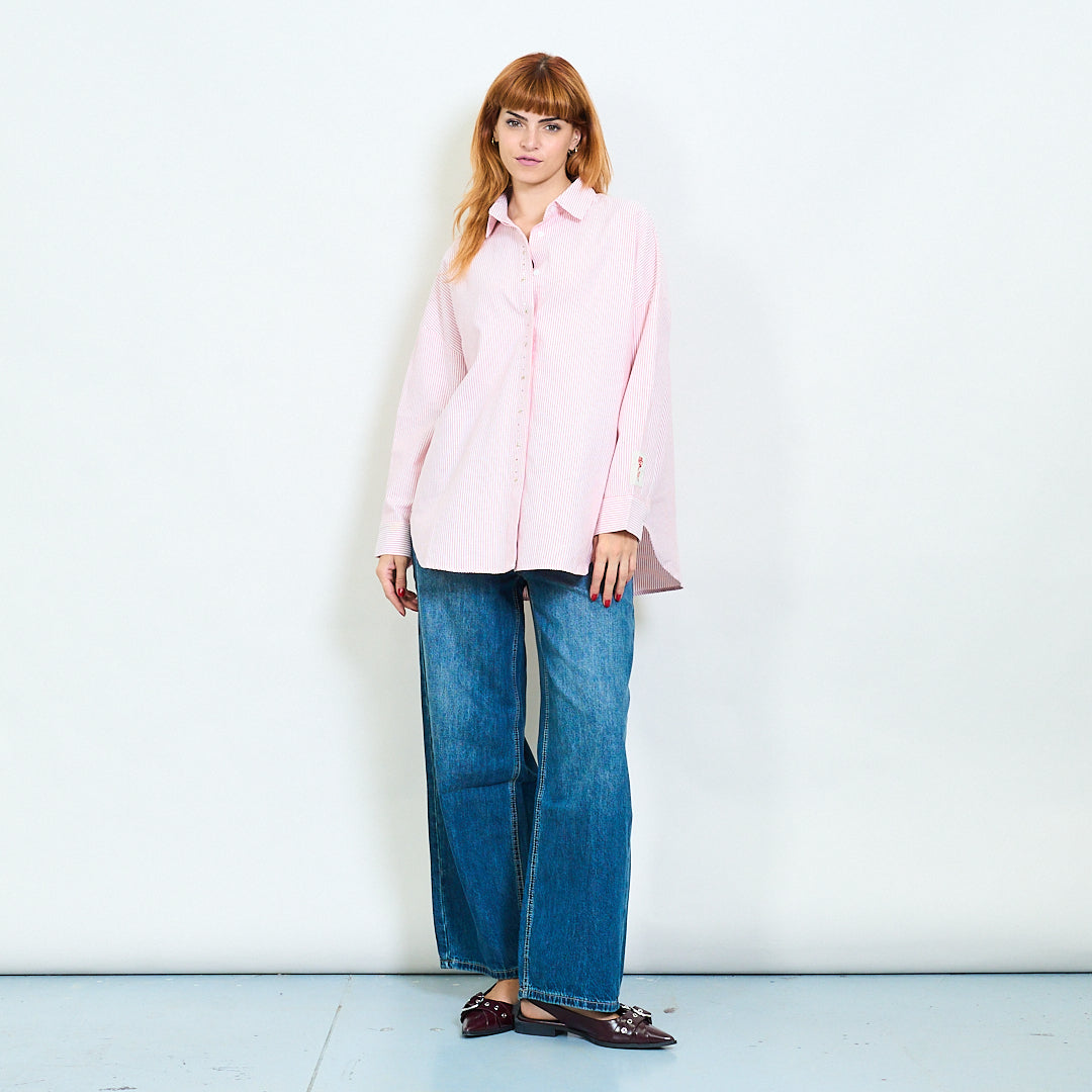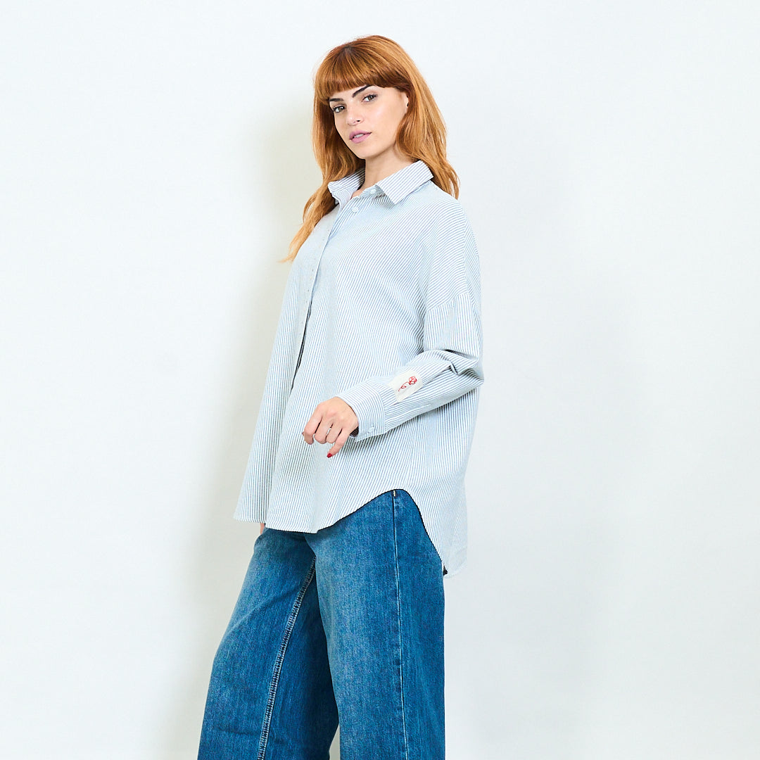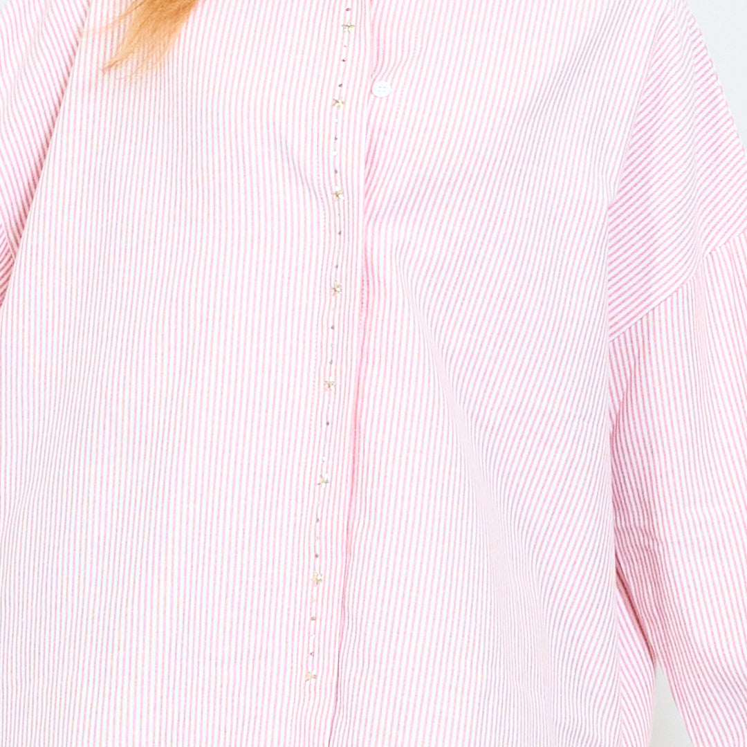 Camisa con botones de franja vertical con detalle de estrella al por mayor