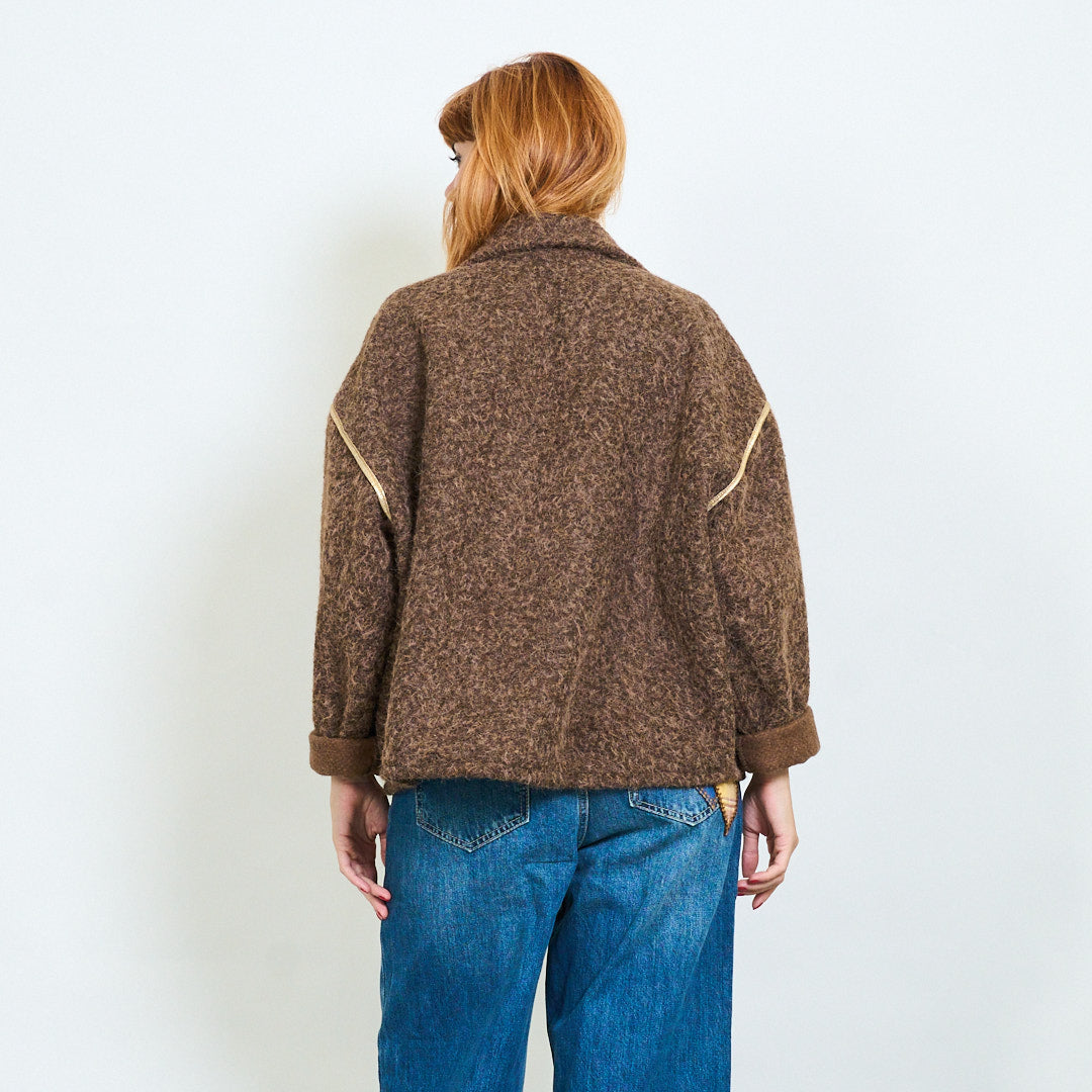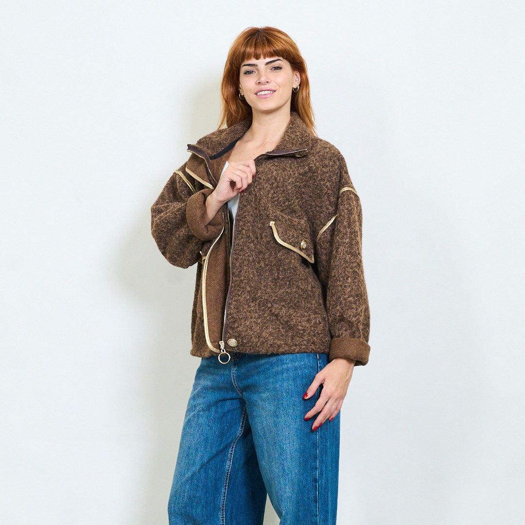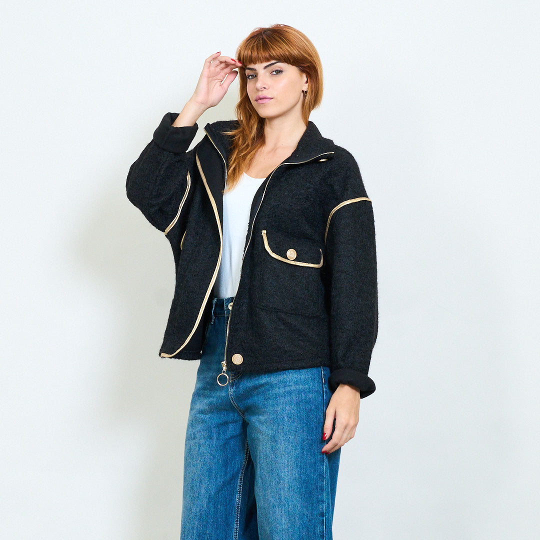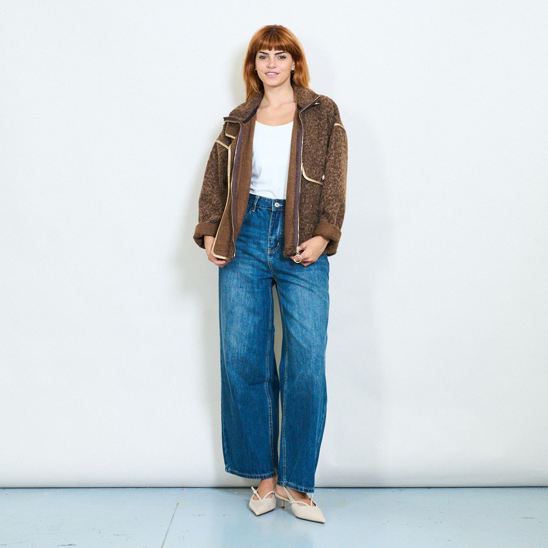 Chaqueta con cremallera texturizada con recorte de contraste al por mayor