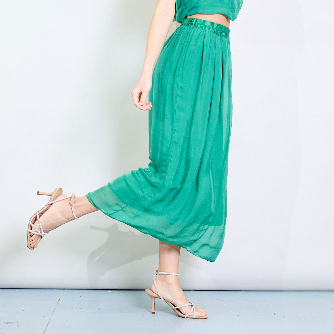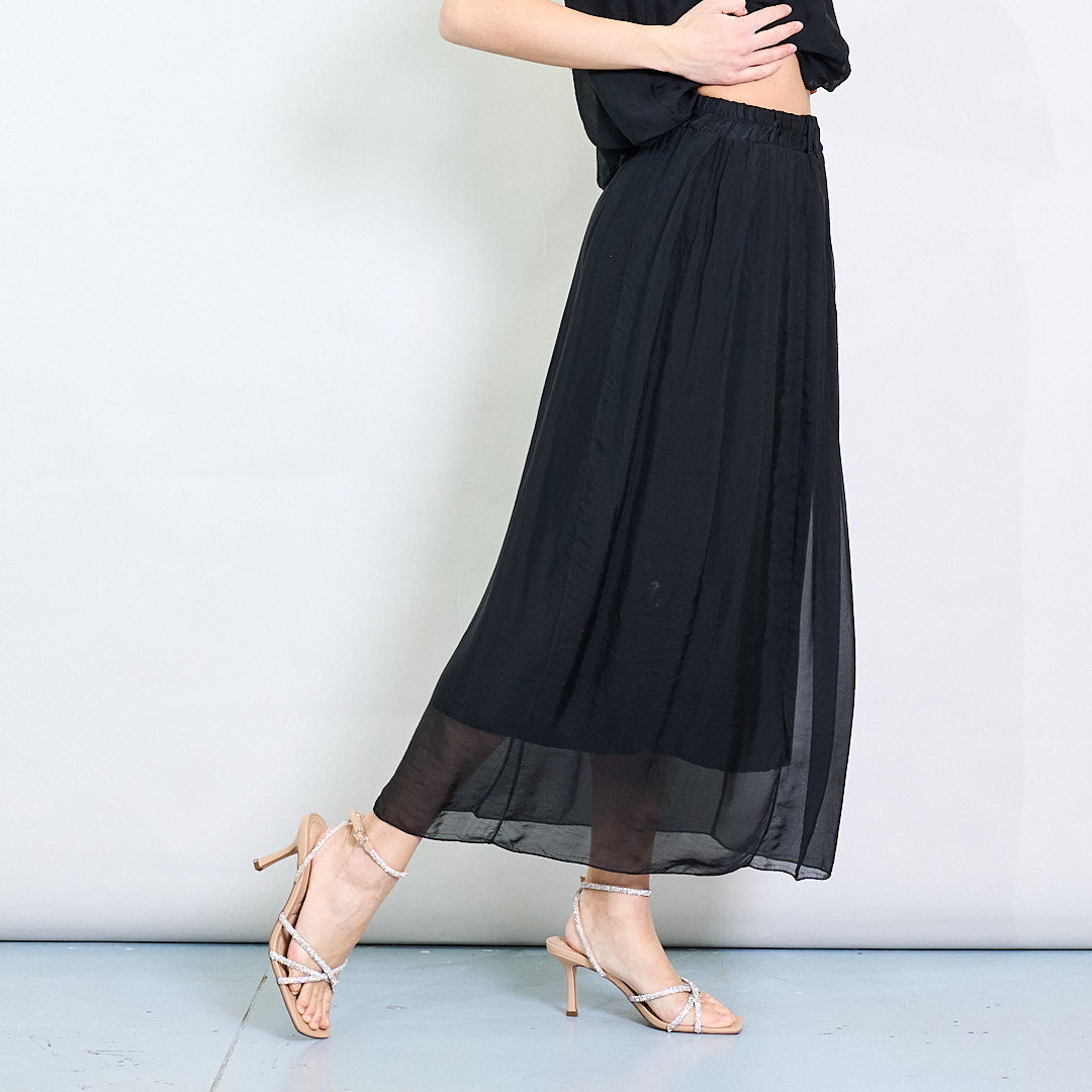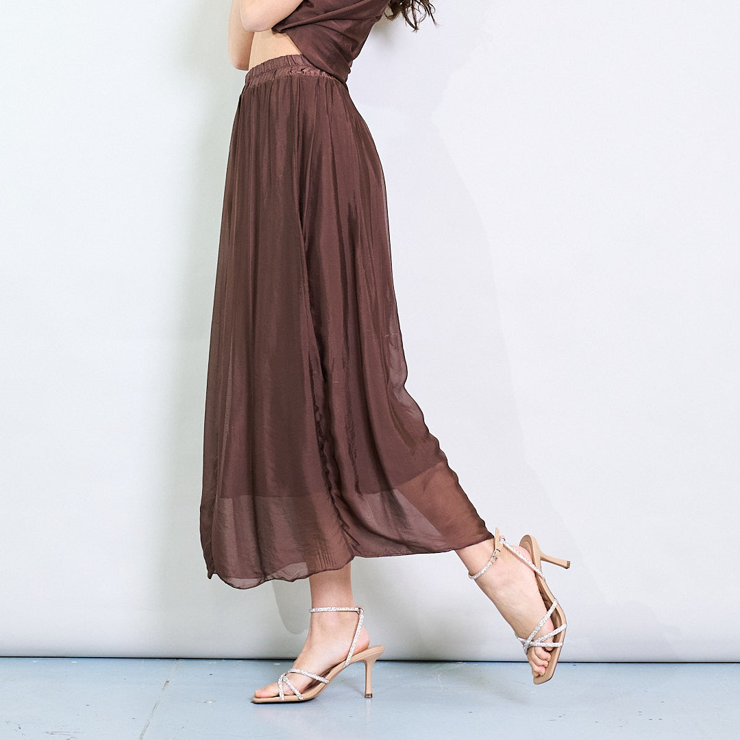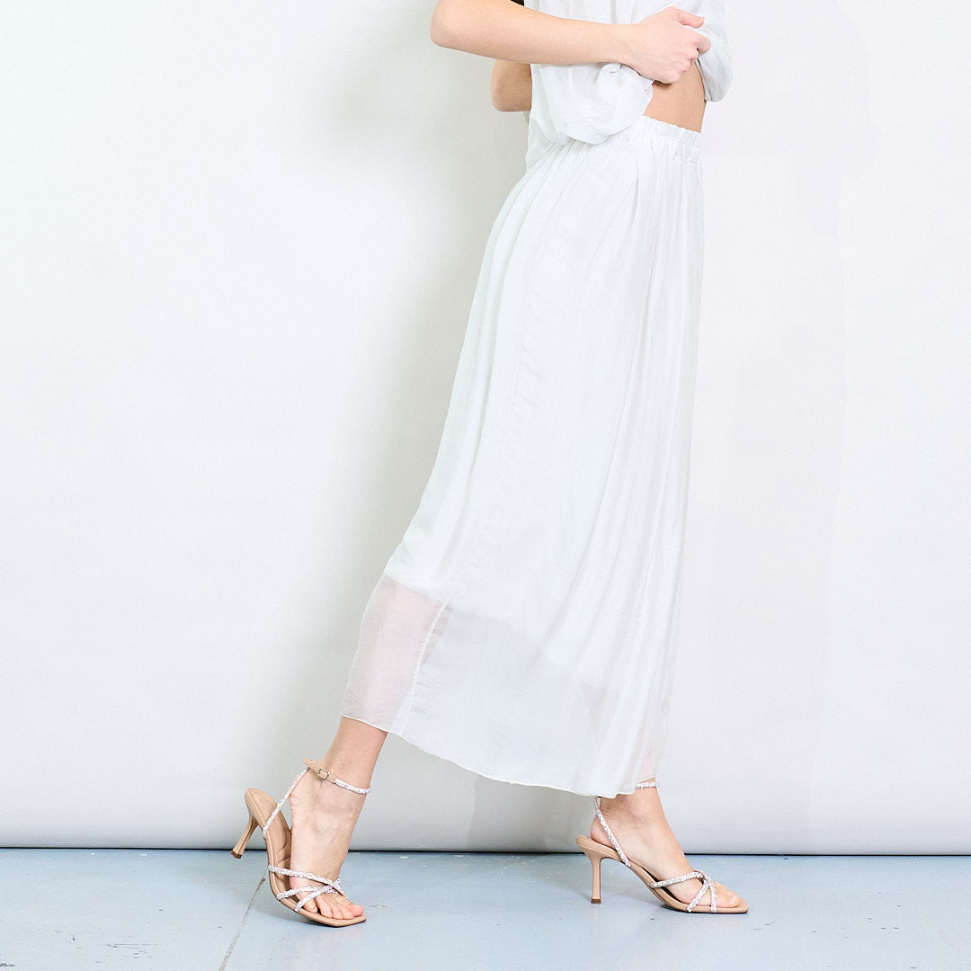 Flujo de gasa midi de cintura elástica fluida al por mayor