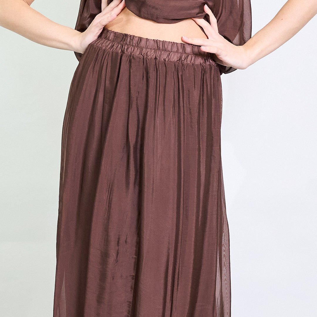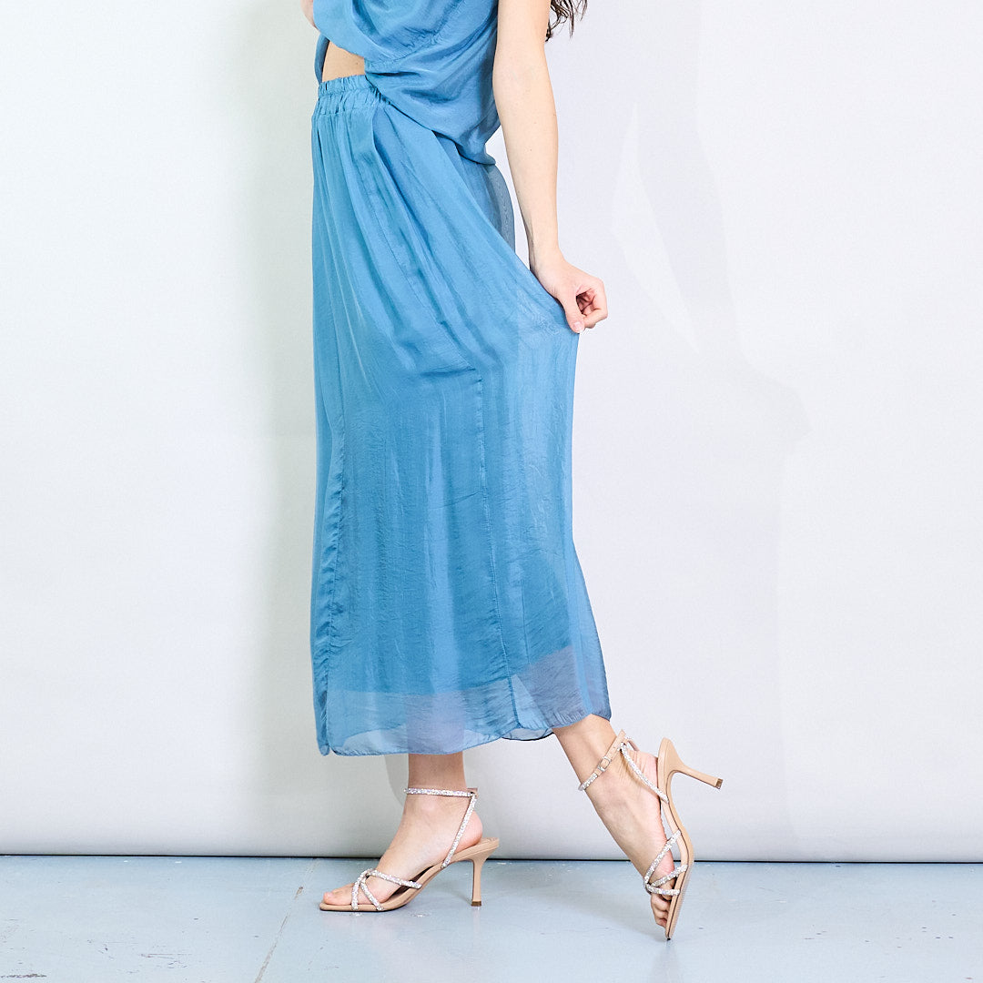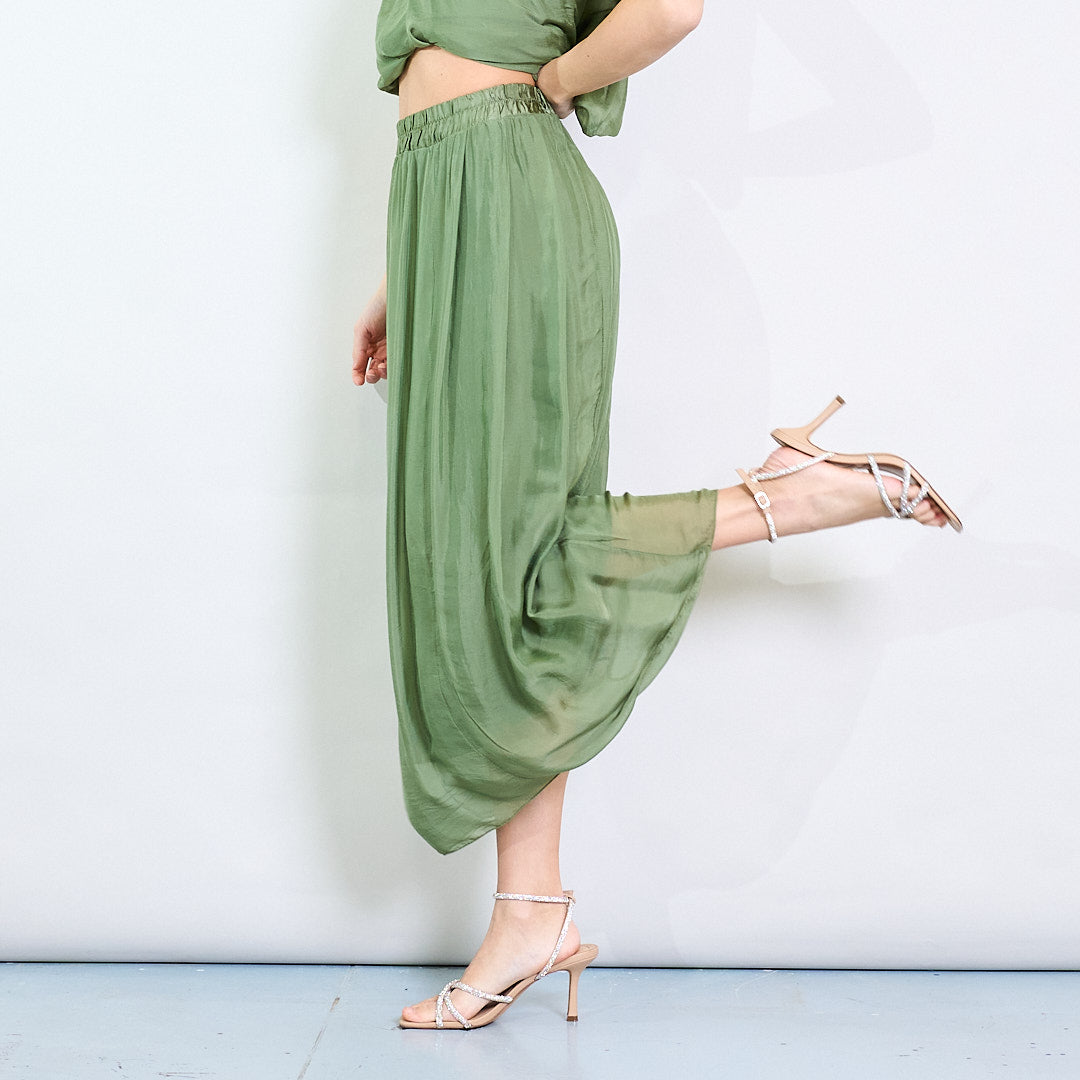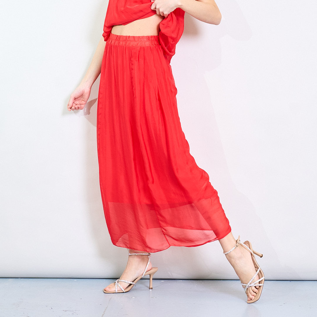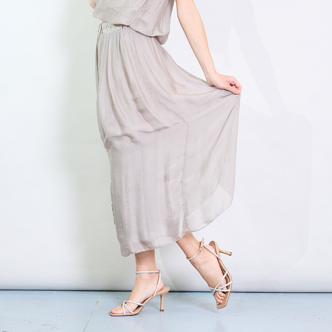Flujo de gasa midi de cintura elástica fluida al por mayor