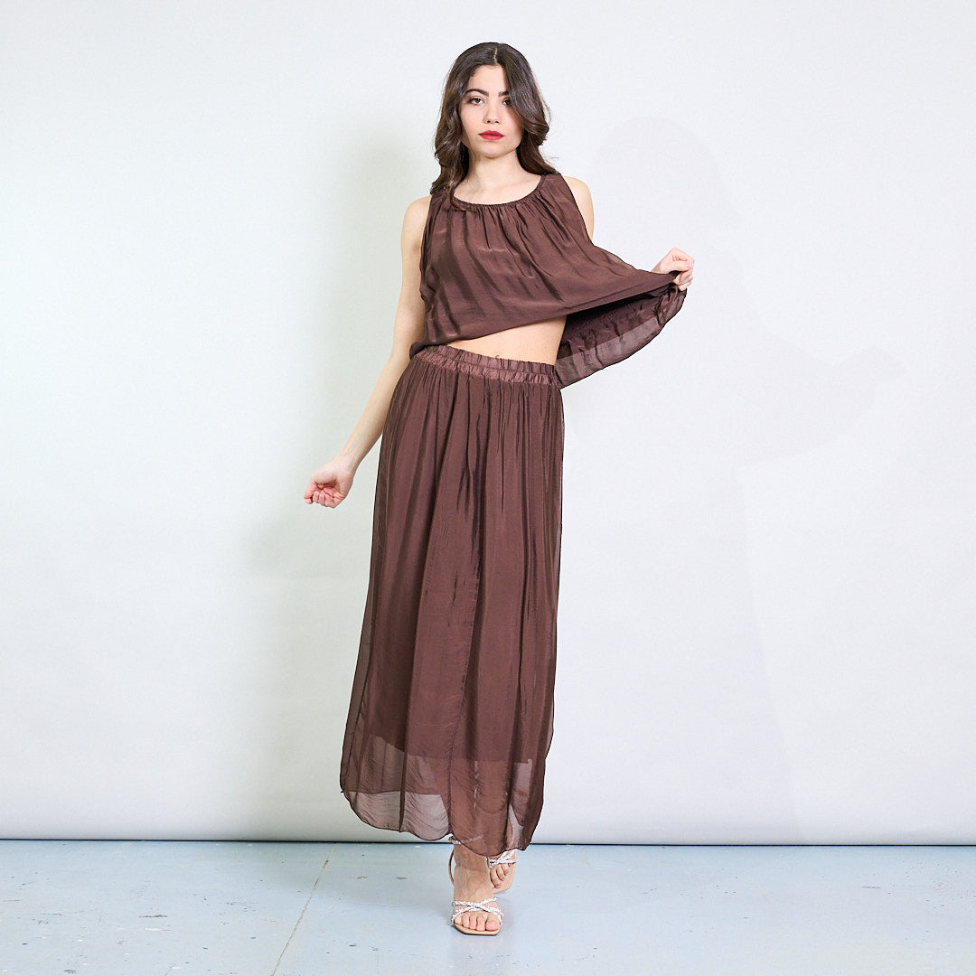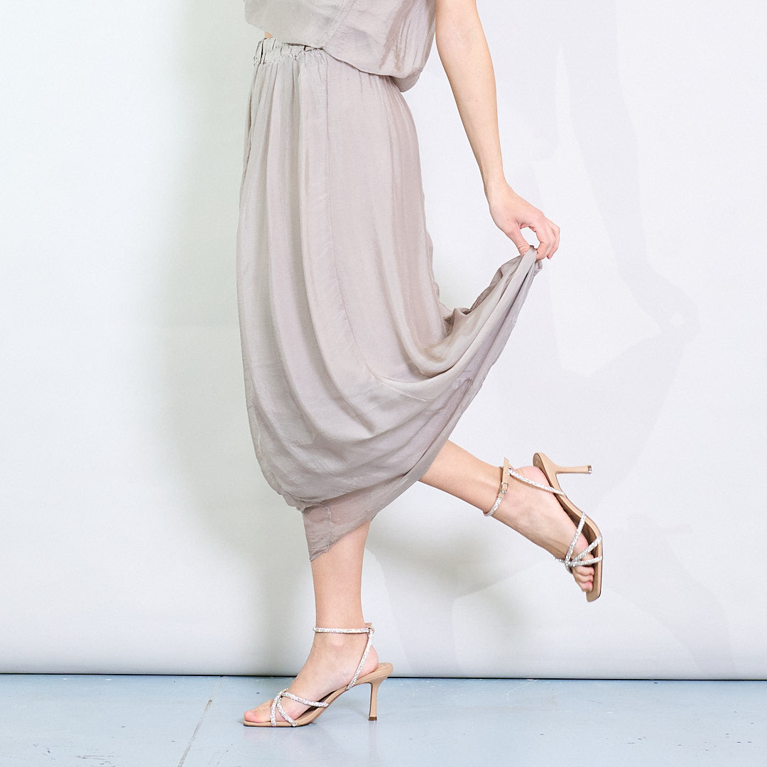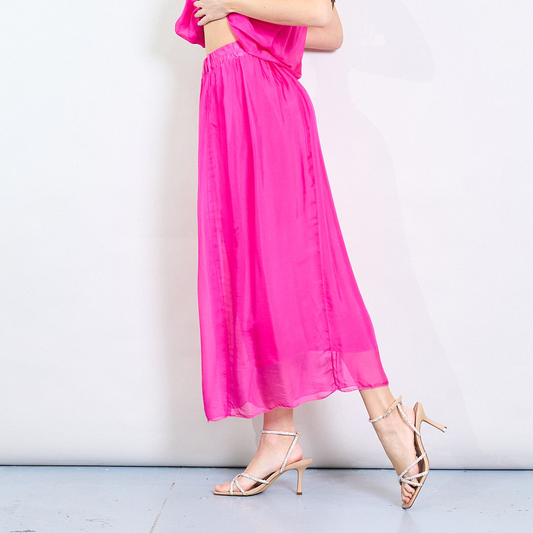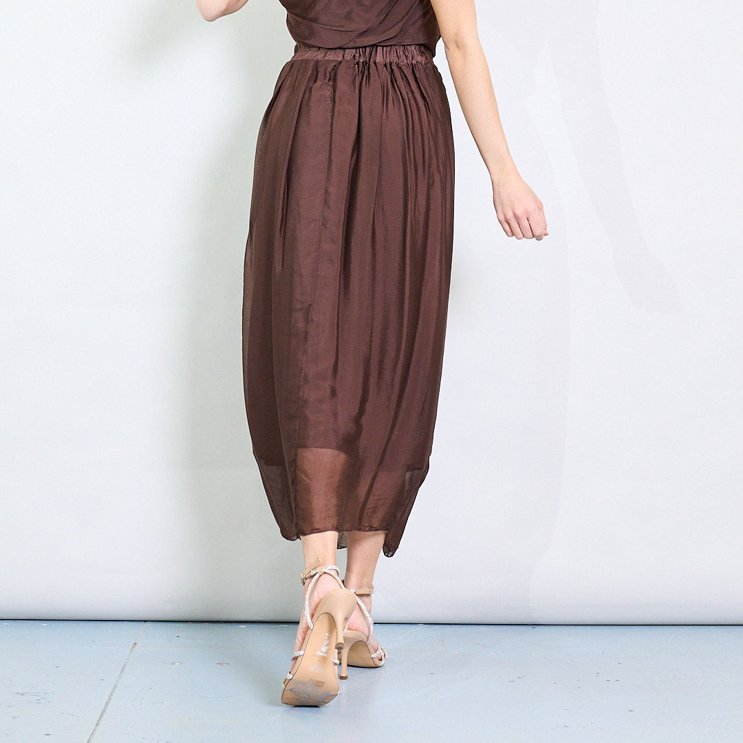 Flujo de gasa midi de cintura elástica fluida al por mayor
