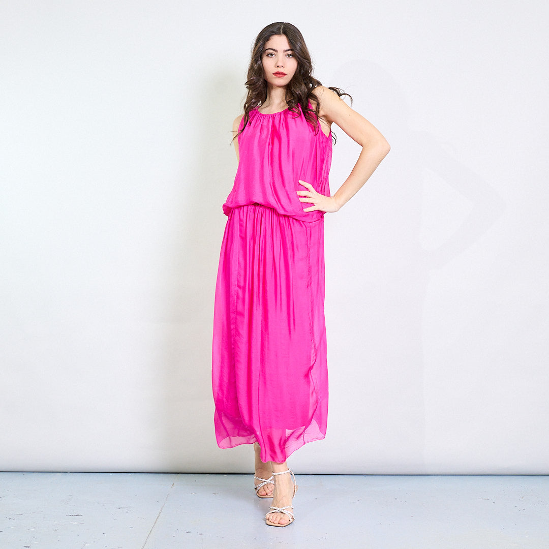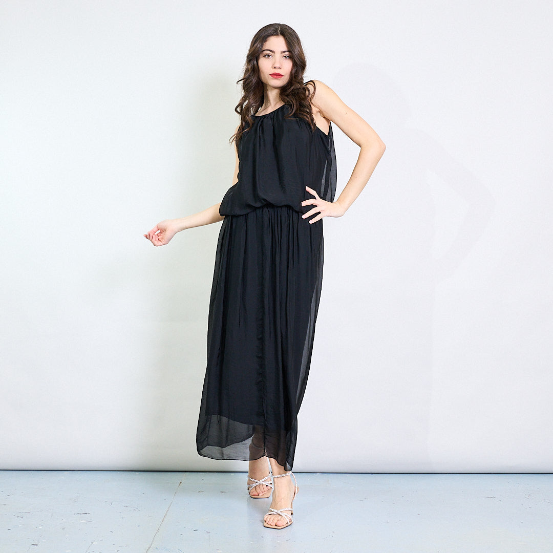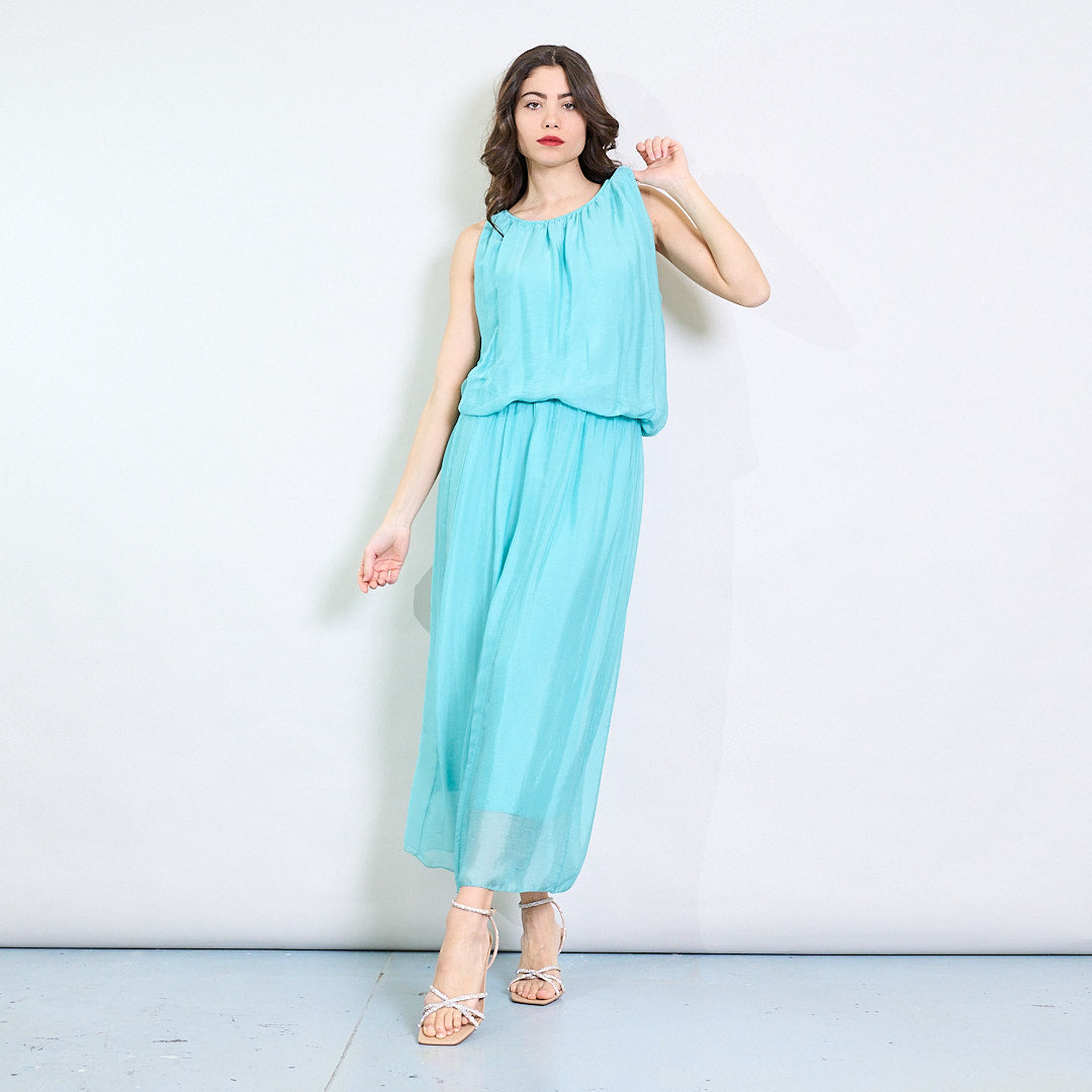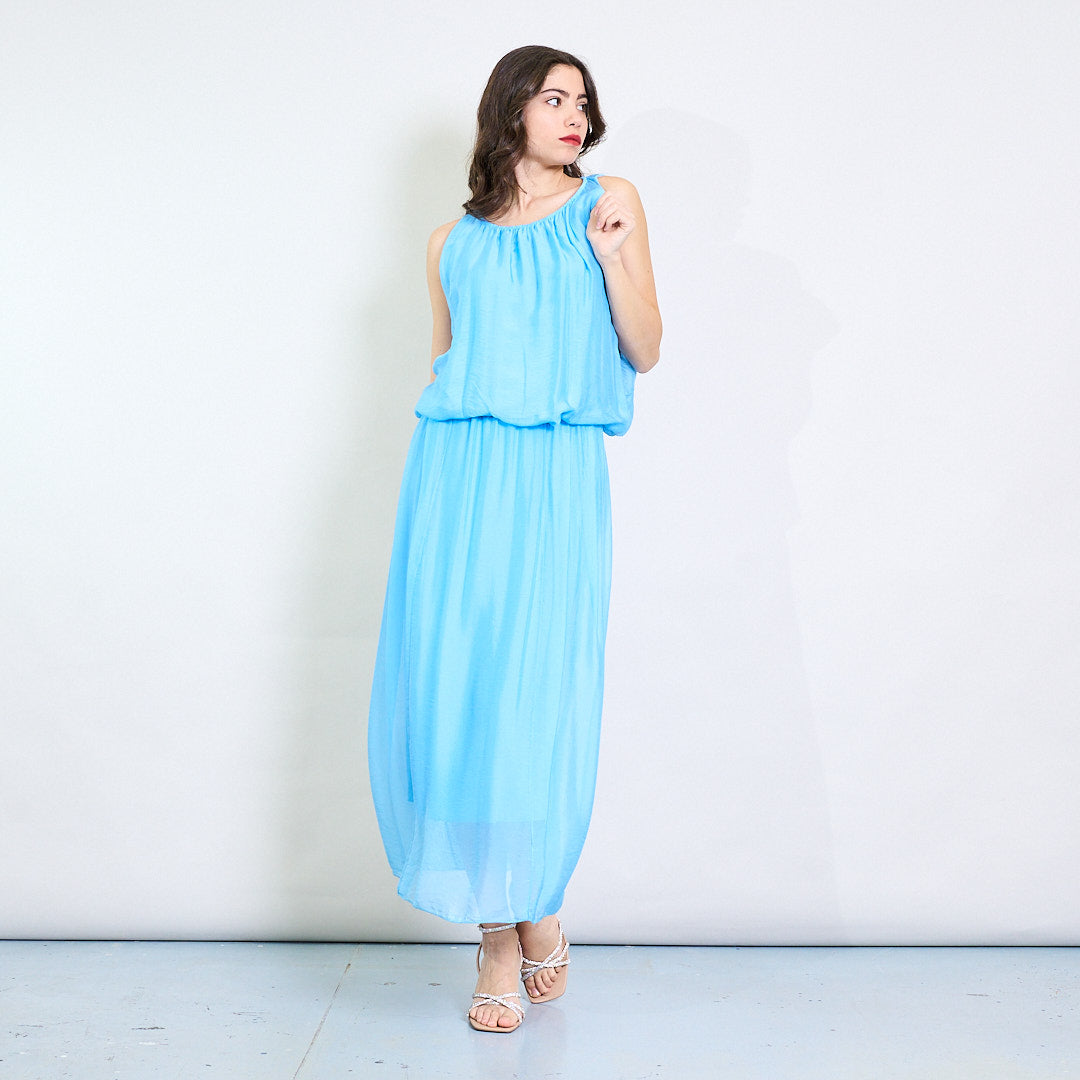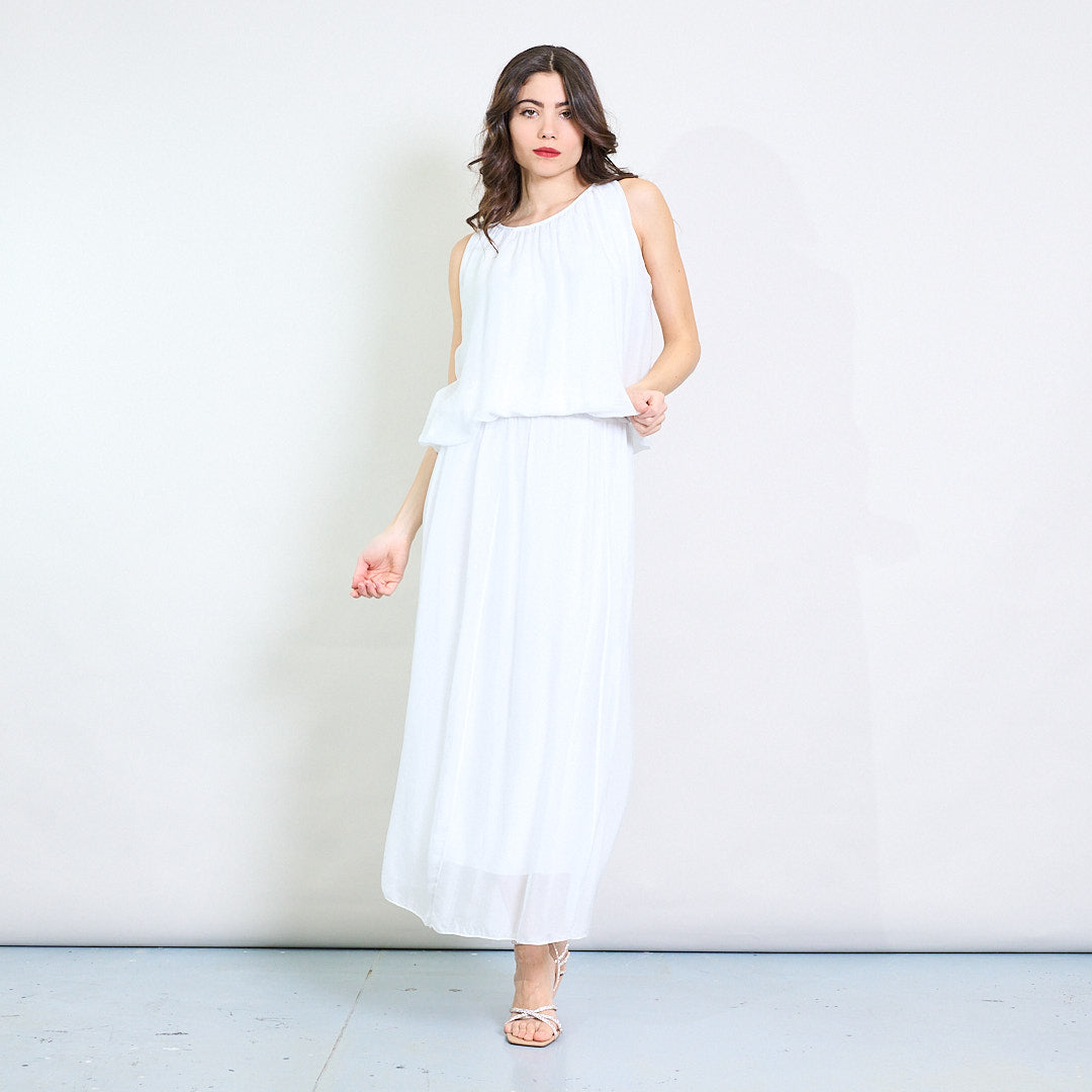 Flujo de gasa midi de cintura elástica fluida al por mayor