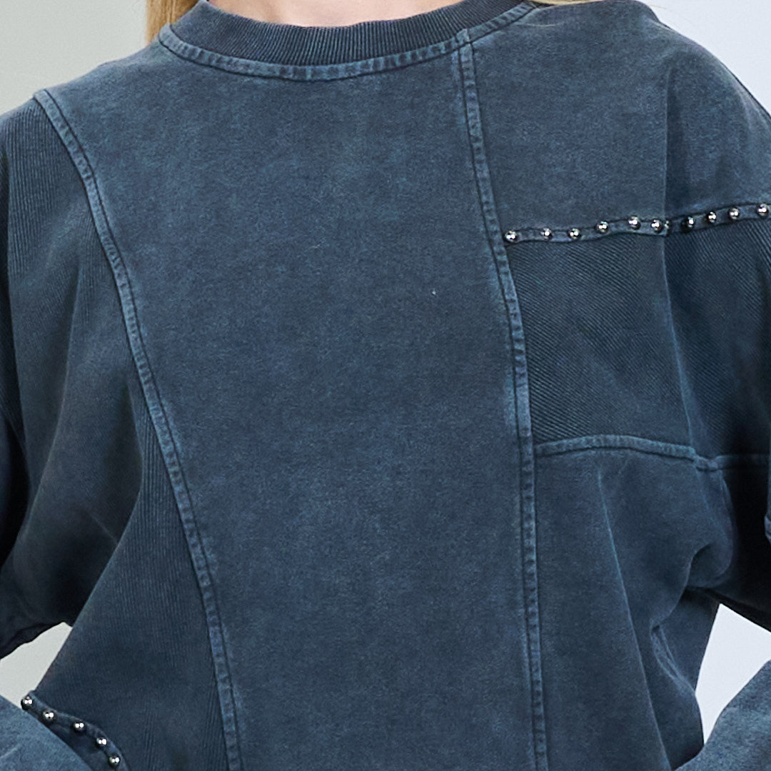 Sudadera con efecto de costura con tachuelas al por mayor