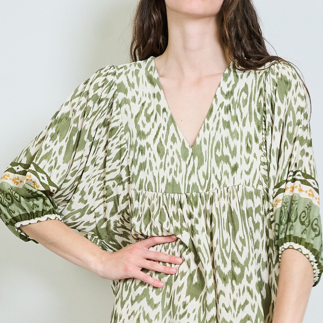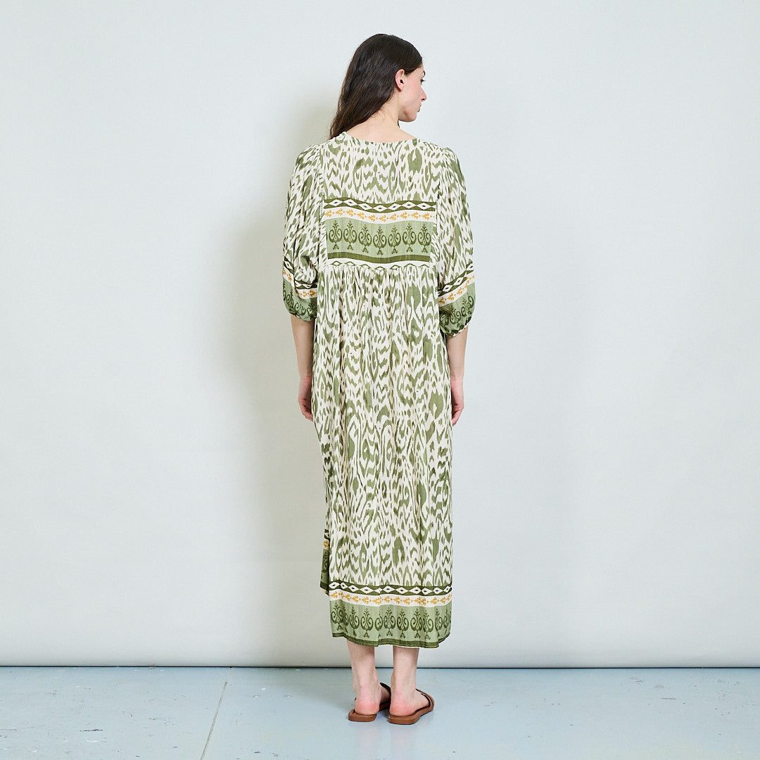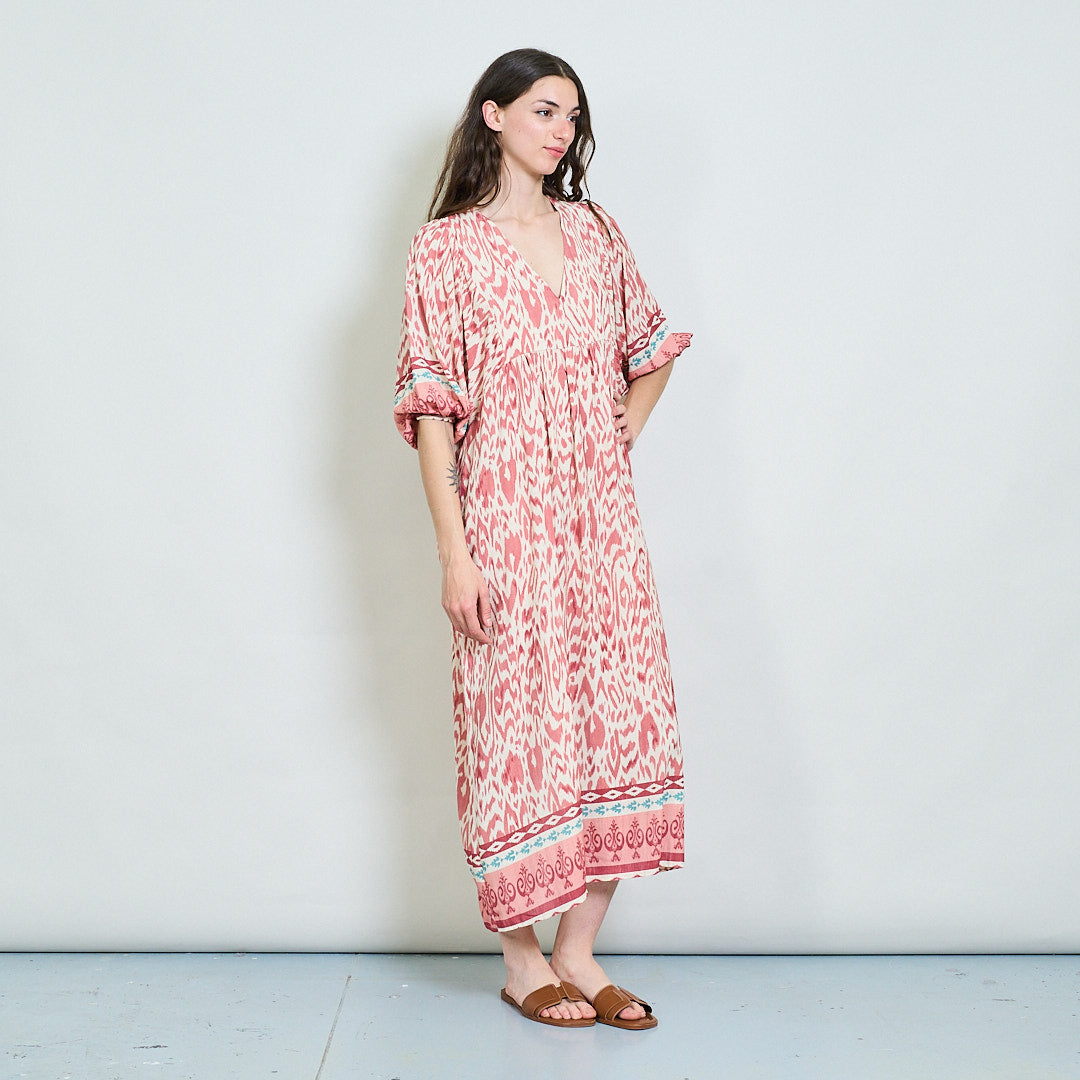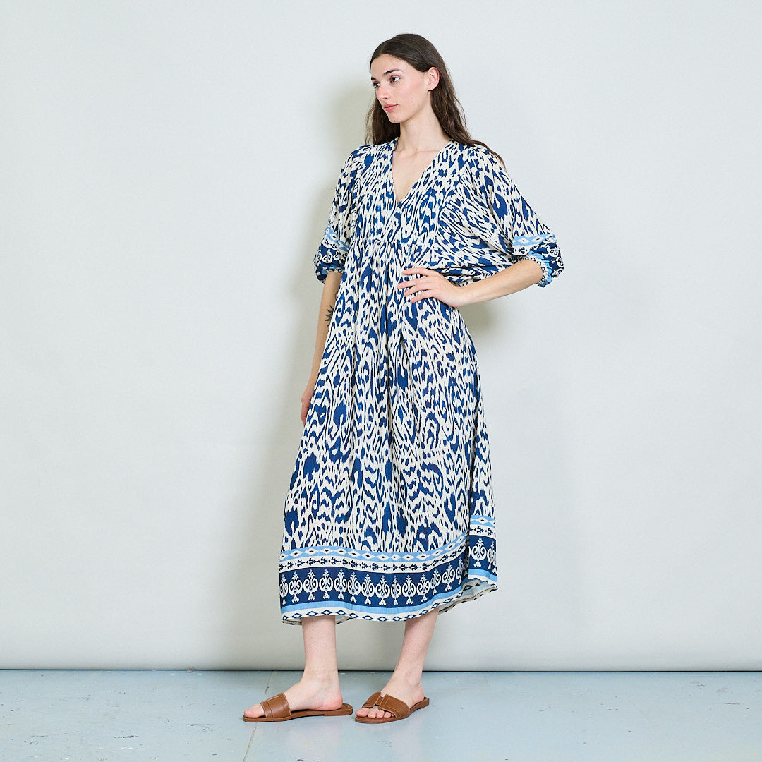 Vestido midi relajado relajado con cuello en V con estampado fronterizo Tribal Ikat al por mayor