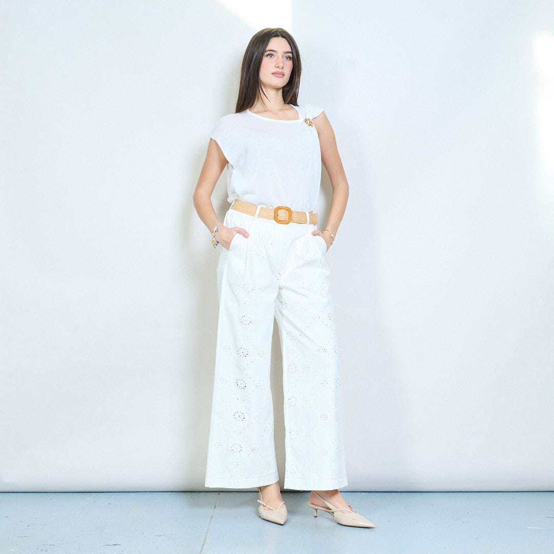 Pantalón recto con ojales bordados y cinturón tejido al por mayor