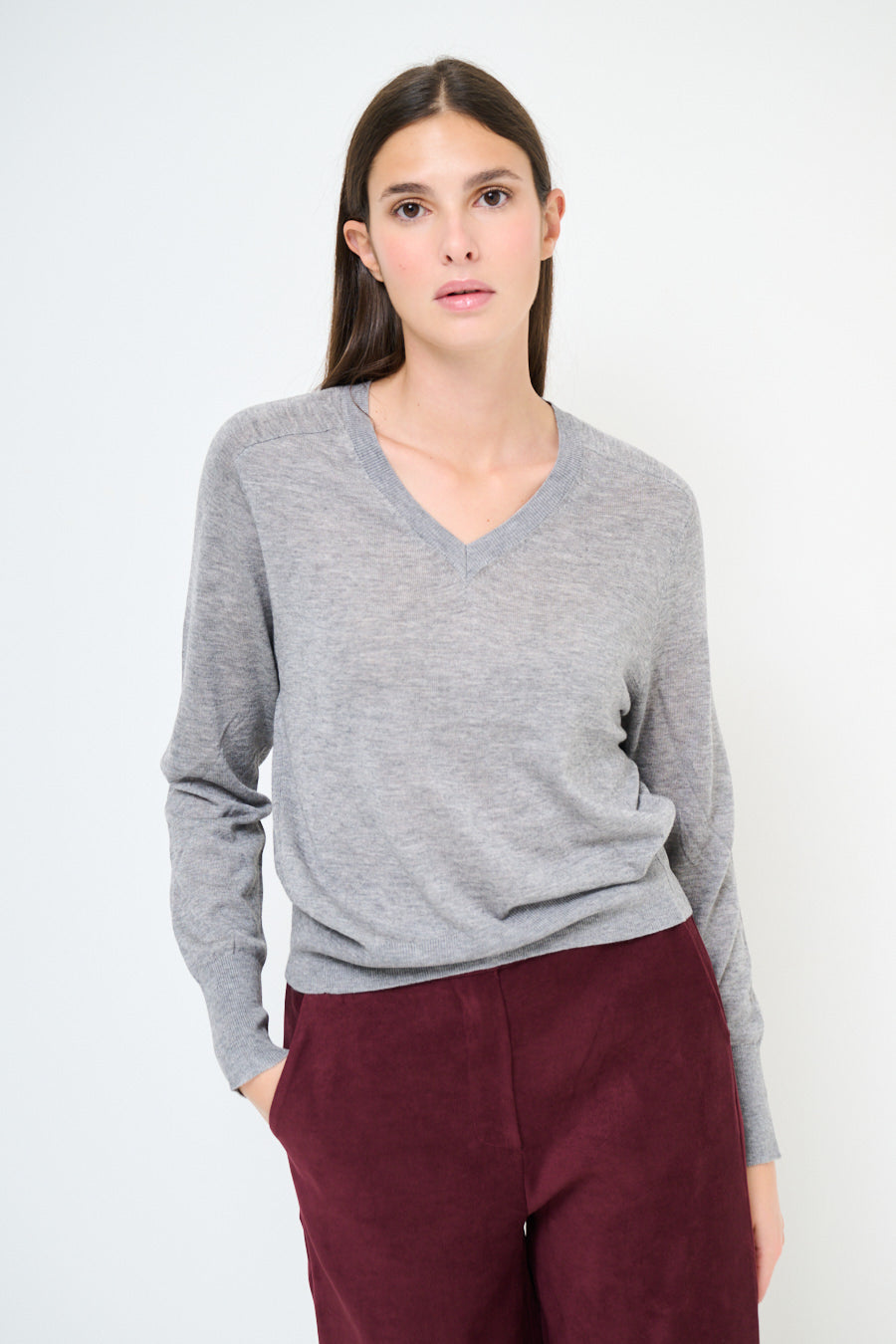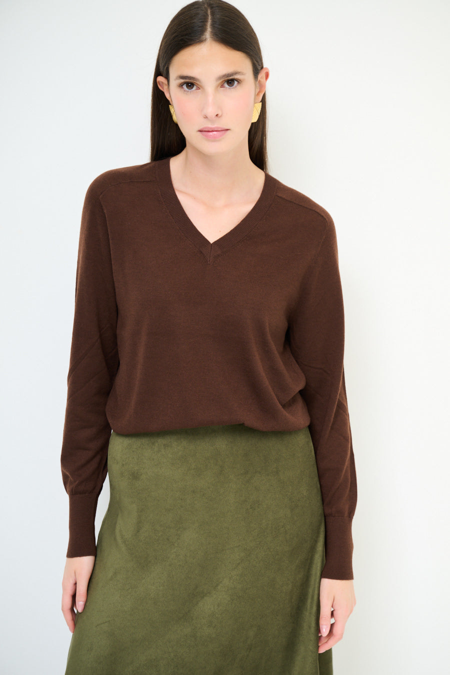 Suéter clásico de punto de manga larga con cuello en V al por mayor