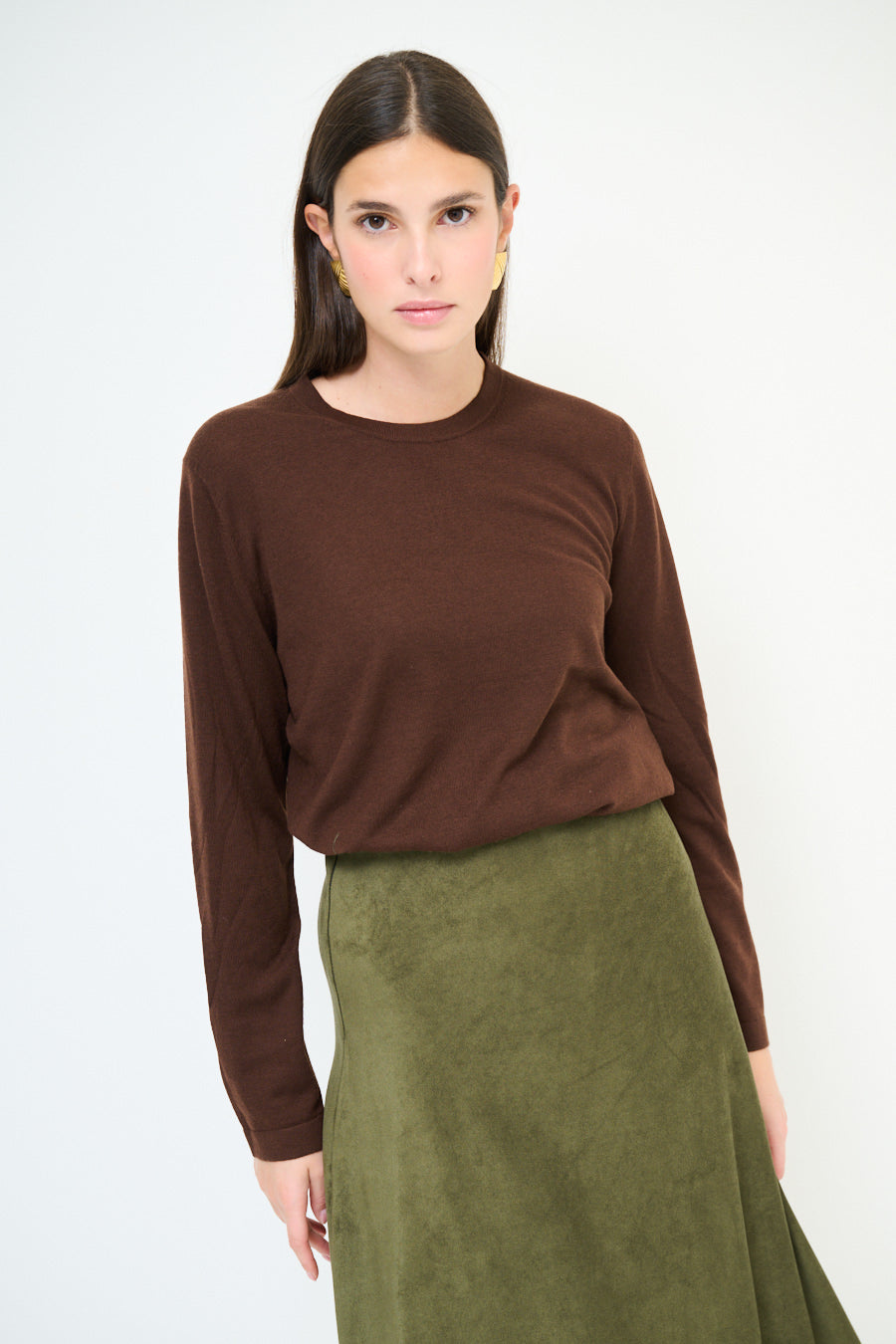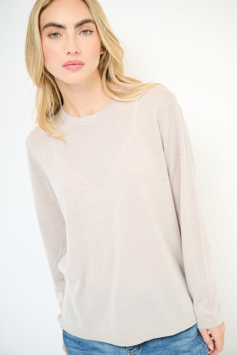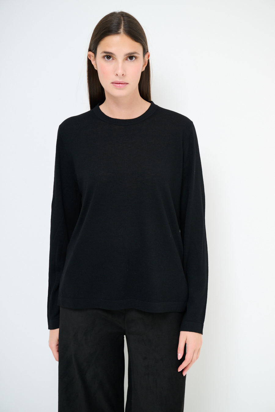 - Escote redondo que ofrece una apariencia limpia y versátil.