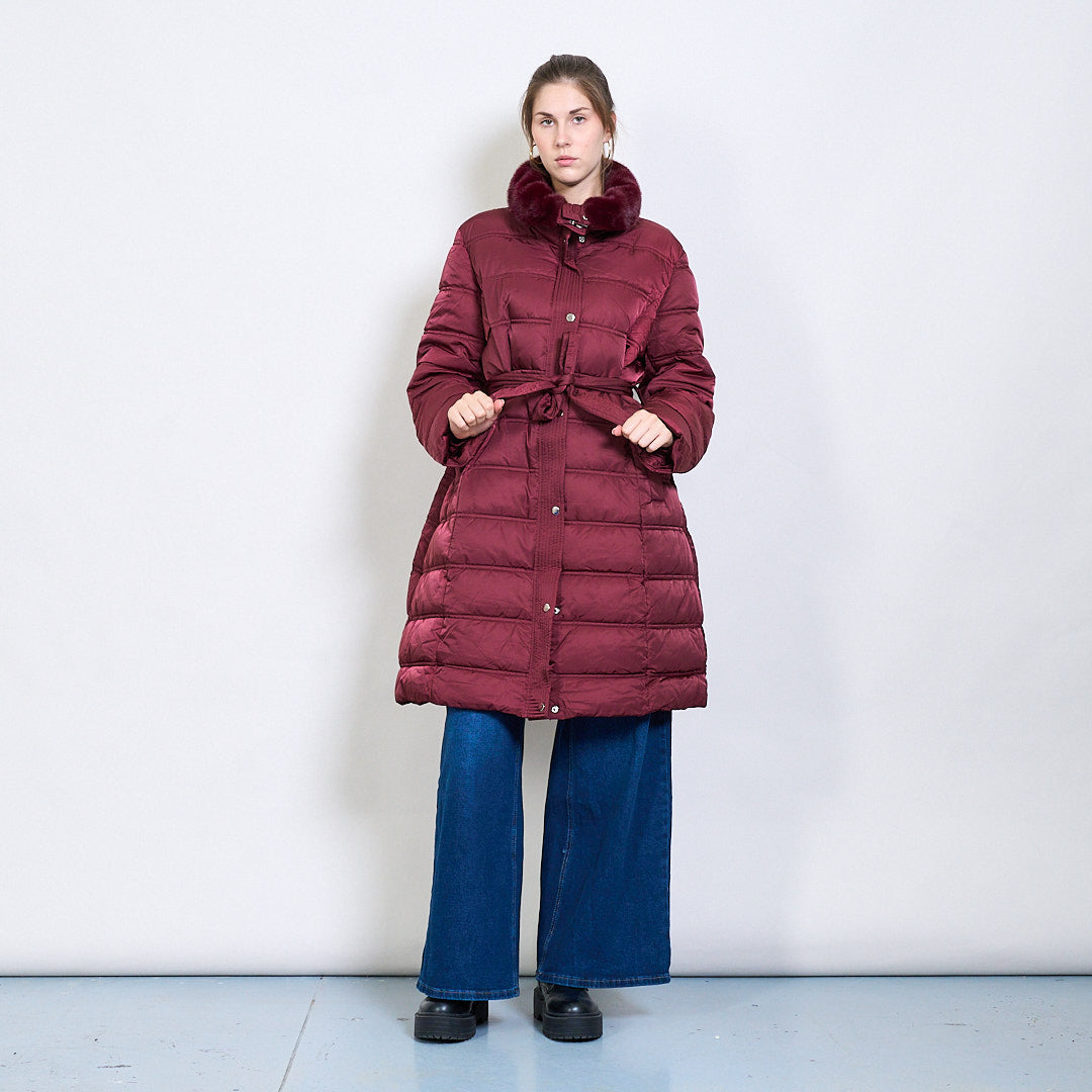 Chaqueta con cinturón acolchada de Longline con cuello de piel sintética al por mayor