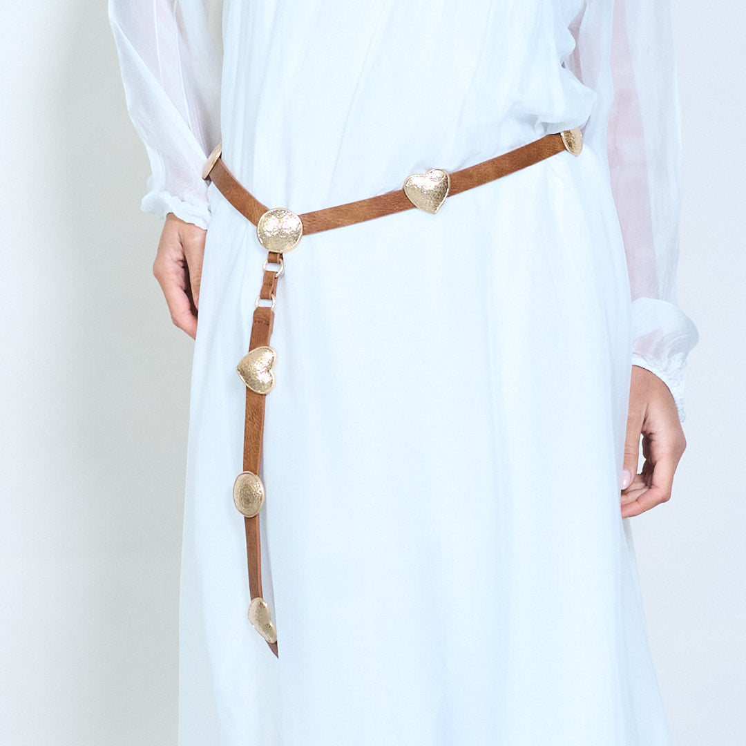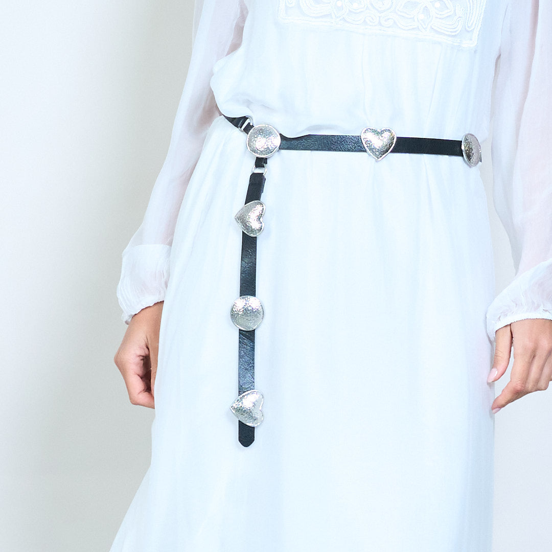 - Cinturón delgado diseñado con detalles de dijes con tachuelas espaciados uniformemente