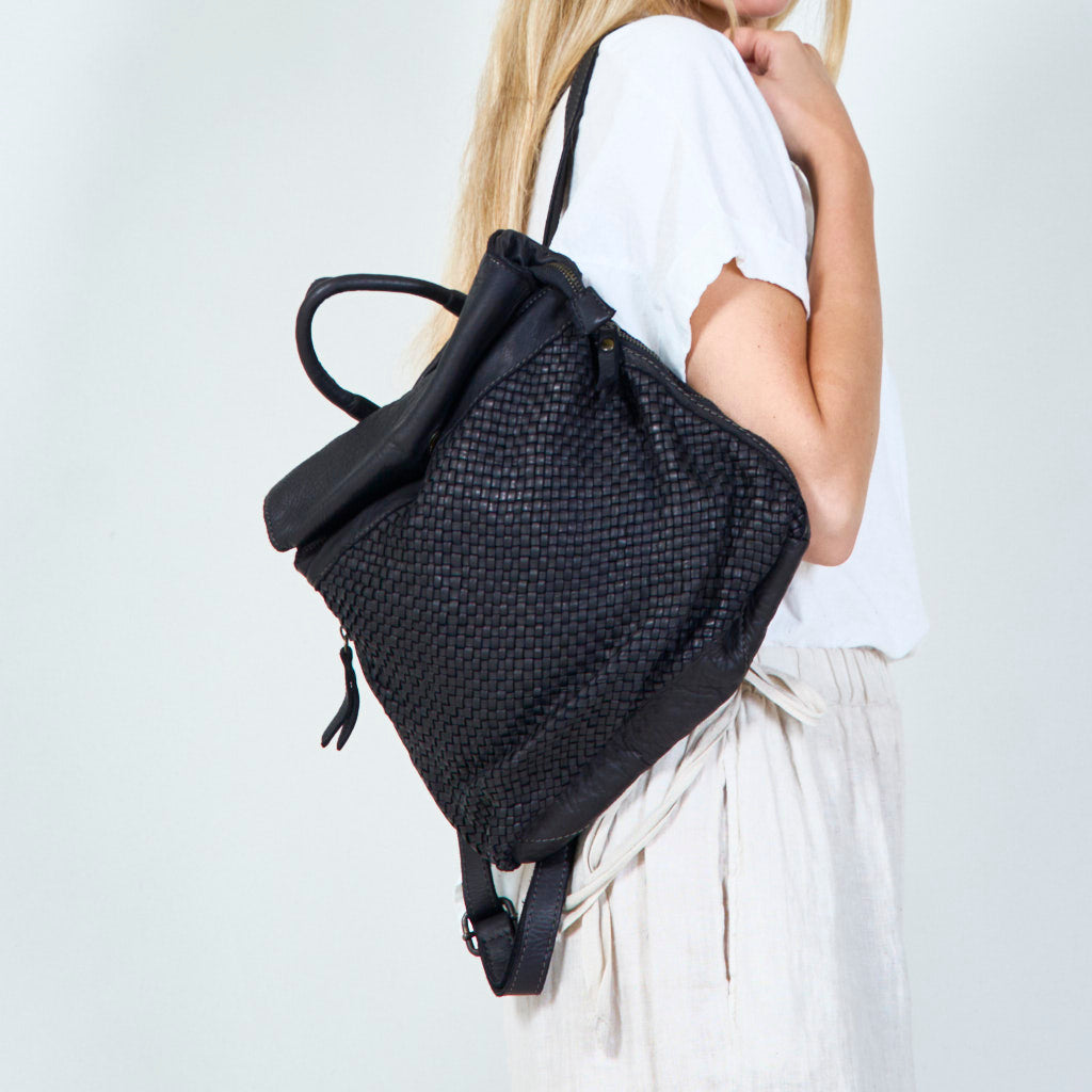 • Diseño de cuero elegante con fondo trenzado
