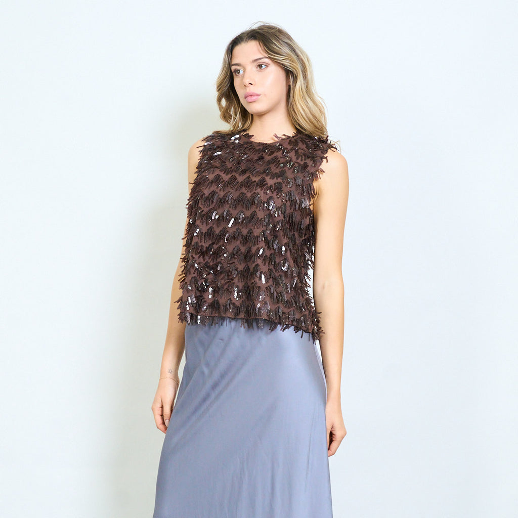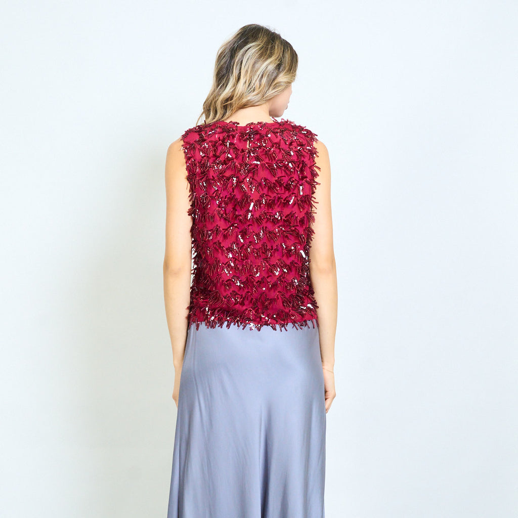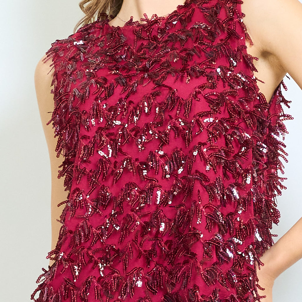 Blusa texturizada adornada con lentejuelas y flecos sin mangas al por mayor