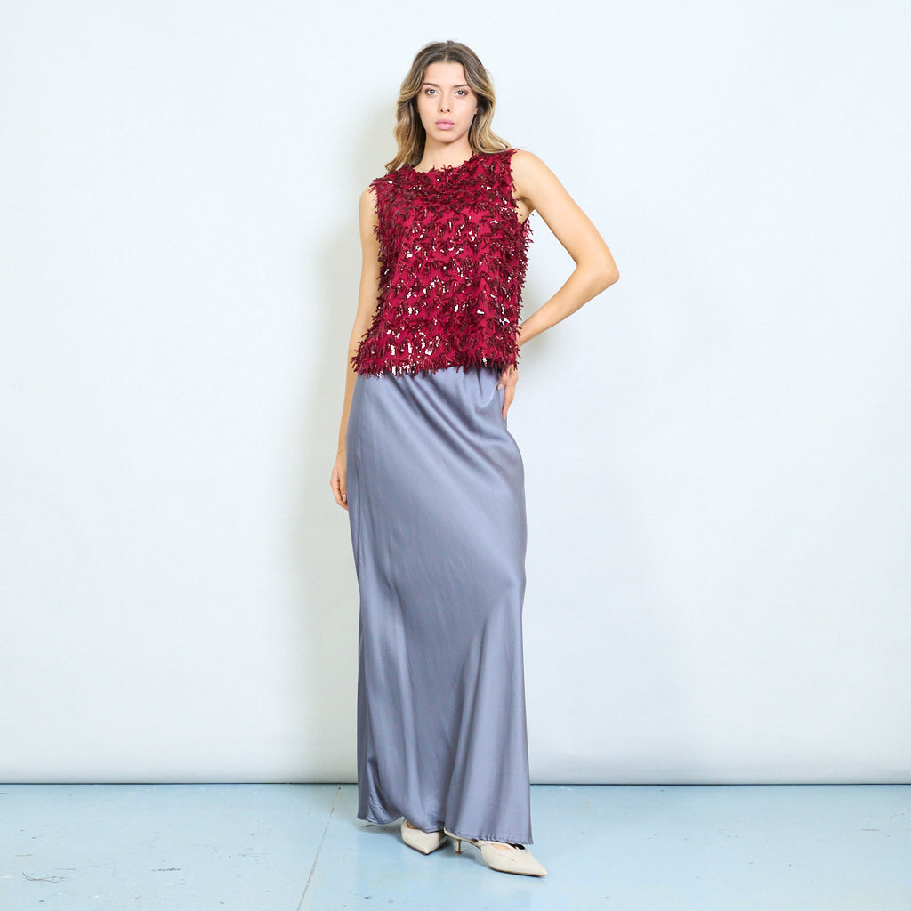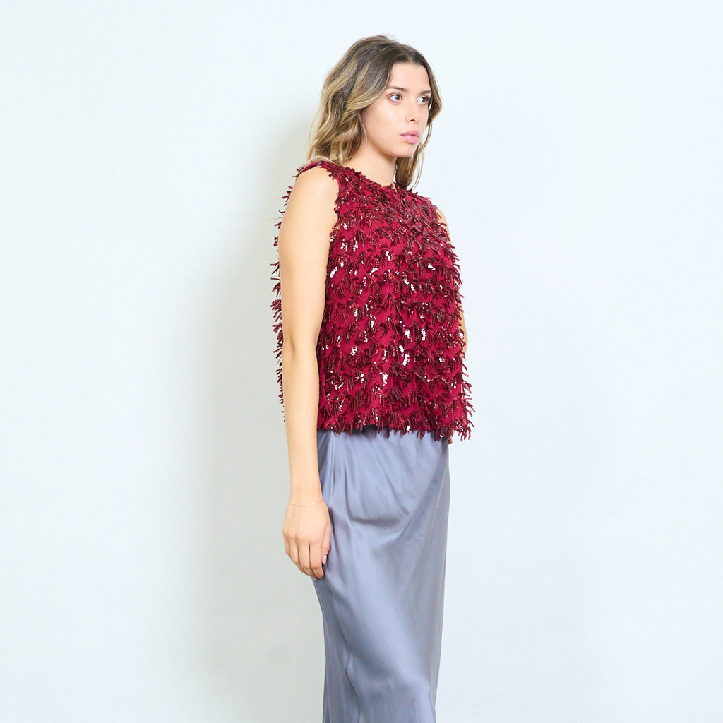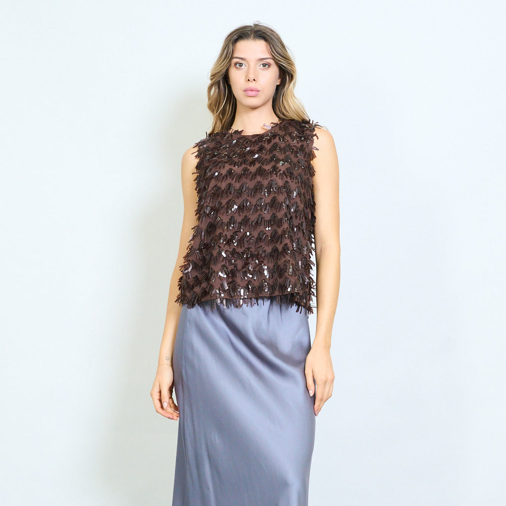 Blusa texturizada adornada con lentejuelas y flecos sin mangas al por mayor