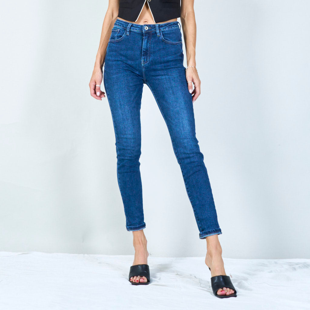 Klassinen korkea vyötäröinen laiha farkut valssatulla helmassa tukkumyynnissä