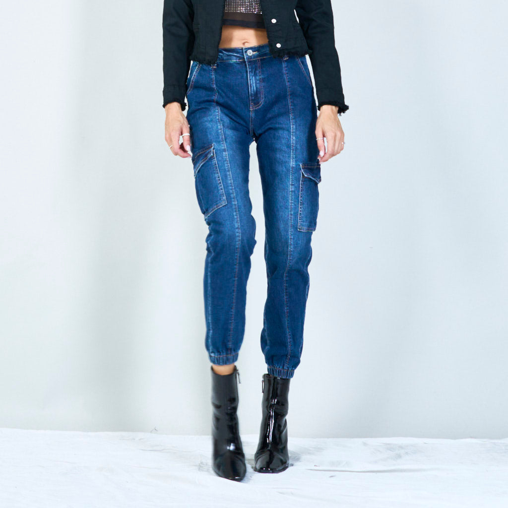 Muodikkaat korkea vyötäröt rahti-farkut joustavilla hihansuilla tukkumyynti