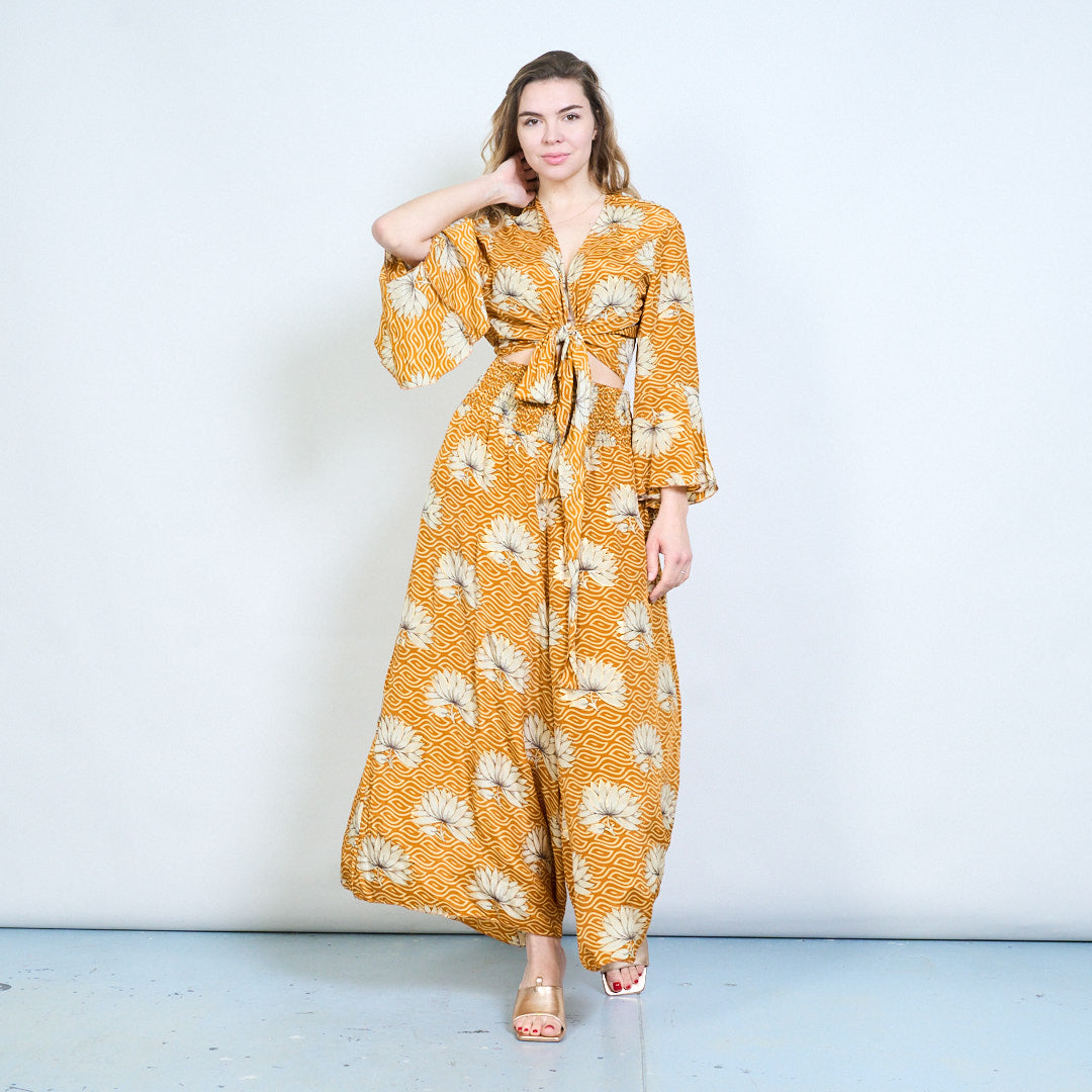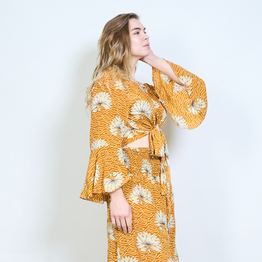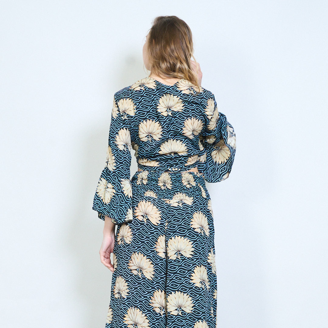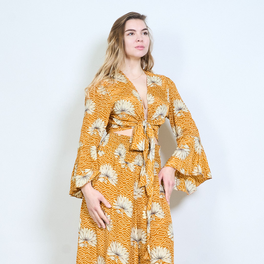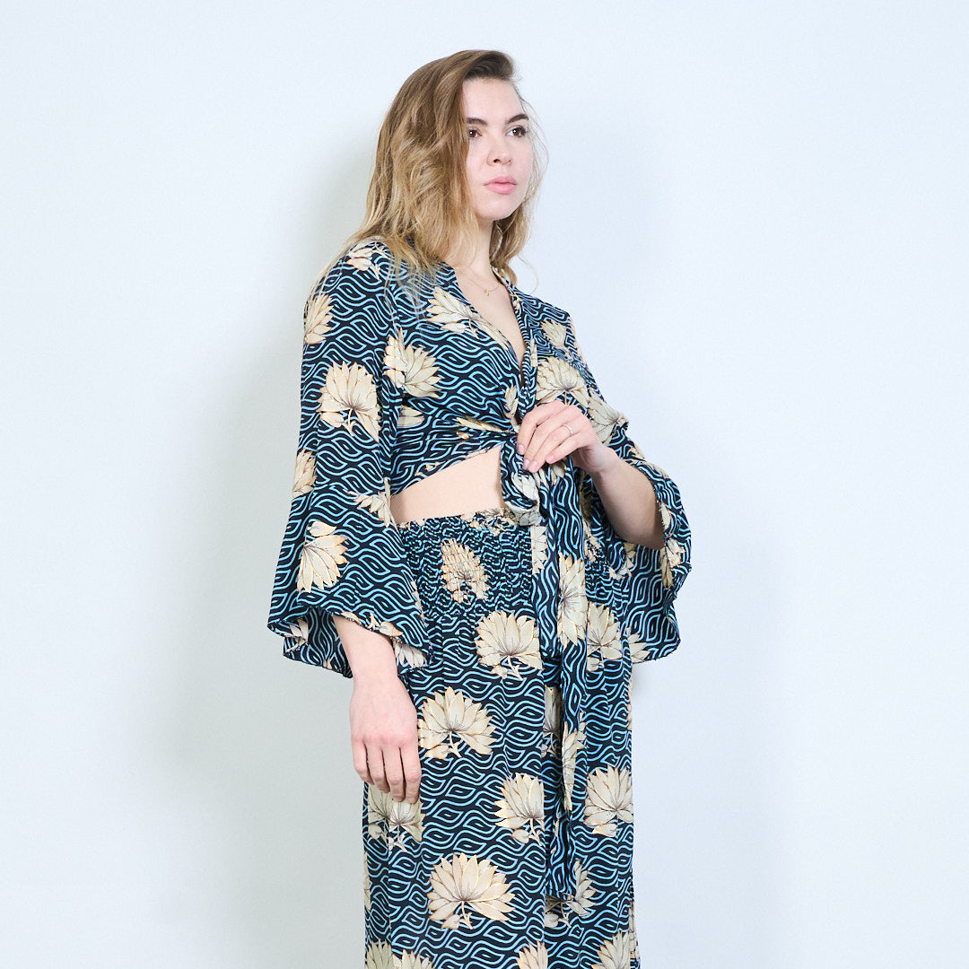 Kukkapainettu co ord setti aaltokuvioitu tukkumyynti