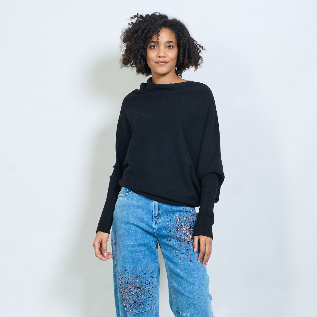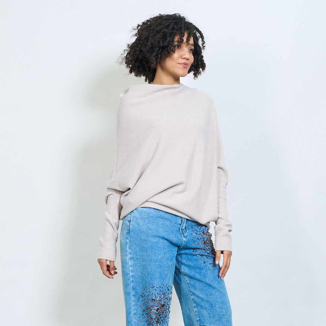 Epäsymmetrinen yksioulo neulottu poncho-villapaita tukkumyynti