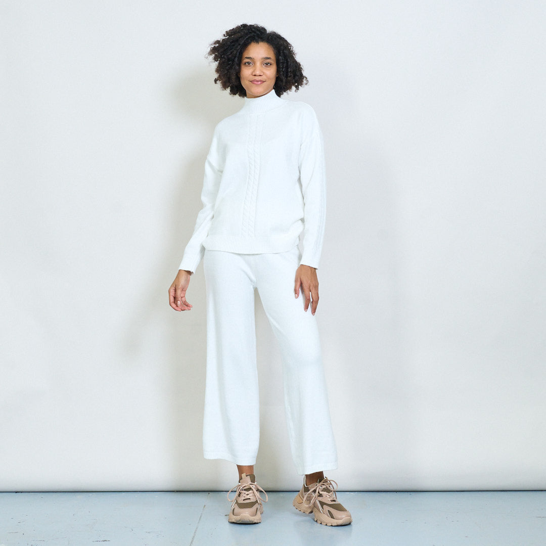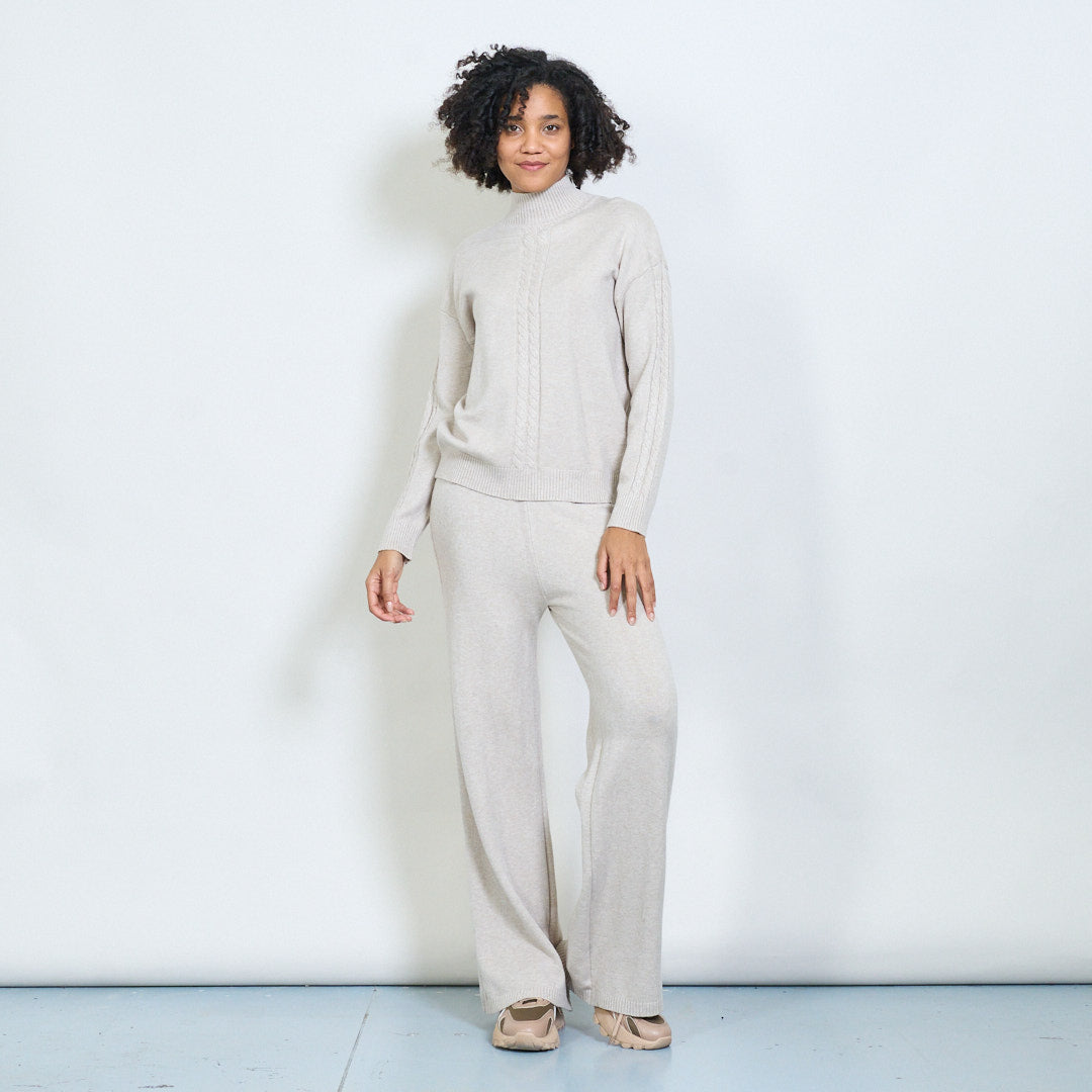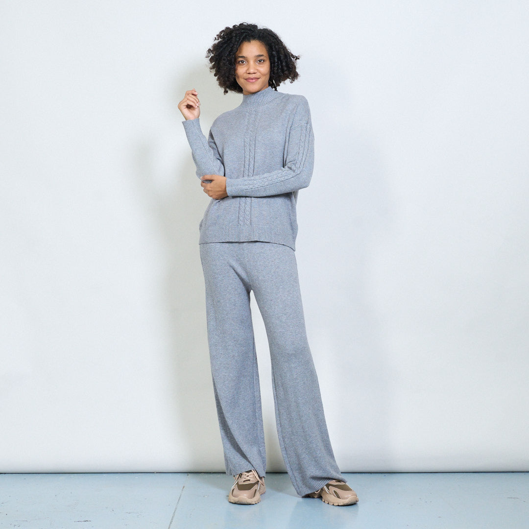 Kaapeli-neulottu korkea-kaula-villapaita ja housut asettavat tukkumyynnin