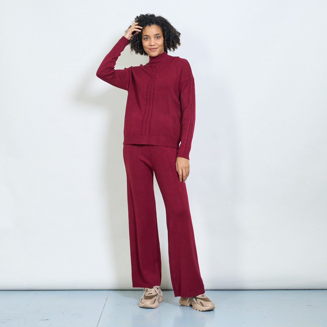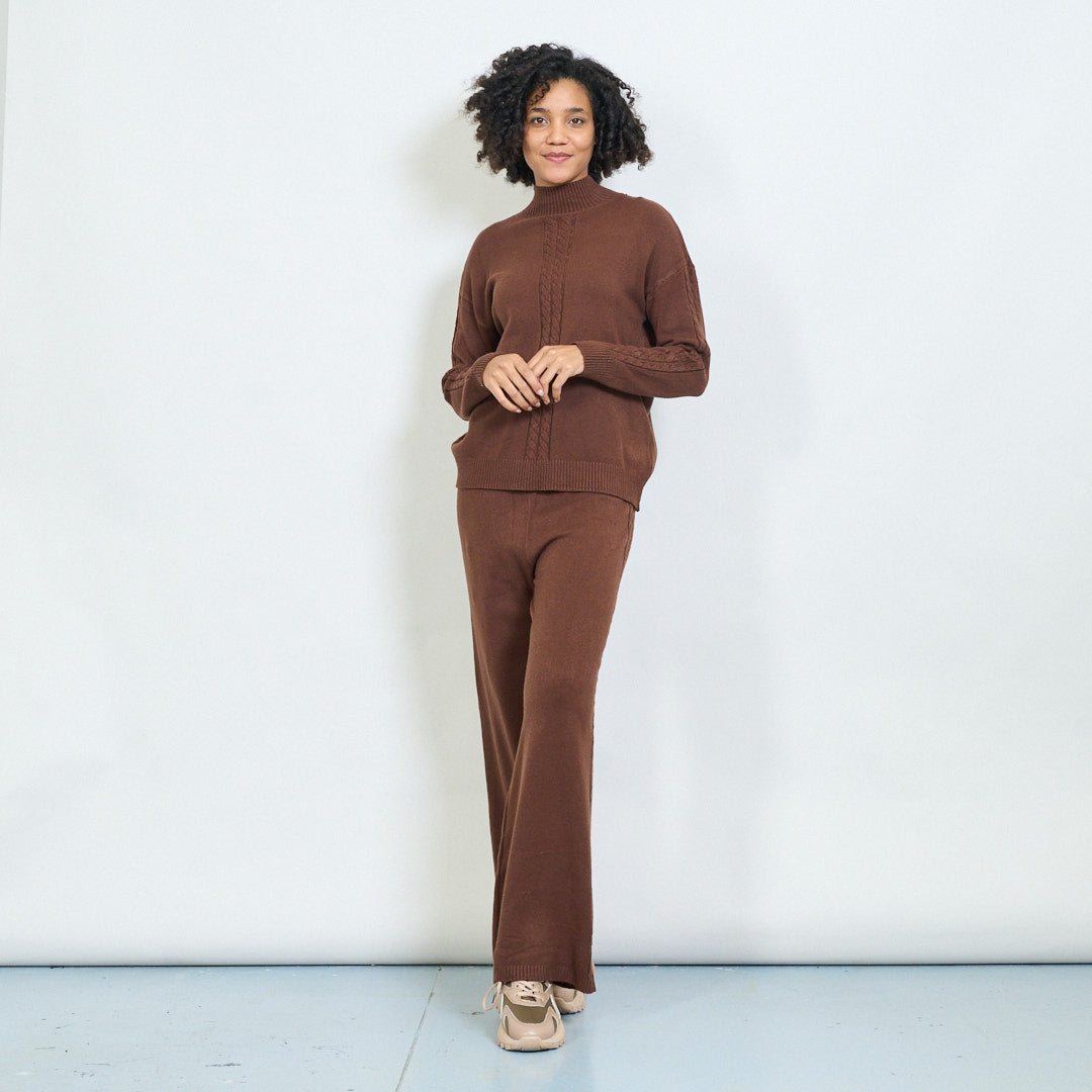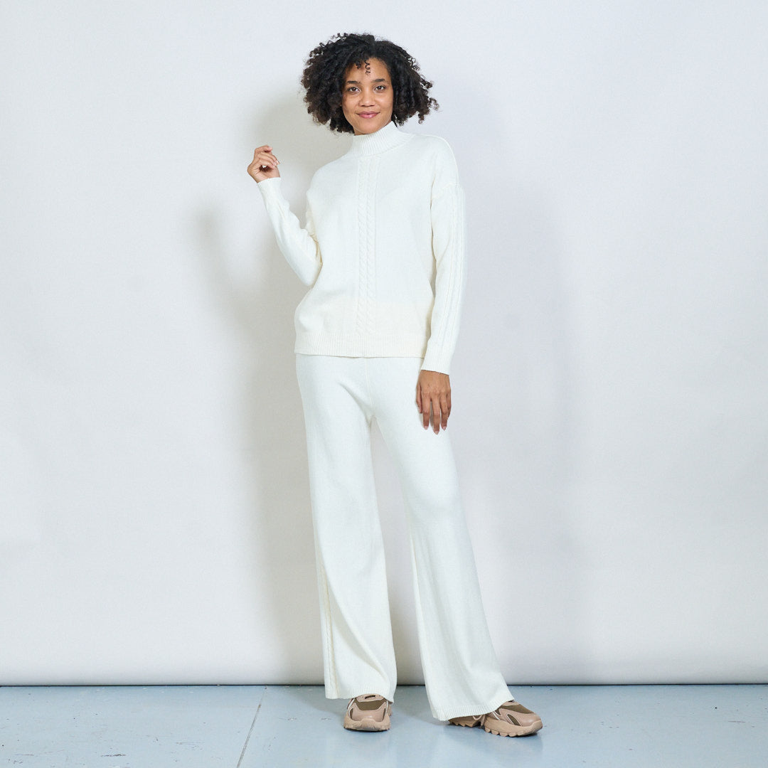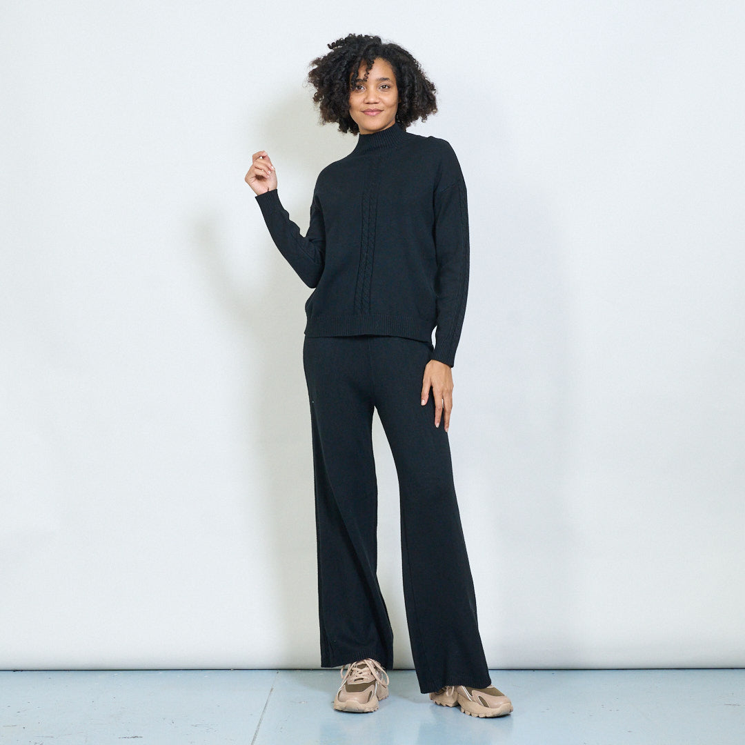 Kaapeli-neulottu korkea-kaula-villapaita ja housut asettavat tukkumyynnin