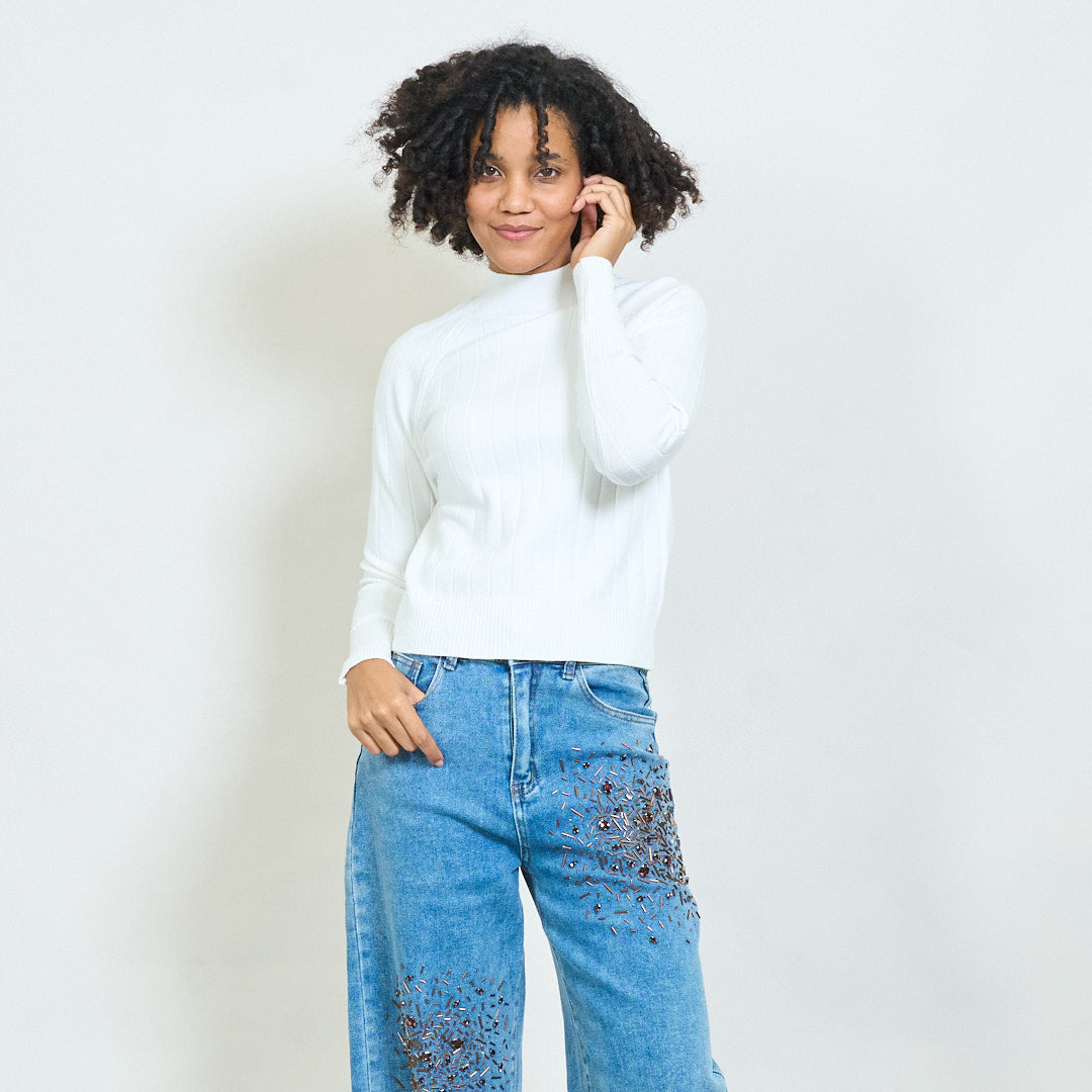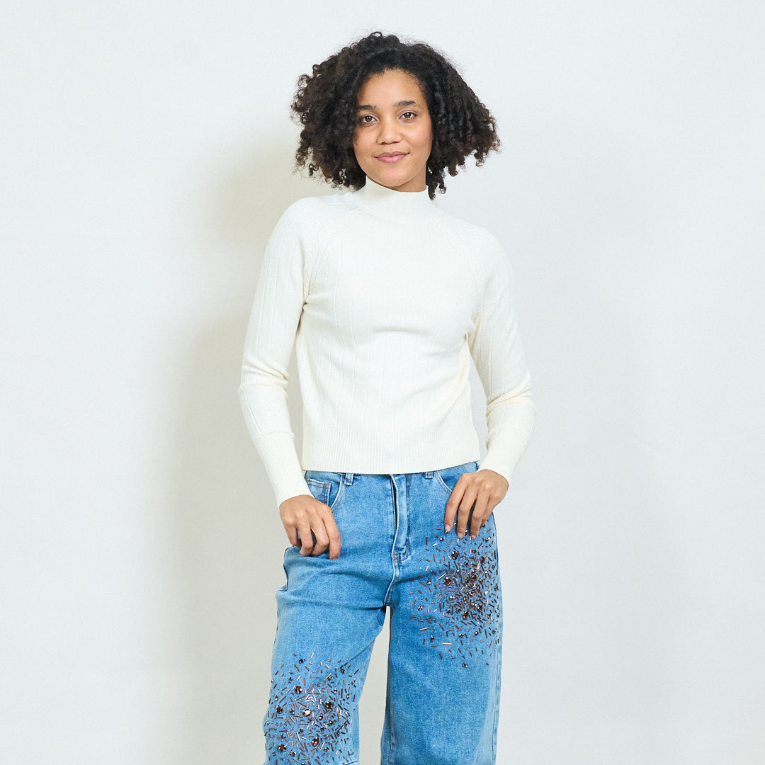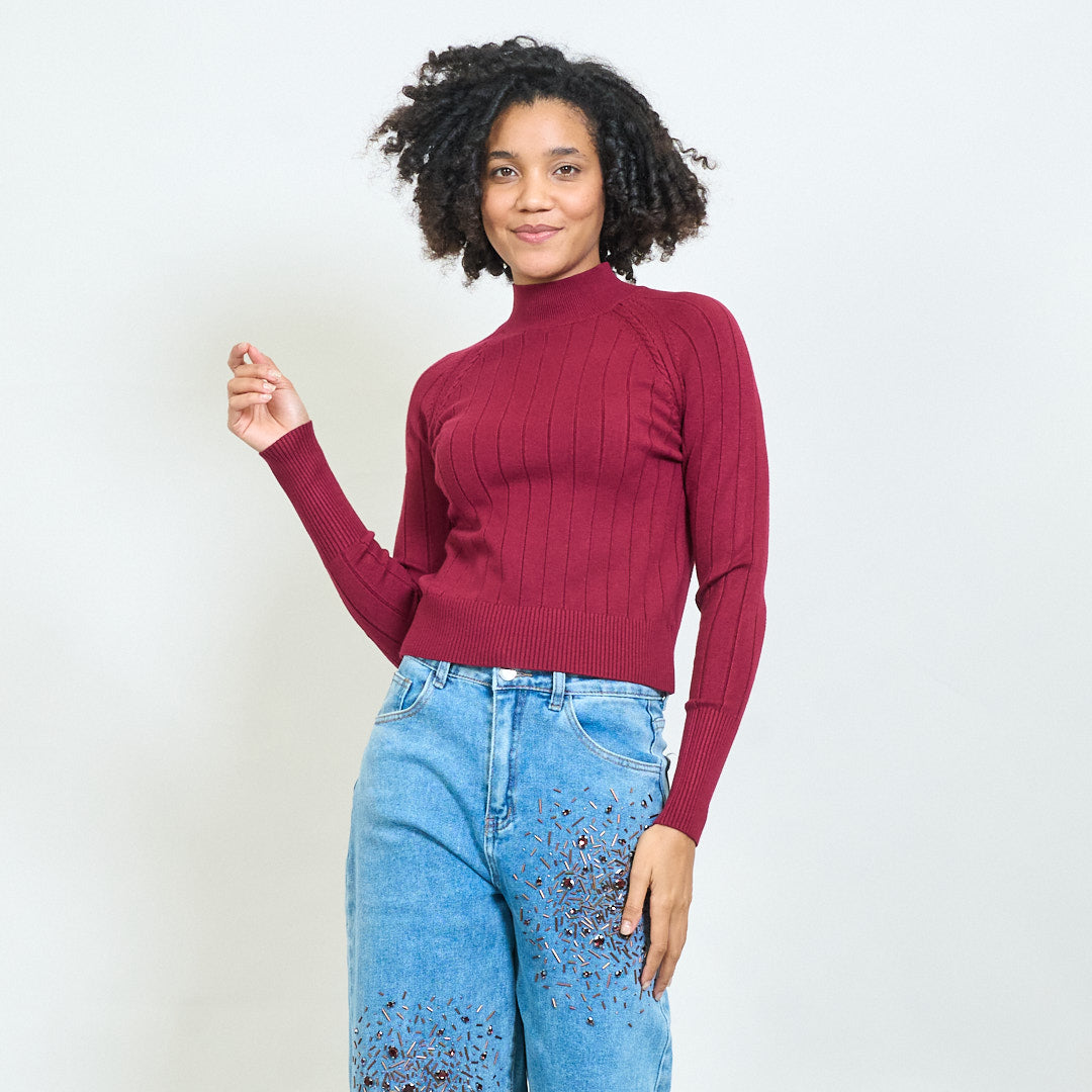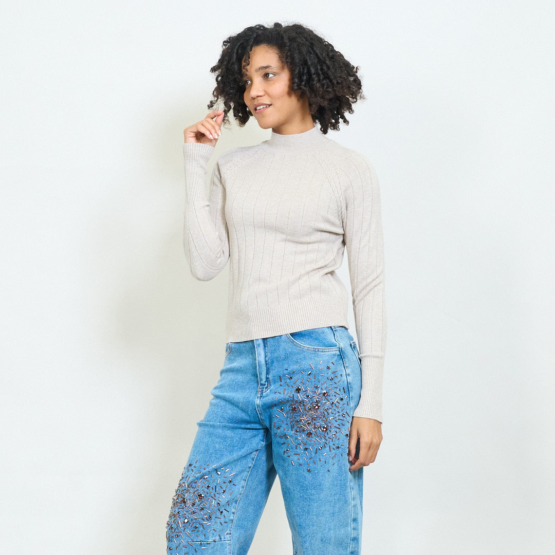 - Unutettu neulottu muotoilu hienovaraisten pystysuuntaisten viivojen kanssa