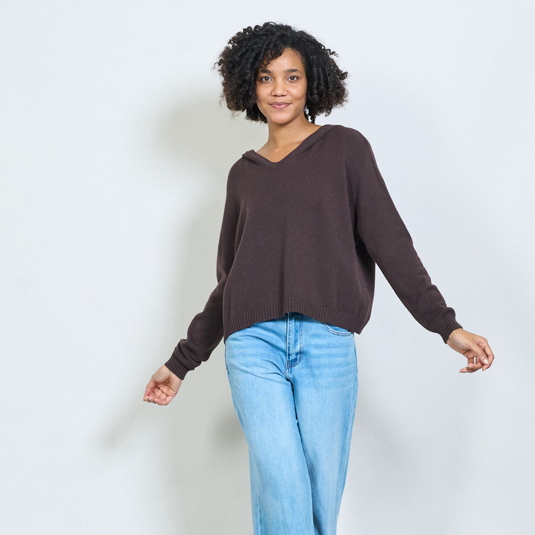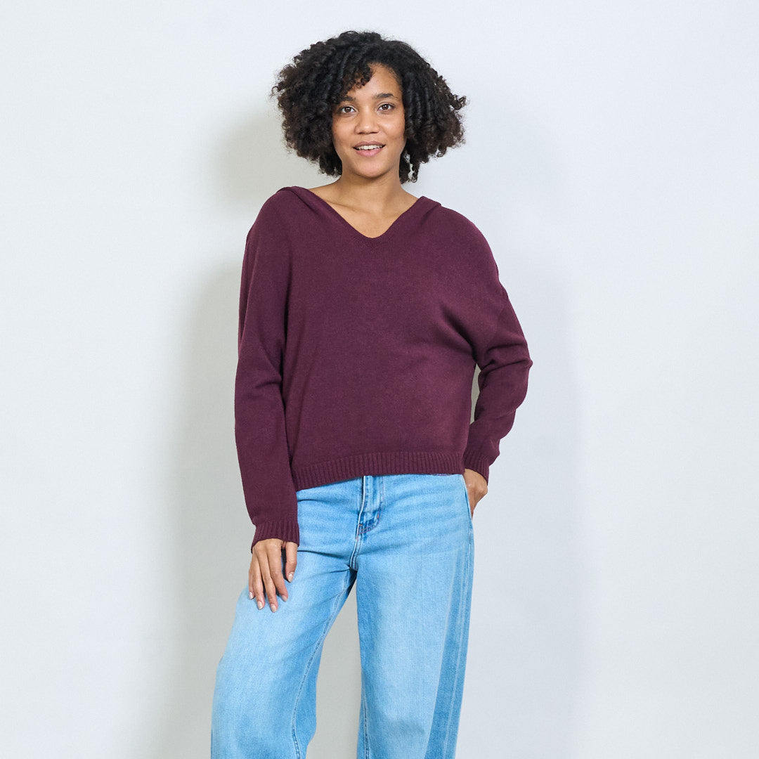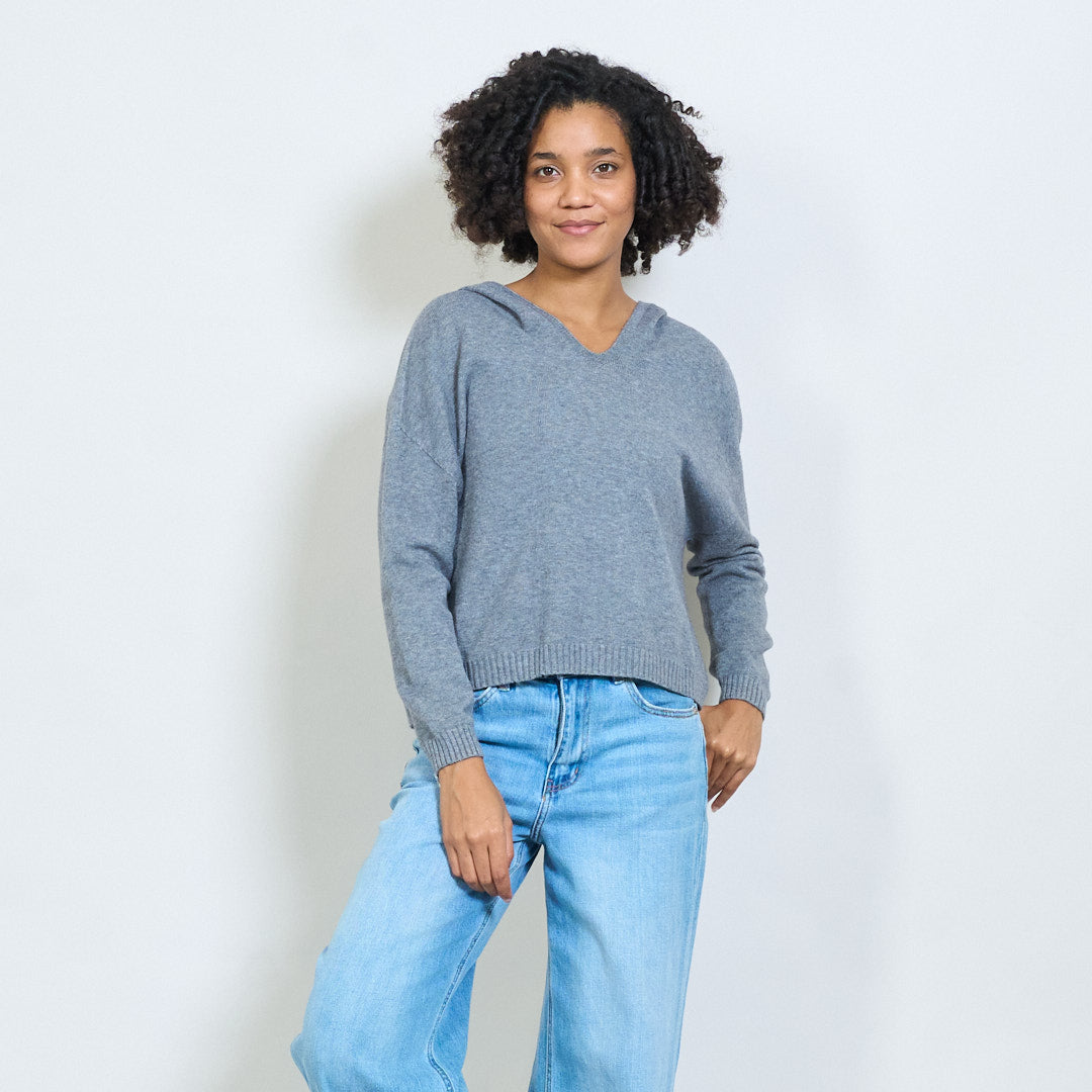 V-kaula-aukon hupullinen neulottu villapaita tukkumyynti