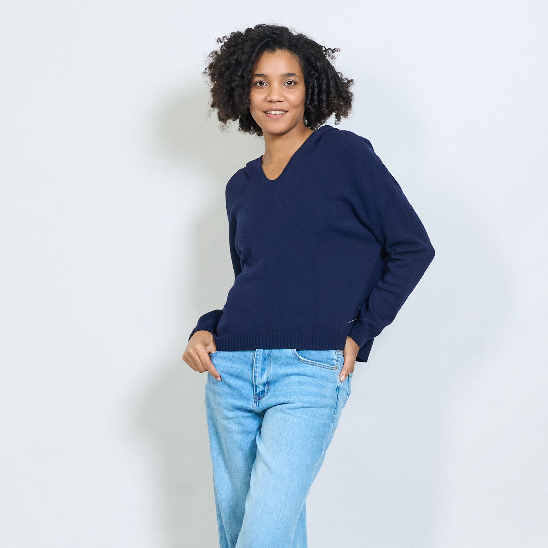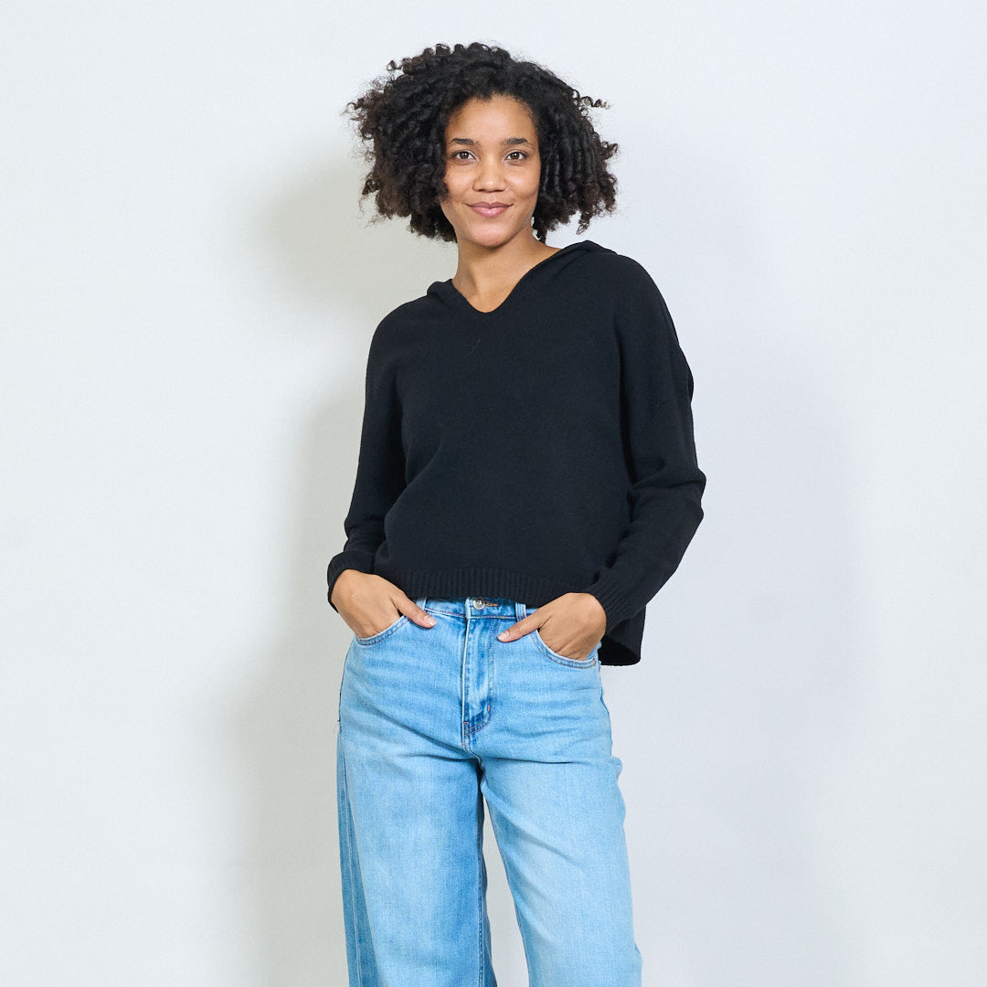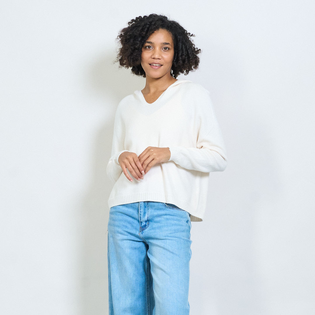 V-kaula-aukon hupullinen neulottu villapaita tukkumyynti