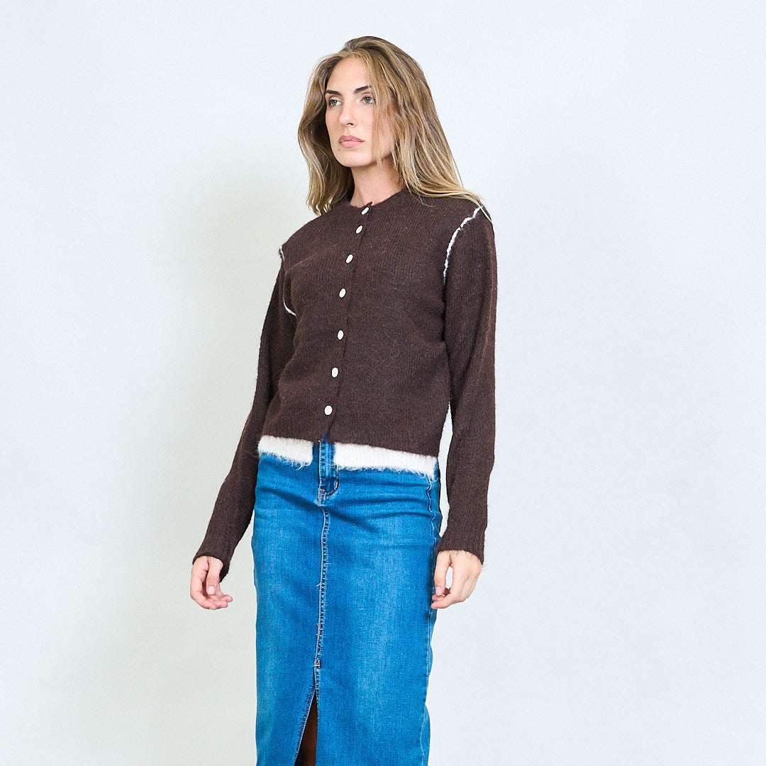 Pehmeä harjattu neulottu neuletakki kontrastin leikkauksella ja pudotettu hartiat tukkumyynti