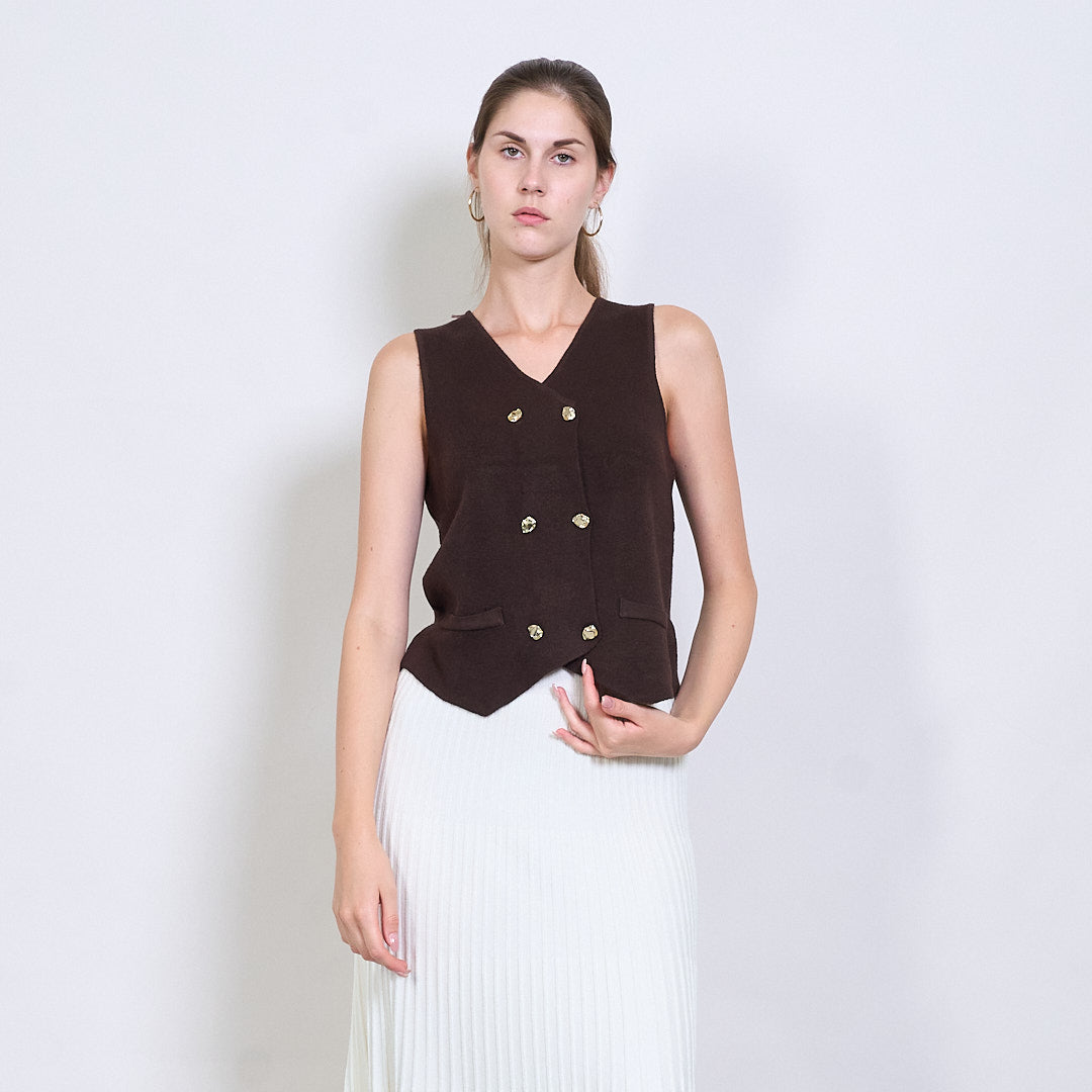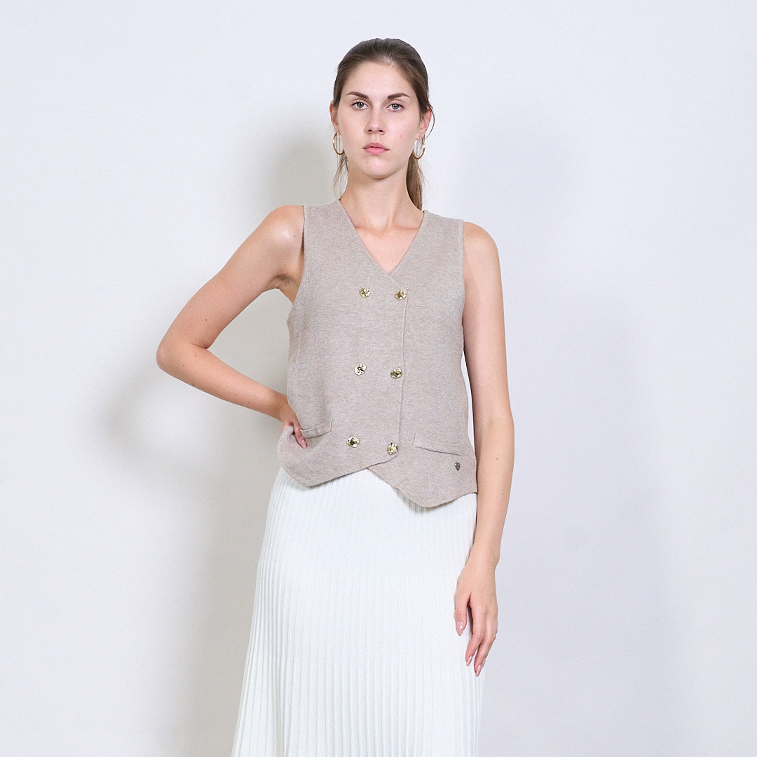 Kaksirivinen neulottu liivi, jossa kultapainikkeet ja metalli sydämen tunniste tukkumyynti