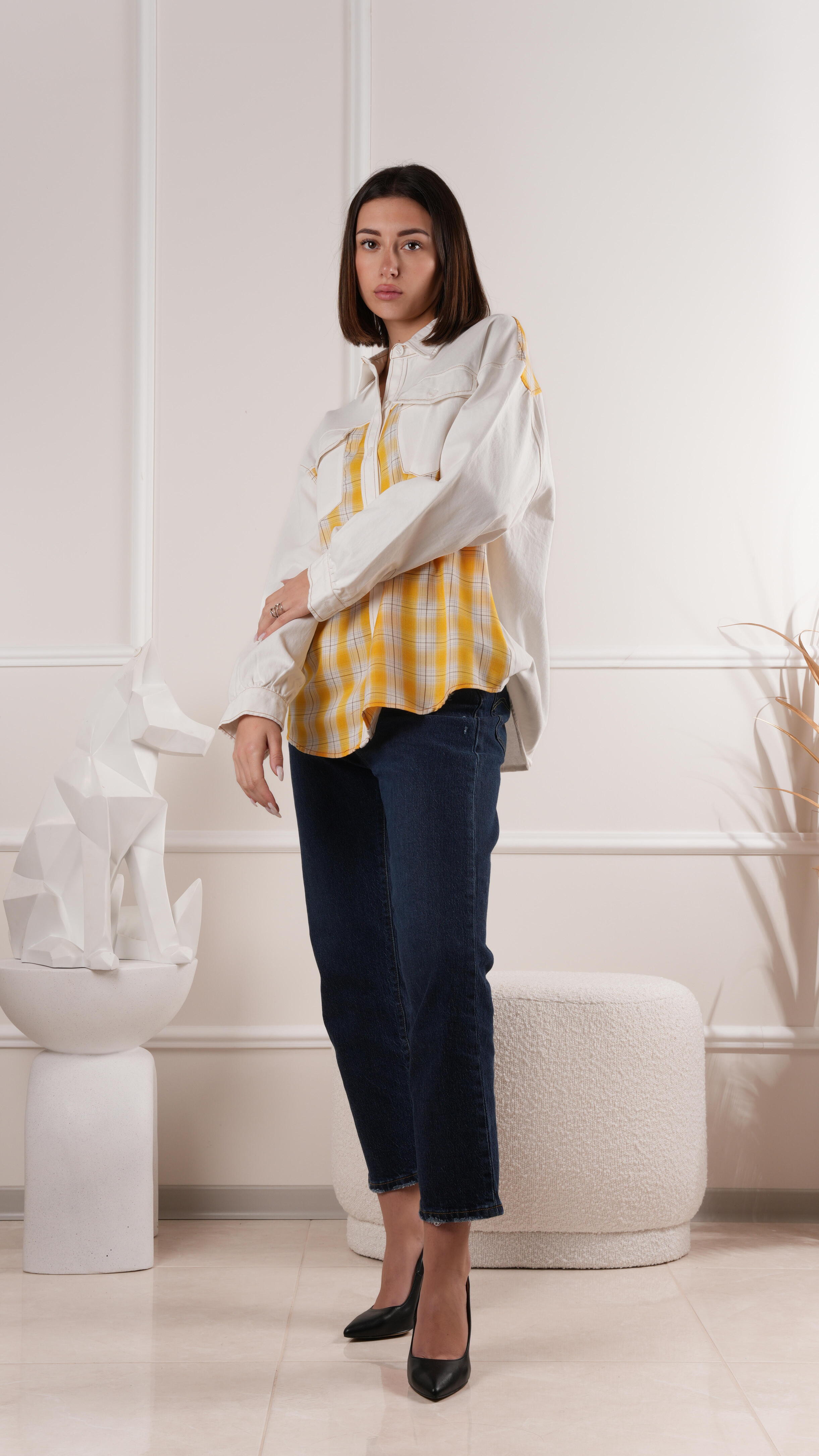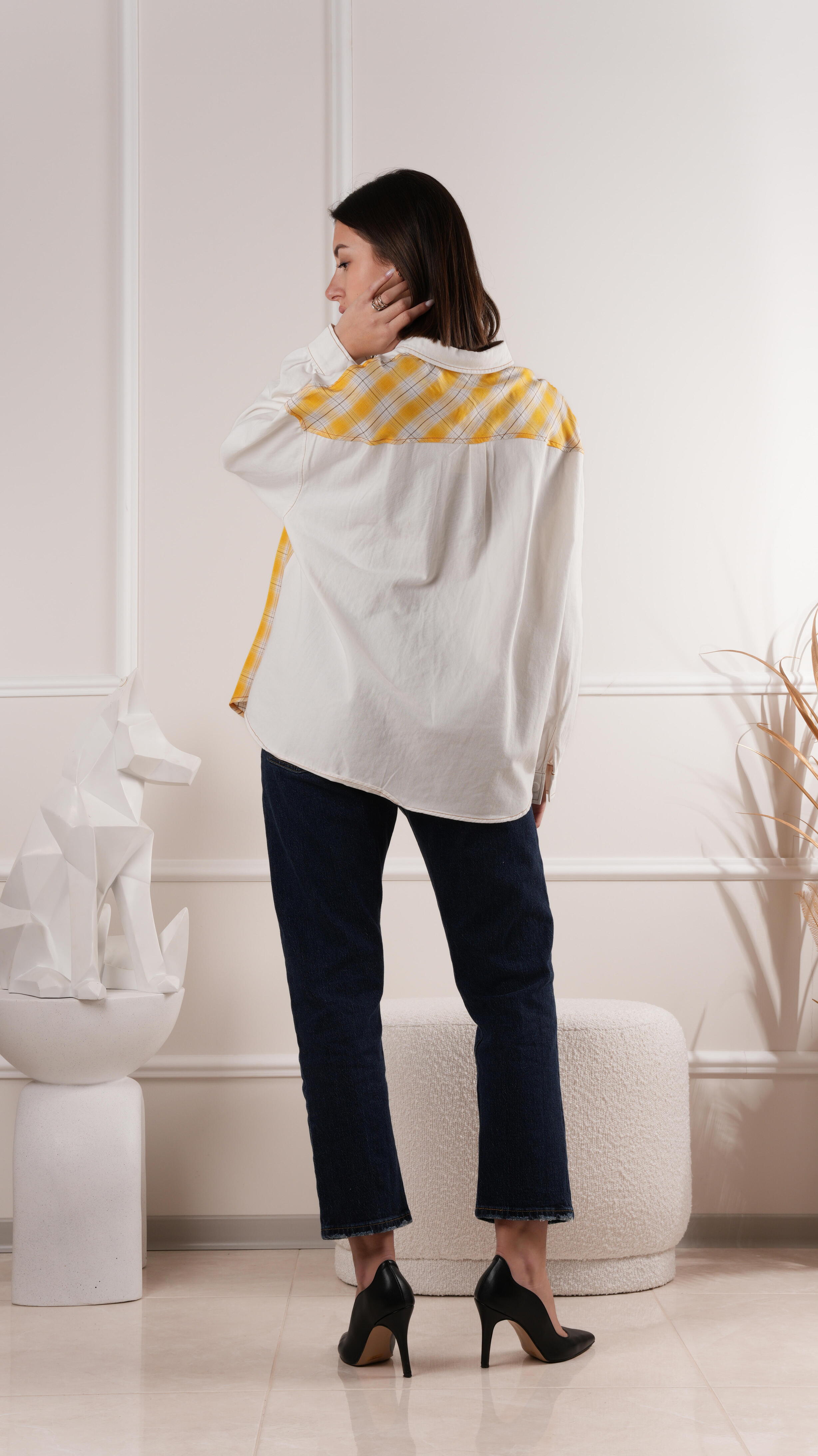 Napin alas oleva ruudullinen paita kontrasti-ike-tukkumyynnin kanssa