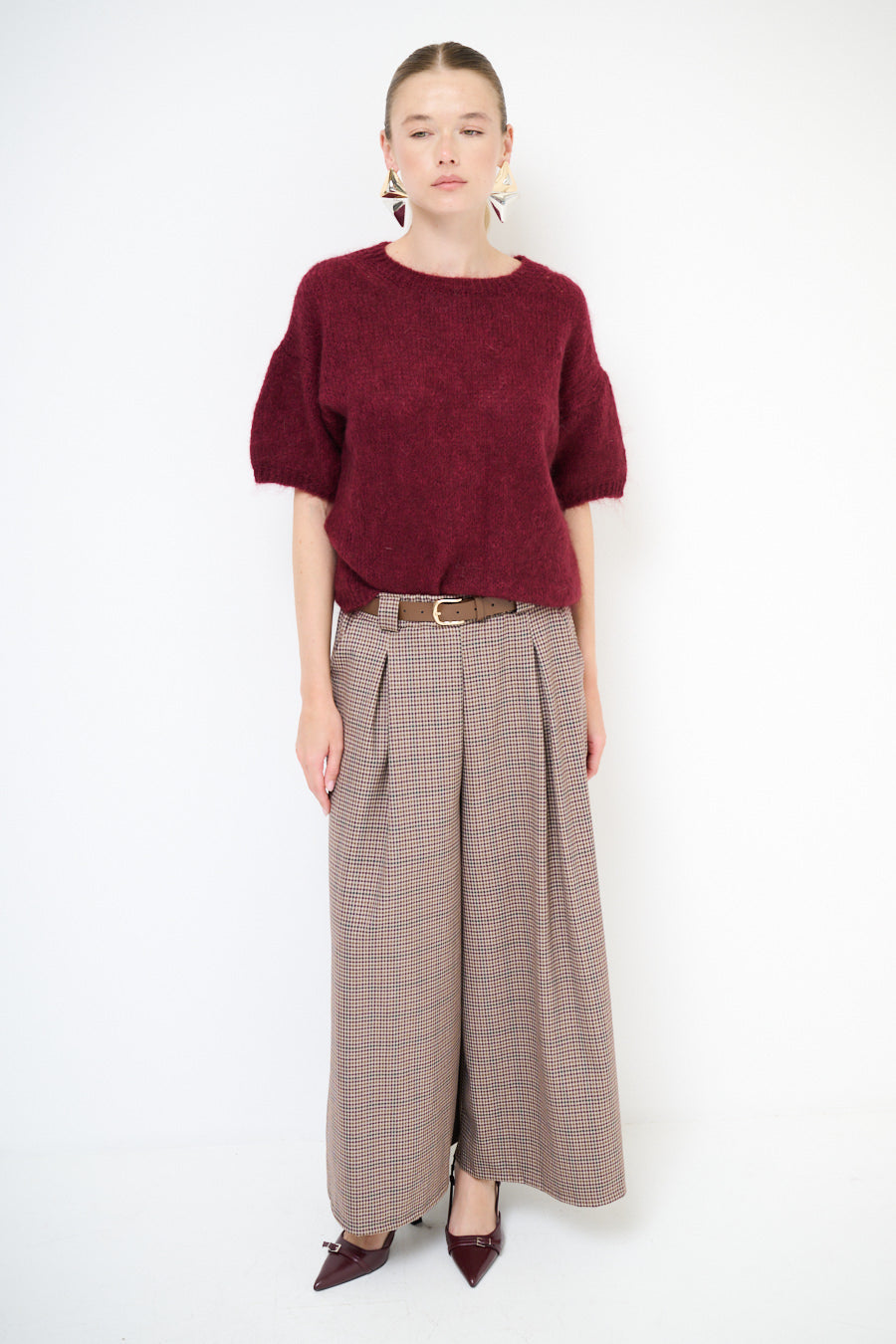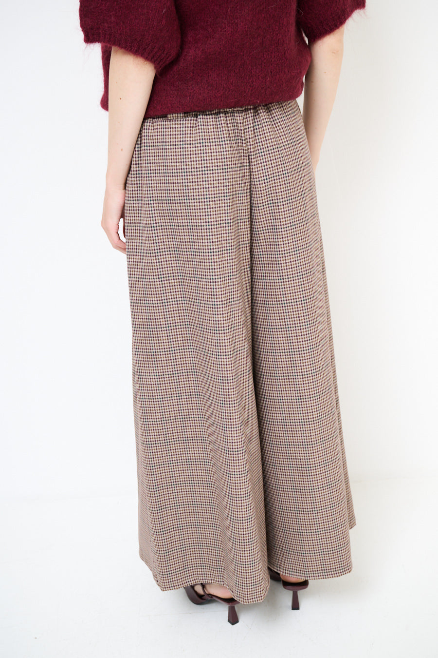Klassinen Houndstooth -leveä jalka laskostettu housu tukkumyynti