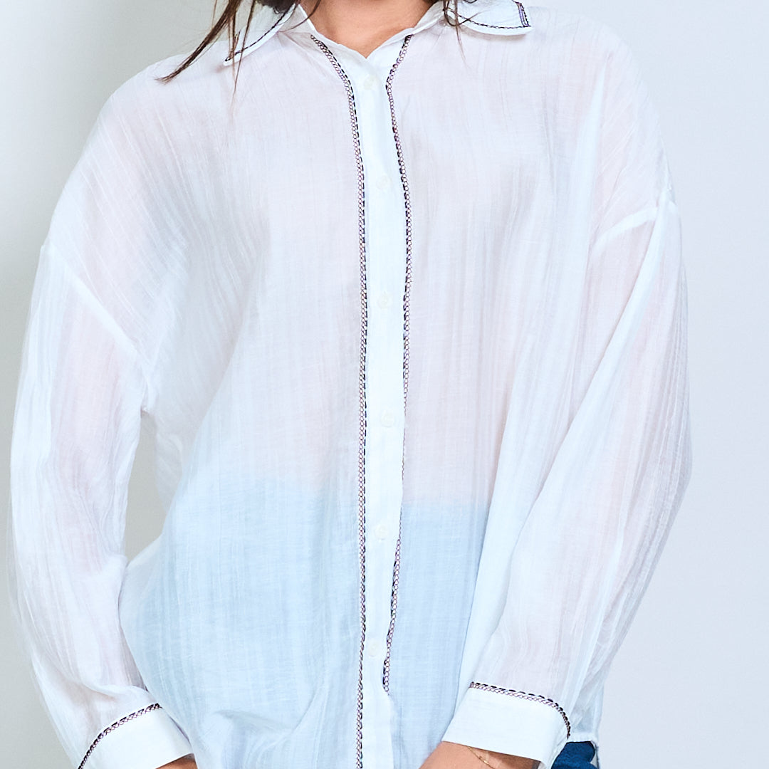 - Ommeltu trimmi pitkin plastia, kaulusta ja hihansuut