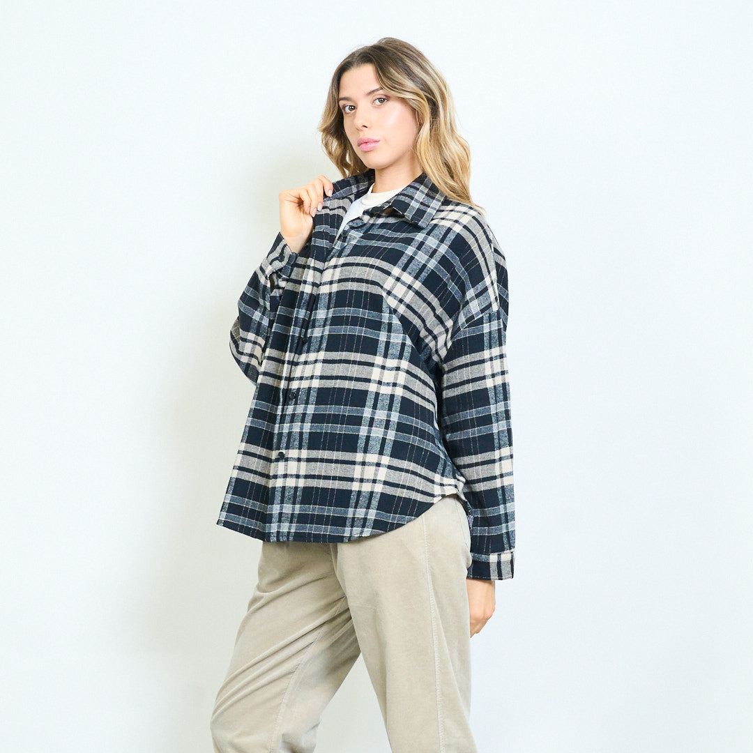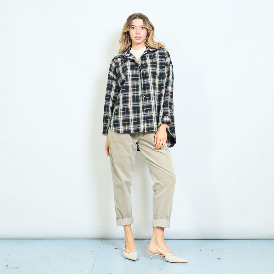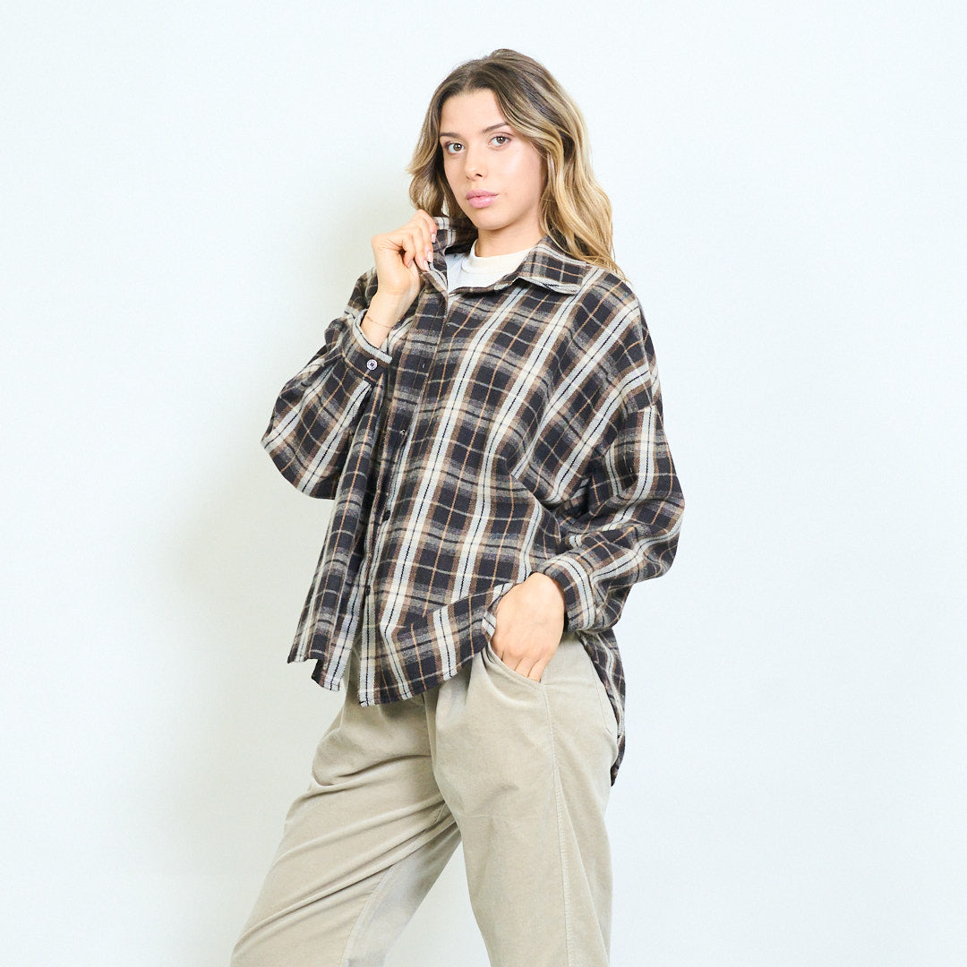 Ylisuuret ruudullinen nappi alas rento paita tukkumyynti